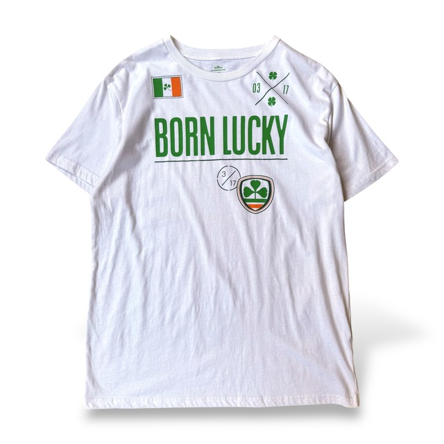 "BORN LUCKY" DESIGN GRAPHIC S/S TEE / メッセージ ロゴ 半袖 T シャツ