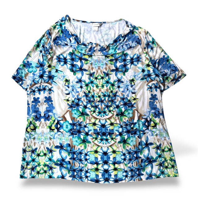 FLORAL PATTERN DRAPE NECK DESIGN S/S TEE / 花柄 総柄 半袖 T シャツ トップス