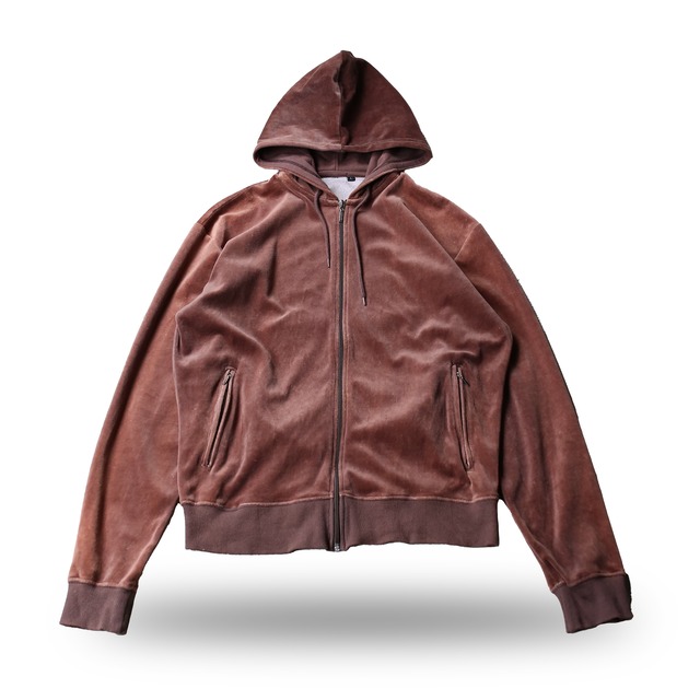 BROWN COLOR VELOUR ZIP UP DESIGN HOODIE / ベロア ジップ アップ パーカー フーディ