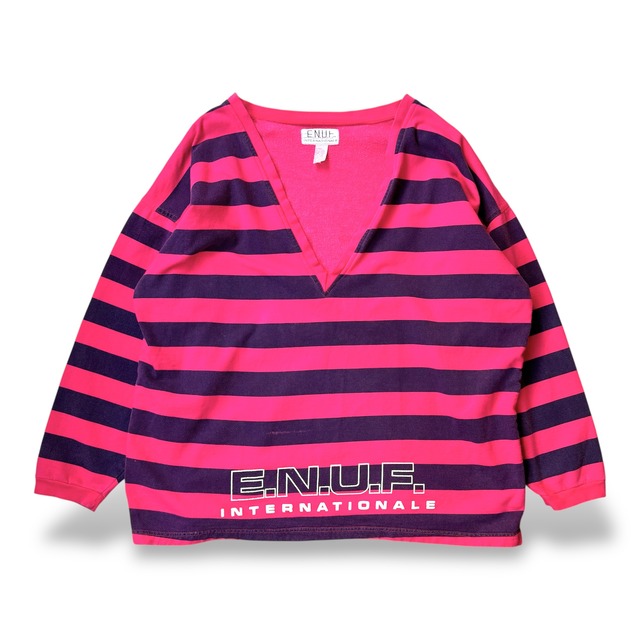 ●詳細 ・1990年代、Vネックの抜け感とゆったりとしたシルエットが ストリートにもモードにも振れる設計のヴィンテージロンT。 視覚的インパクトとカルチャー感を兼ね備えたアメリカ製の1枚。 鮮やかなピンクとシックなパープルが交差するボーダー柄に 「E.N.U.F. INTERNATIONALE」のロゴが裾で静かに語るアイテムです。 ●サイズ ・OS (着丈:約73cm / 身幅:約78cm / 肩幅:約81cm / 袖丈:約53cm) ※多少の誤差は予めご了承ください。 ●カラー ・ピンク ※モニターの発色により実物と異なる場合がございます。予めご了承ください。 ●素材 ・100% COTTON ●状態 ・着用感、多少の汚れはございますが、比較的綺麗で雰囲気に馴染んだ状態です。 画像にてご確認ください。 ※こちらの商品はUSEDアイテムです。 ※サイズ、状態を理由に返品・交換は受け付けていませんので、 気になる点はご購入前に必ずお問い合わせください。 ※USEDアイテムにご理解ある方のみご購入お願いいたします。