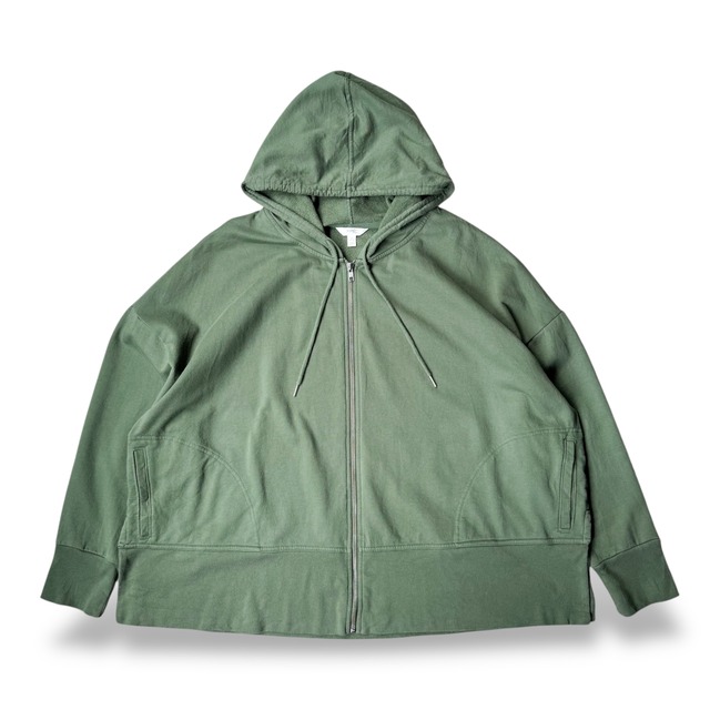 ●詳細 ・深みのあるグリーンカラーが印象的なジップアップパーカー。 フロントジップとドローコード付きフード、両サイドのポケットなど 機能性を備えながらも無駄のないミニマルなデザインが魅力です。 コットンベースの柔らかな素材は、肌に優しく、長時間の着用でもストレスフリー。 リブ付きの袖と裾がシルエットを程よく引き締め ラフすぎず、きちんと感も残るバランスが絶妙です。 ジップの開閉で印象を自在に変えられるのもポイント。 閉じればミニマルに、開けばレイヤードの余白が生まれ インナーとの組み合わせで季節や気分に応じたスタイリングが可能です。 ●サイズ ・OS (着丈:約68cm / 身幅:約78cm / 肩幅:約80cm / 袖丈:約49cm) ※多少の誤差は予めご了承ください。 ●カラー ・グリーン ※モニターの発色により実物と異なる場合がございます。予めご了承ください。 ●素材 ・60% COTTON / 40% POLYESTER ●状態 ・着用感、極僅かな汚れはございますが、雰囲気の良い状態です。 画像にてご確認ください。 ※こちらの商品はUSEDアイテムです。 ※サイズ、状態を理由に返品・交換は受け付けていませんので、 気になる点はご購入前に必ずお問い合わせください。 ※USEDアイテムにご理解ある方のみご購入お願いいたします。