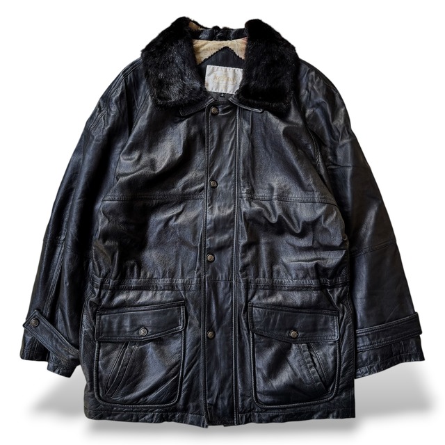 1990's VINTAGE LAMB LEATHER FUR COLLAR SWITCHED JACKET / 90年代 ヴィンテージ ラム レザー スウェード ファー ジャケット コート