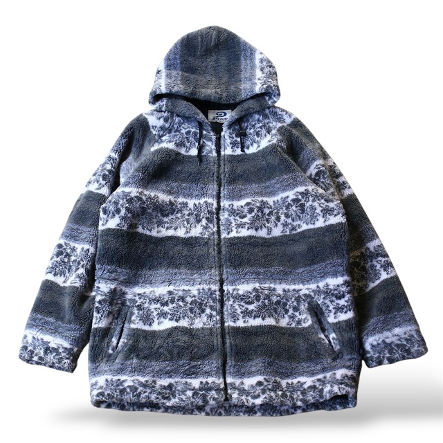 2000's 【PIKO】 BOTANICAL PATTERN BOA HOODIE MIDDLE COAT / Y2K ピコ 花柄 ボア ファー コート ジャケット