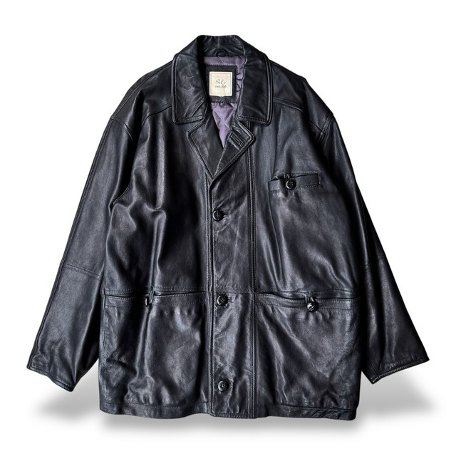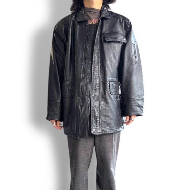 1990's VINTAGE BLACK LEATHER ZIP UP JACKET / 90年代 ヴィンテージ レザー ジップ アップ ジャケット