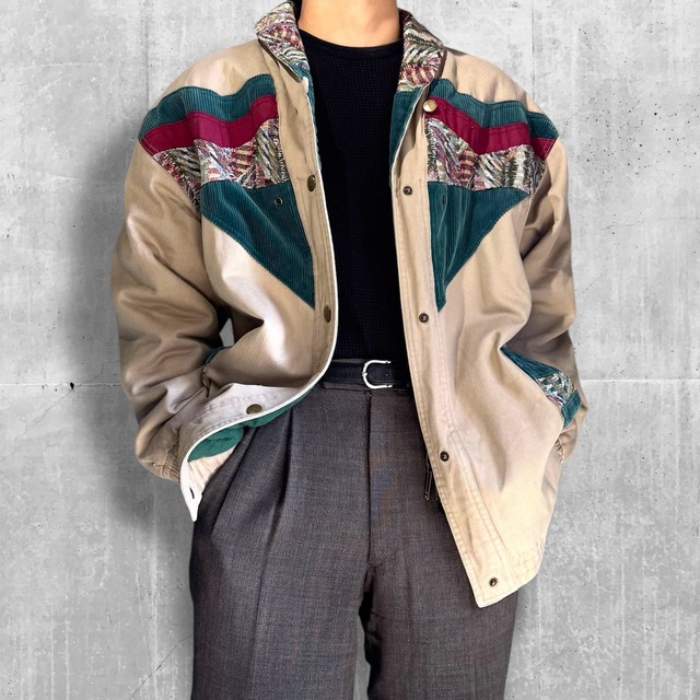 1990's VARIOUS FABRIC SWITCHED COTTON HALF COAT / 90年代 切替 コットン ハーフ コート ジャケット