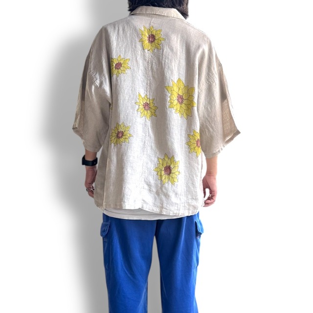 SUNFLOWER ART HAND PAINT S/S LINEN SHIRT / アート ハンド ペイント ひまわり リネン 落書き 半袖 シャツ