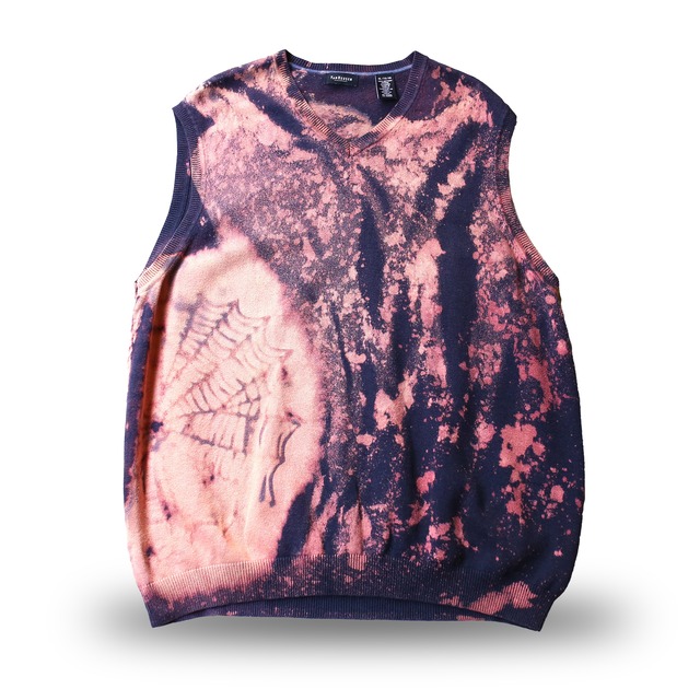 SPIDER WEB BLEACHED DESIGN COTTON ART VEST / スパイダー ブリーチ リメイク コットン ニット アート ベスト