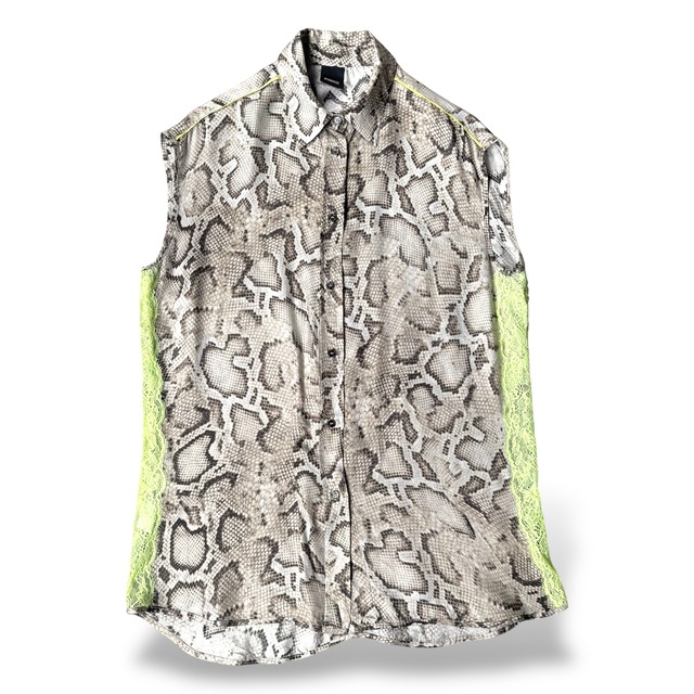 PYTHON PATTERN SIDE LACE N/S SHIRT VEST / 蛇 柄 アニマル パイソン ノースリーブ シャツ レース ベスト