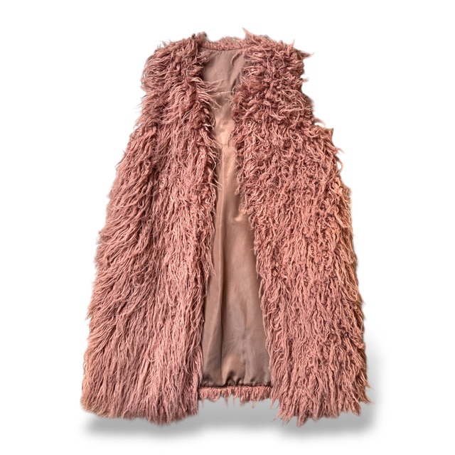 CORAL PINK COLOR SHAGGY FAUX FUR LONG VEST / シャギー ファー ロング ベスト