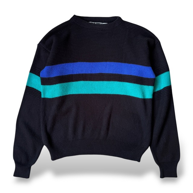 1980's VINTAGE TEAL COLOR KNIT SWEATER / MADE IN USA / 80年代 ヴィンテージ カラー ニット セーター アメリカ製