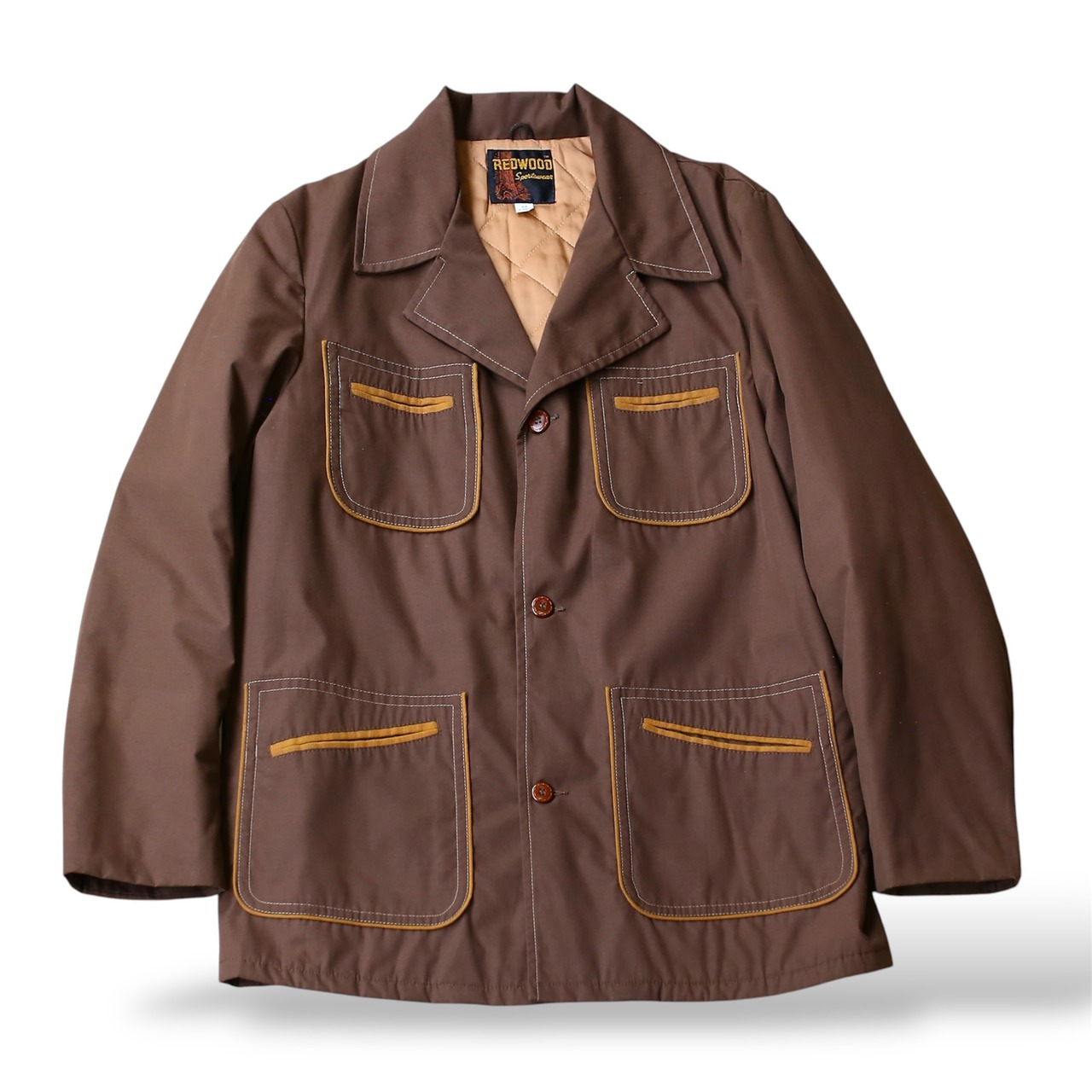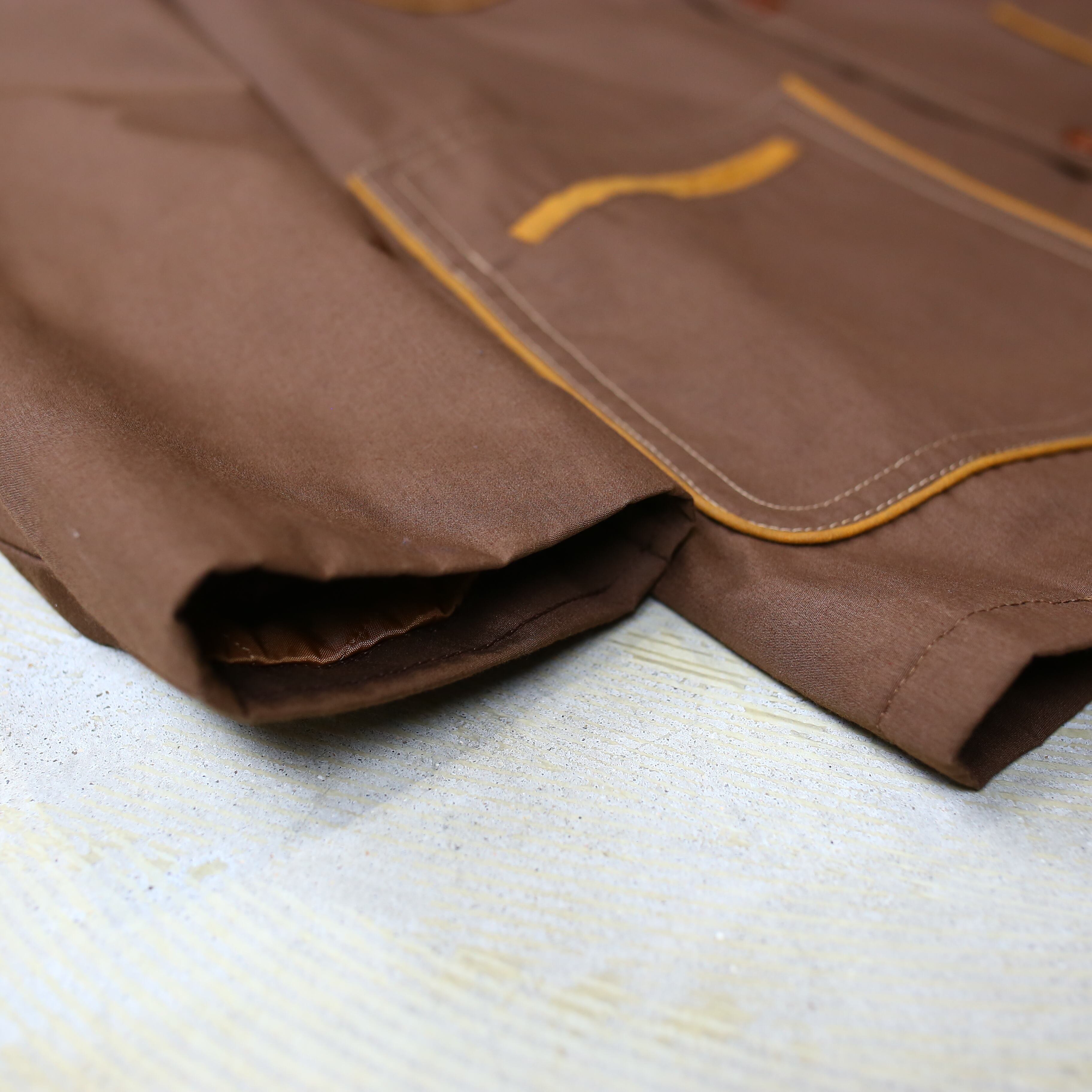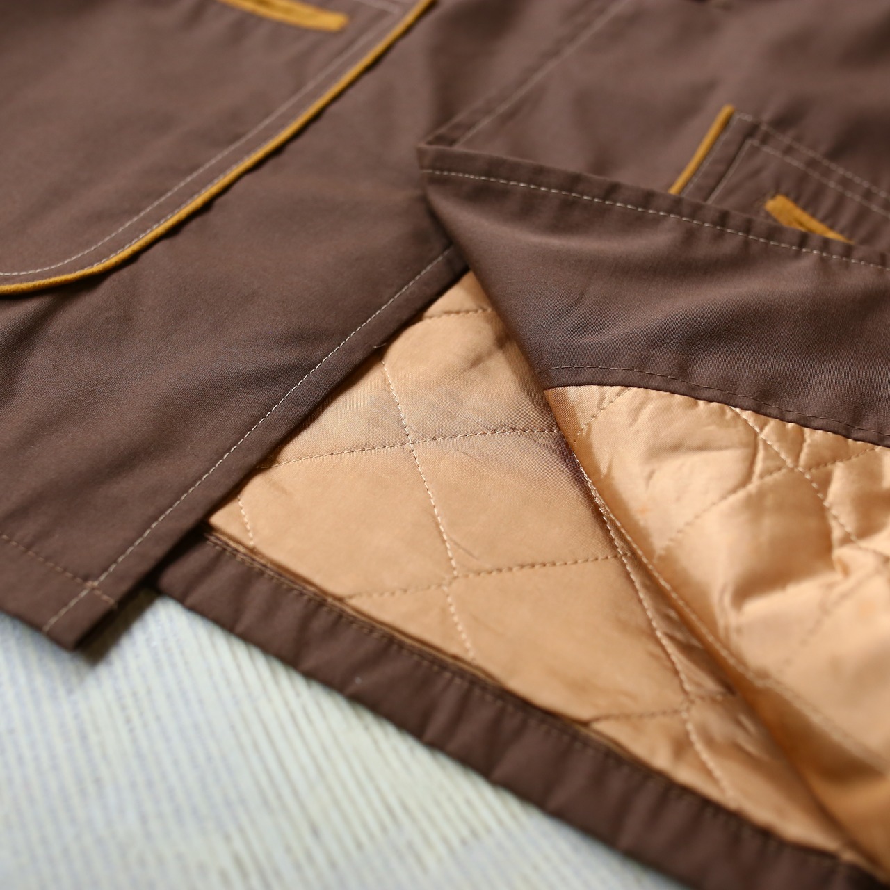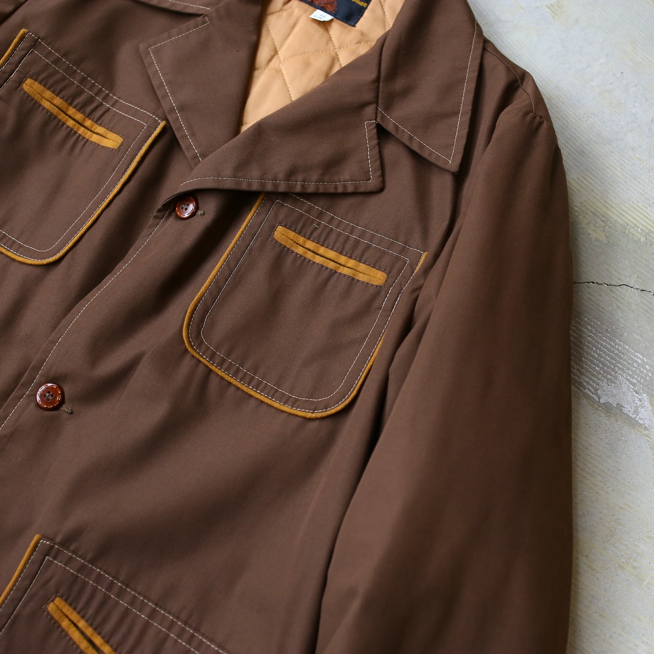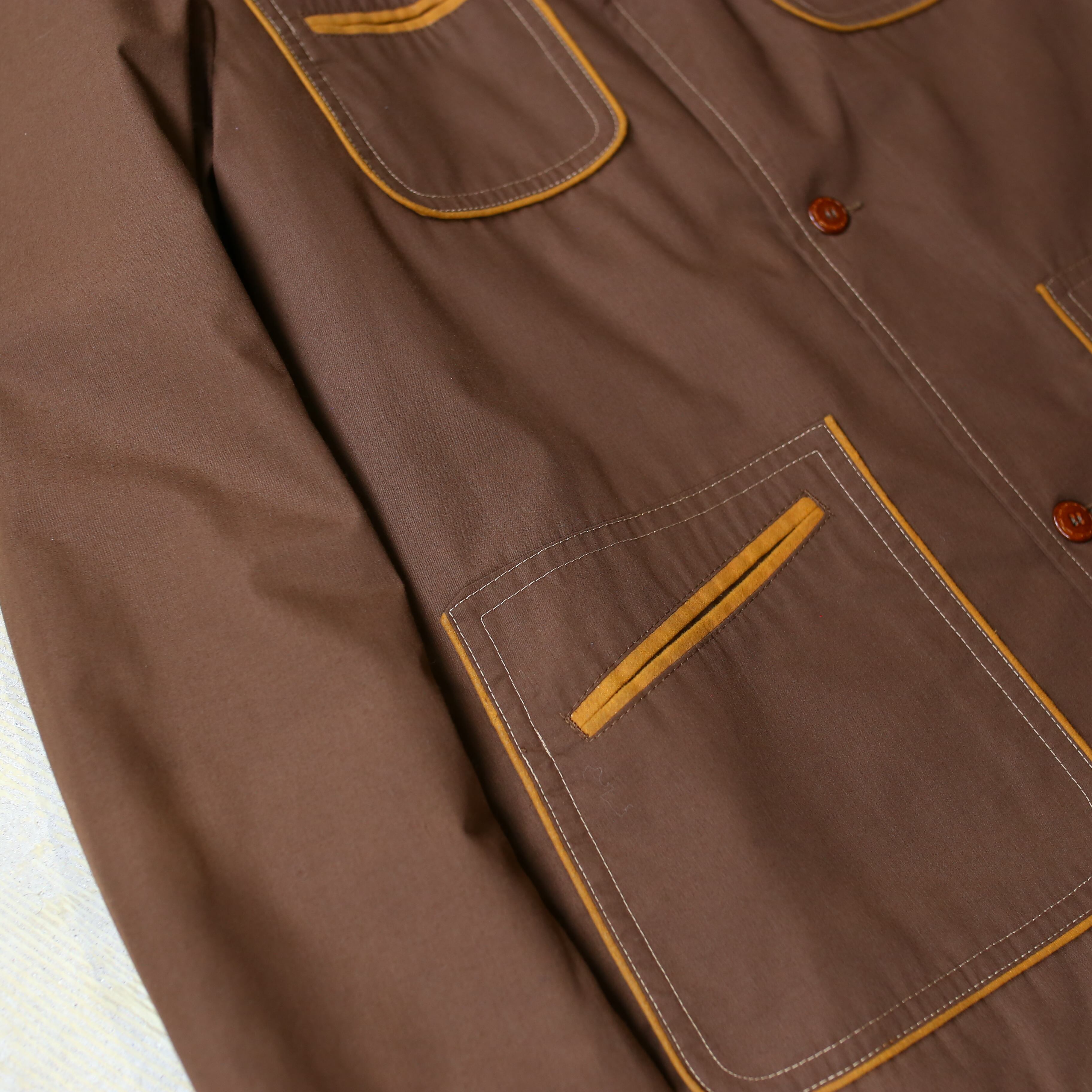 ・1970年代、ブラウンカラーを基調としたヴィンテージカバーオールハーフコート。
