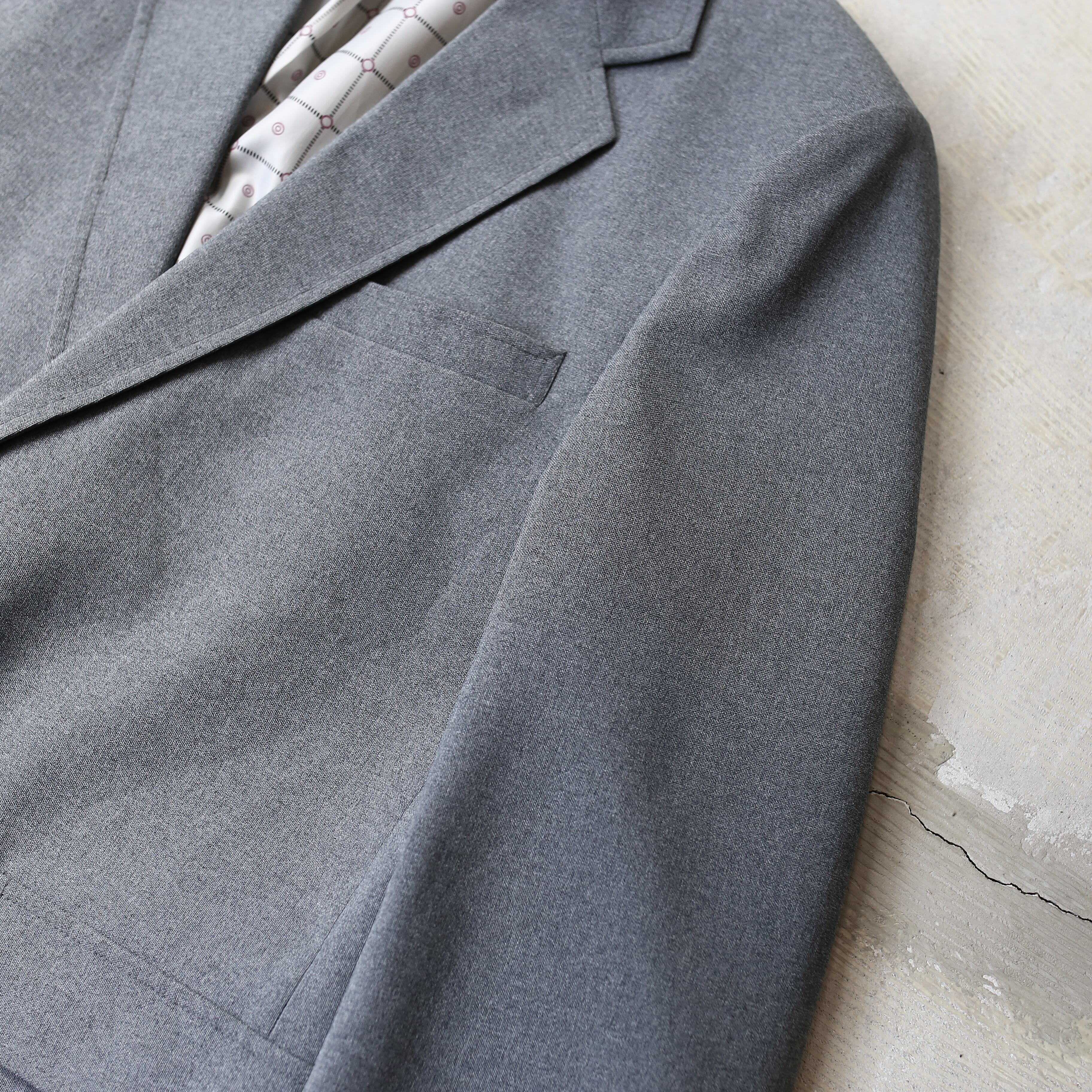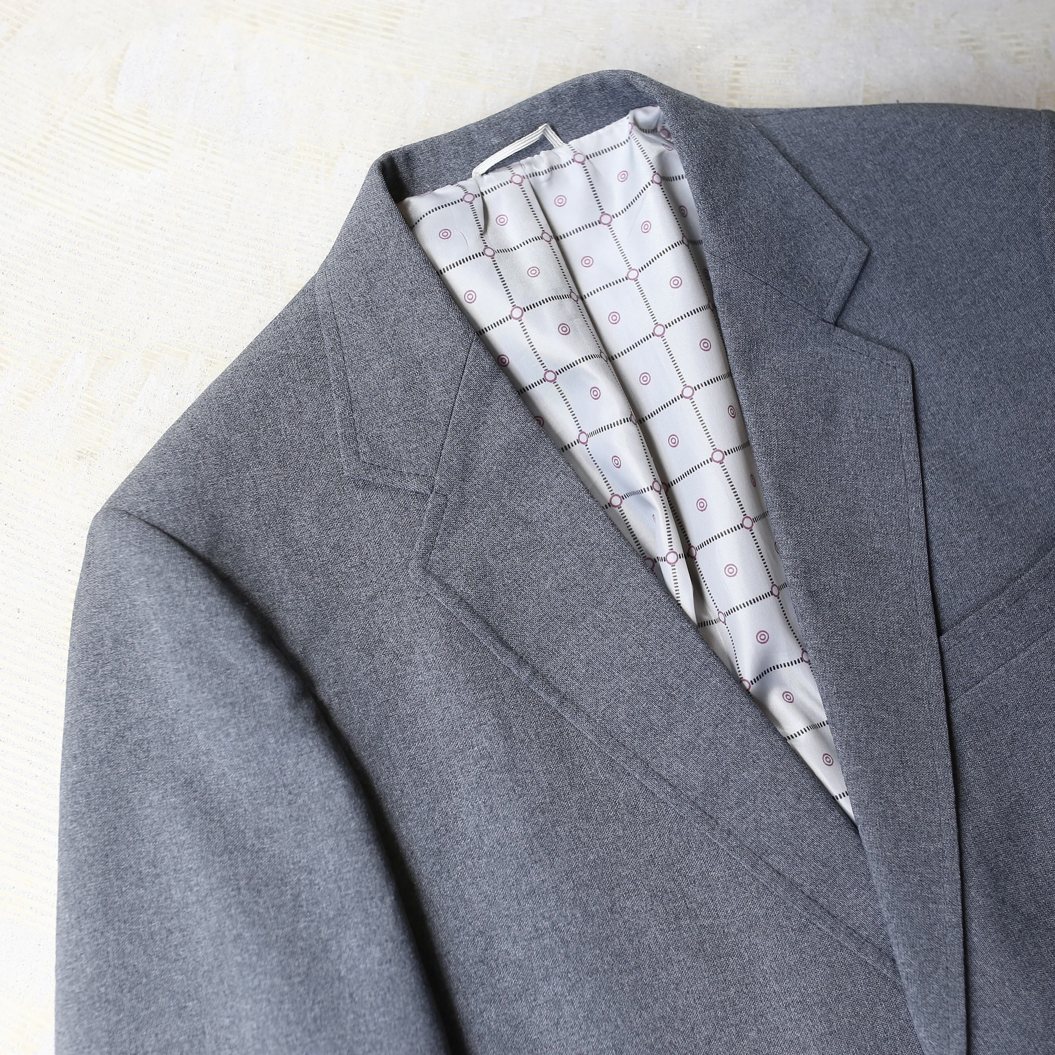 ・1970年代頃のシンプルなグレーカラー単色ヴィンテージテーラードジャケット。