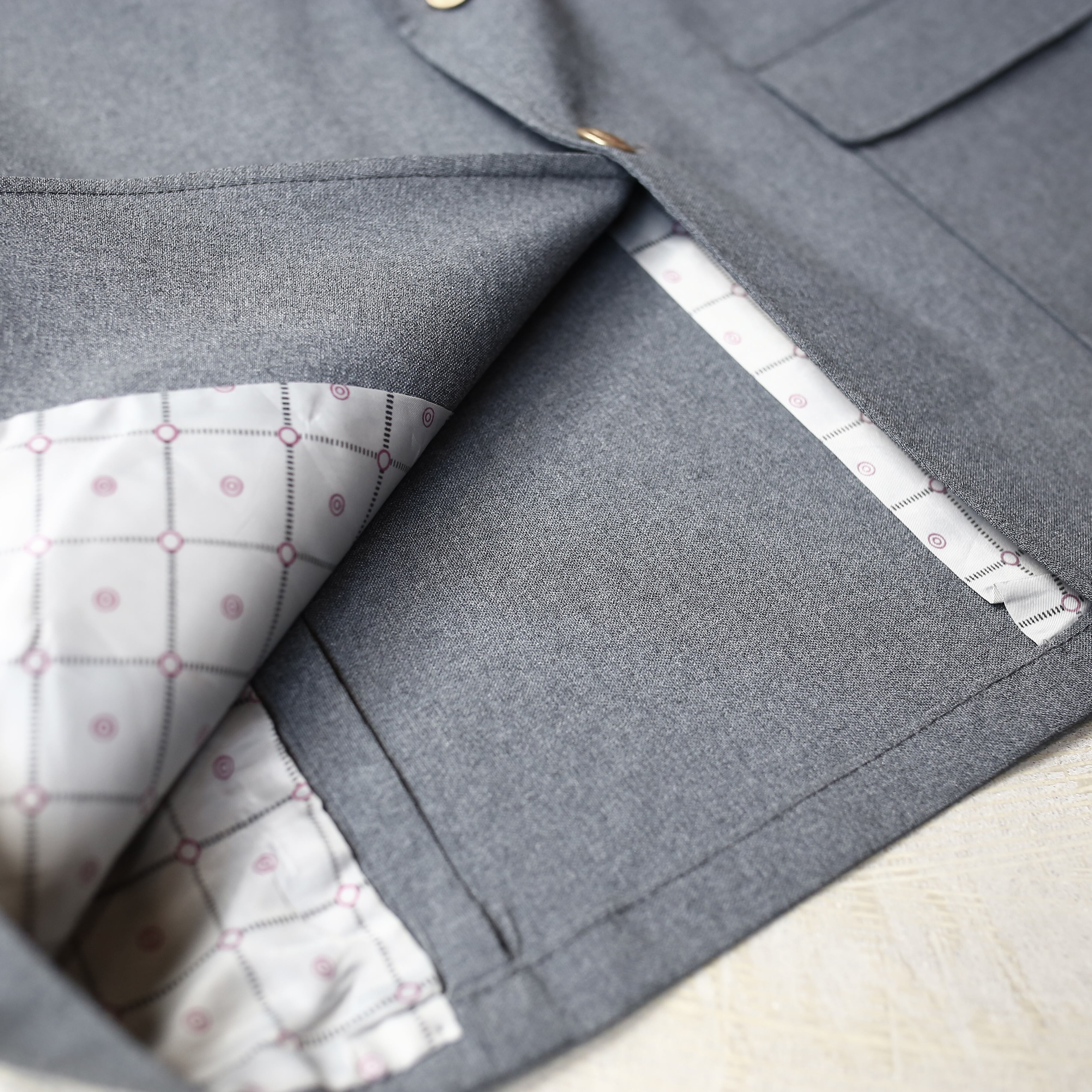 裏地からボタン、襟の形まで繊細なディテールまで抜かりなく