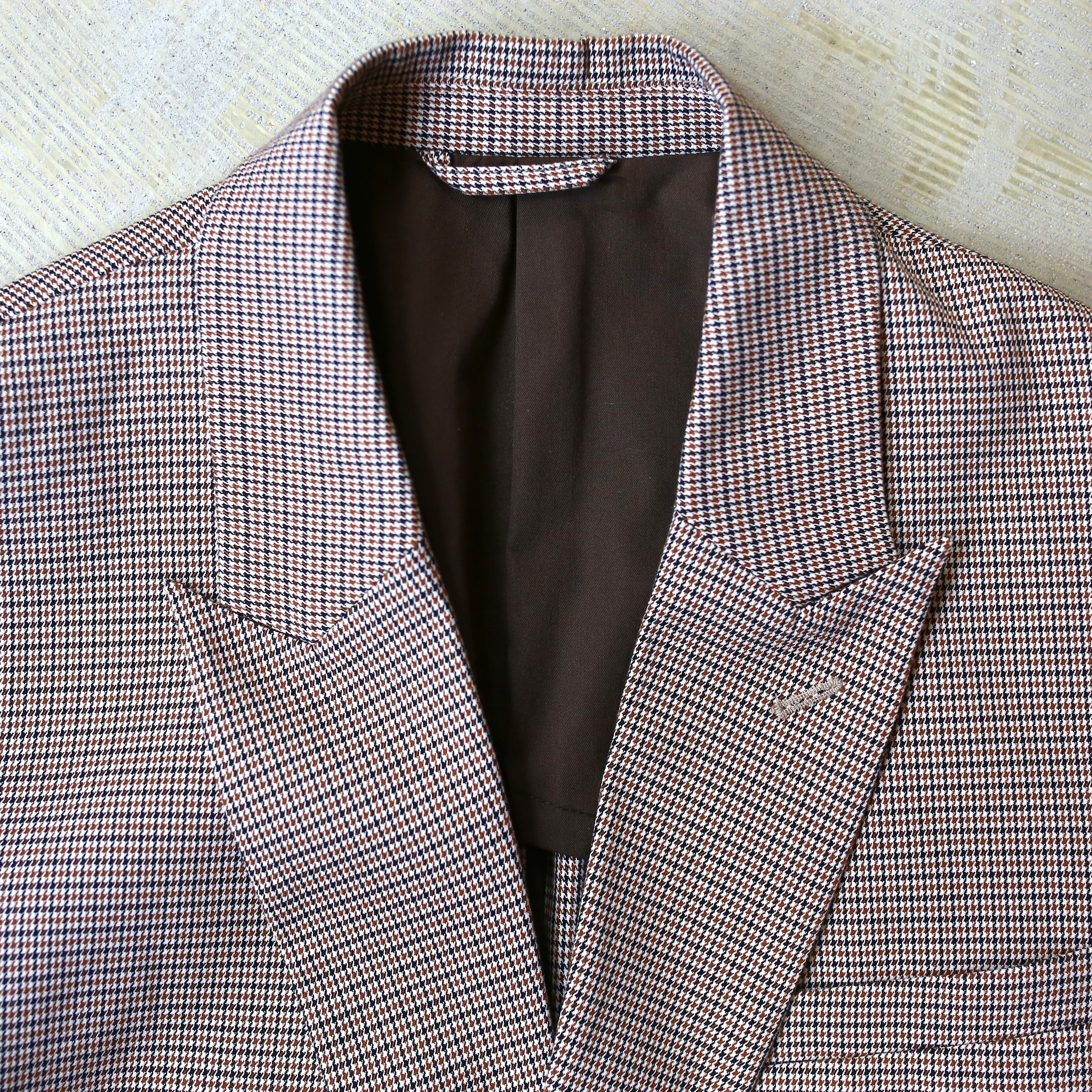 ・全体に千鳥格子柄を施したダブルブレストテーラードジャケット。