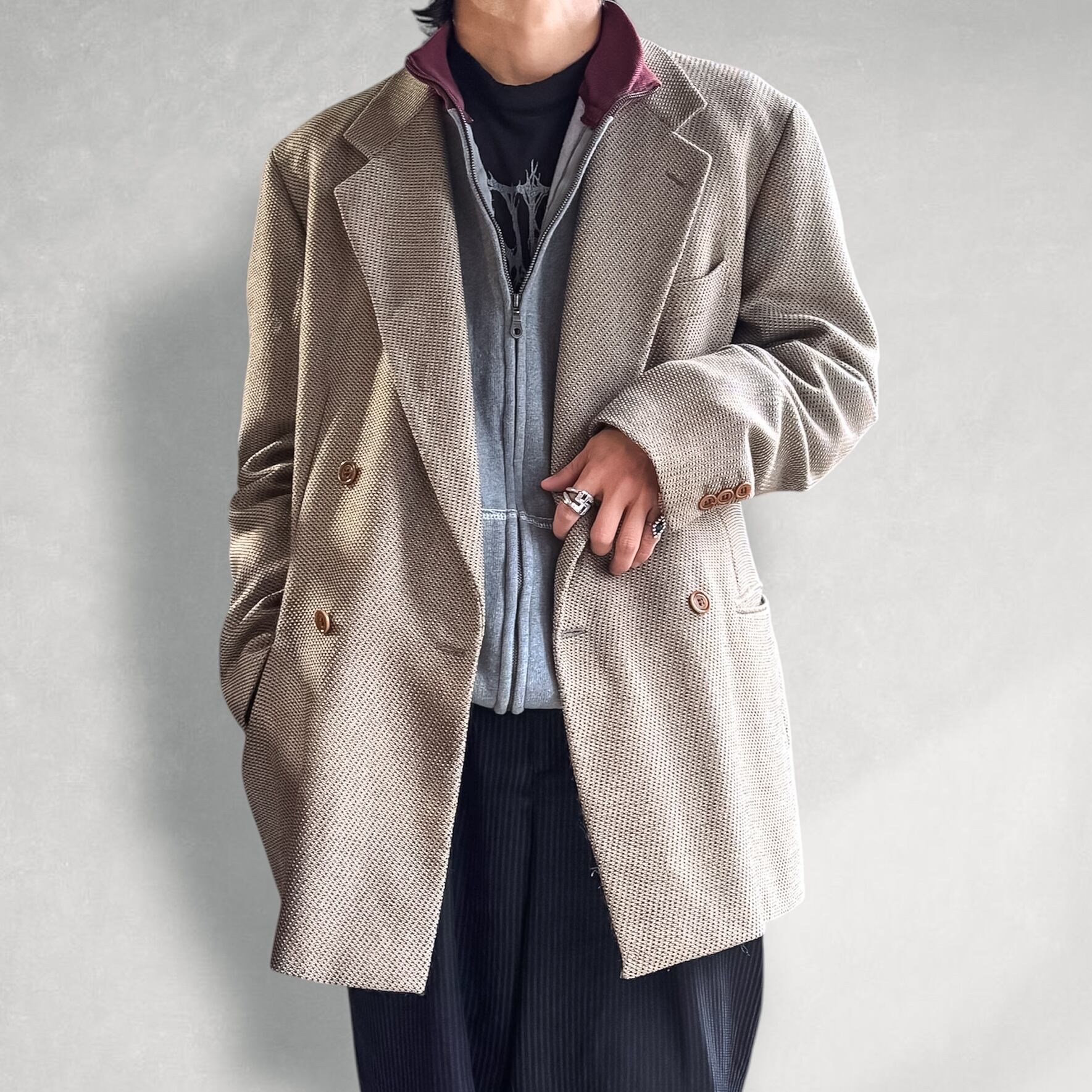 DOUBLE BREASTED DESIGN TAILORED JACKET / MADE IN ITALY / ダブルブレスト テーラード ジャケット イタリア製