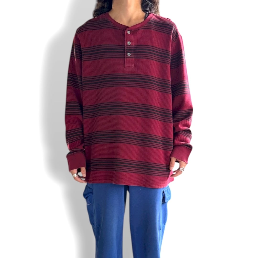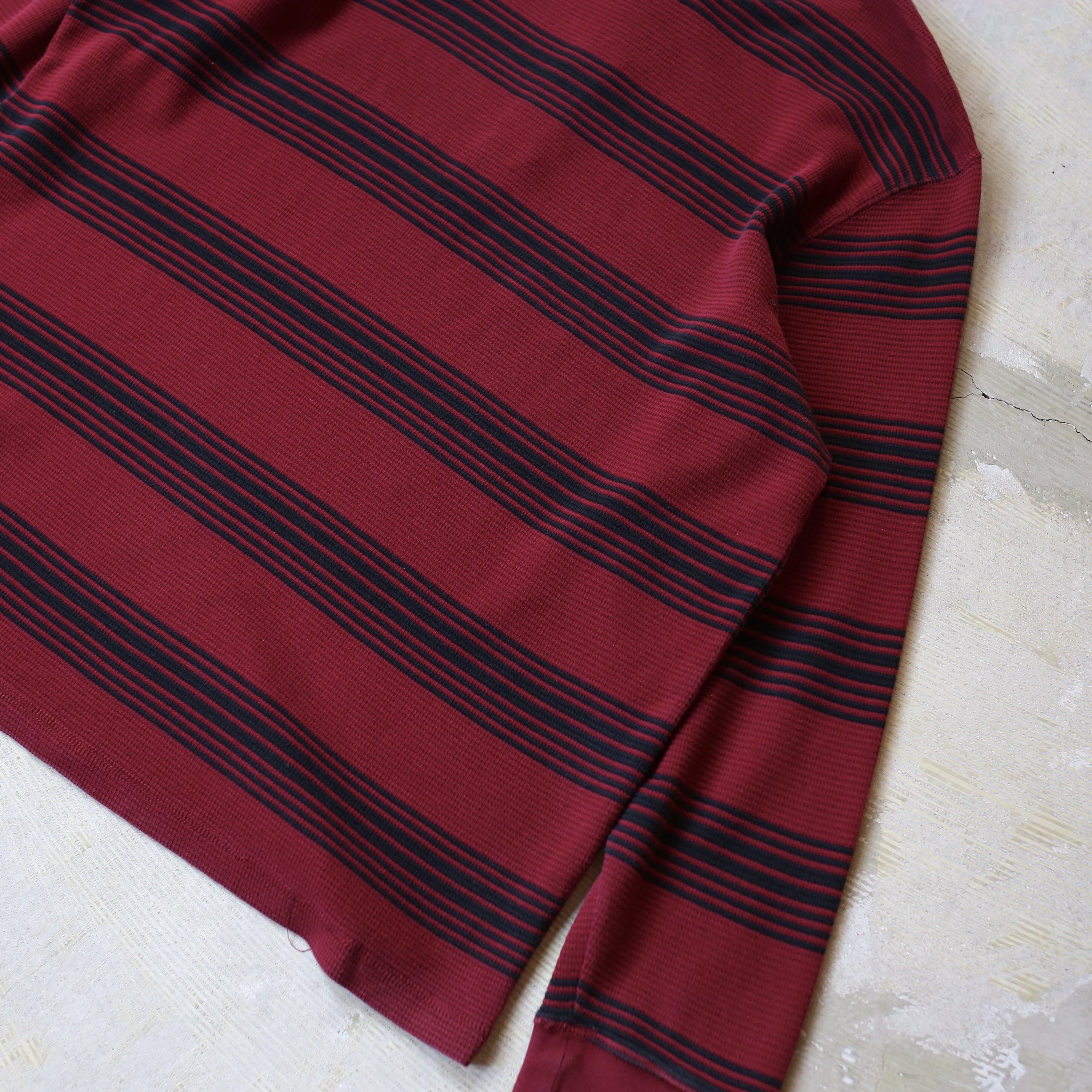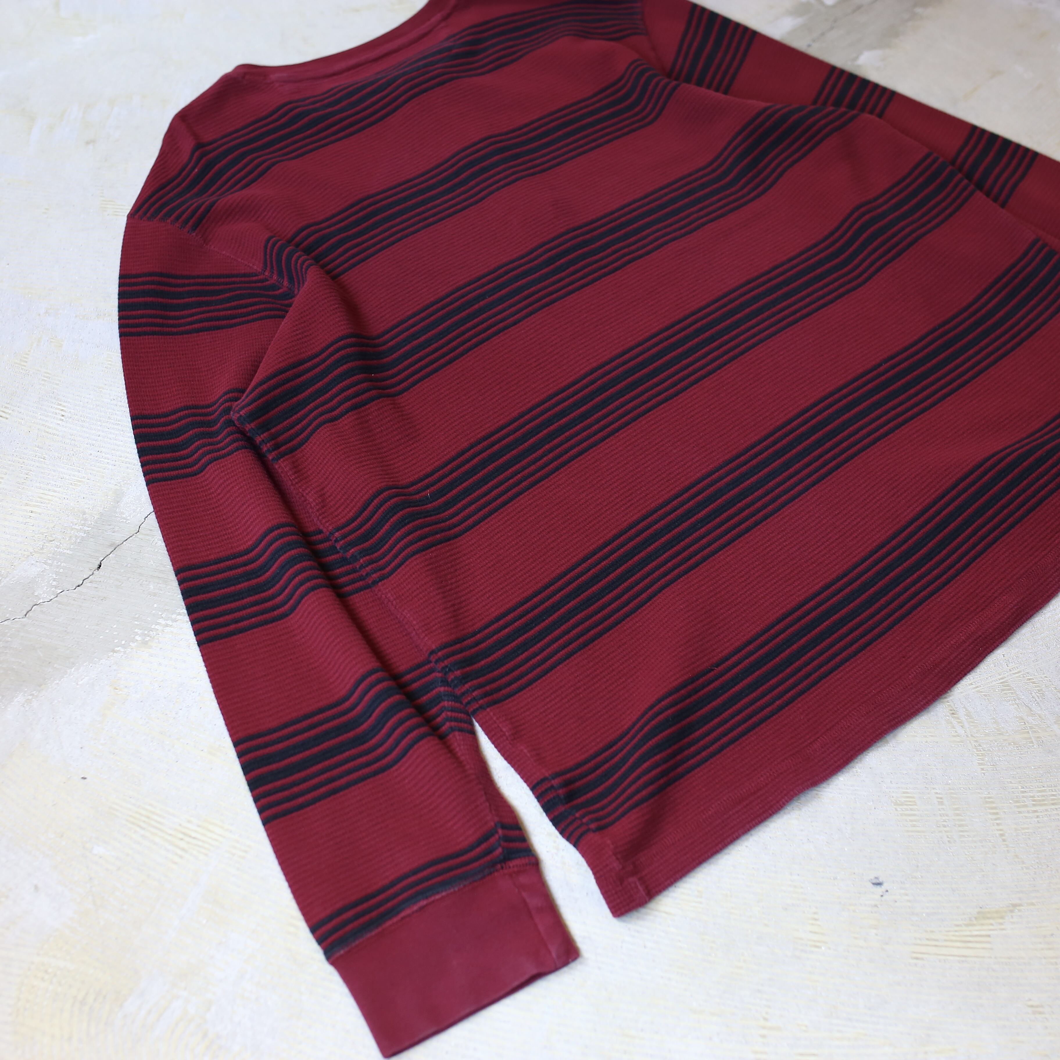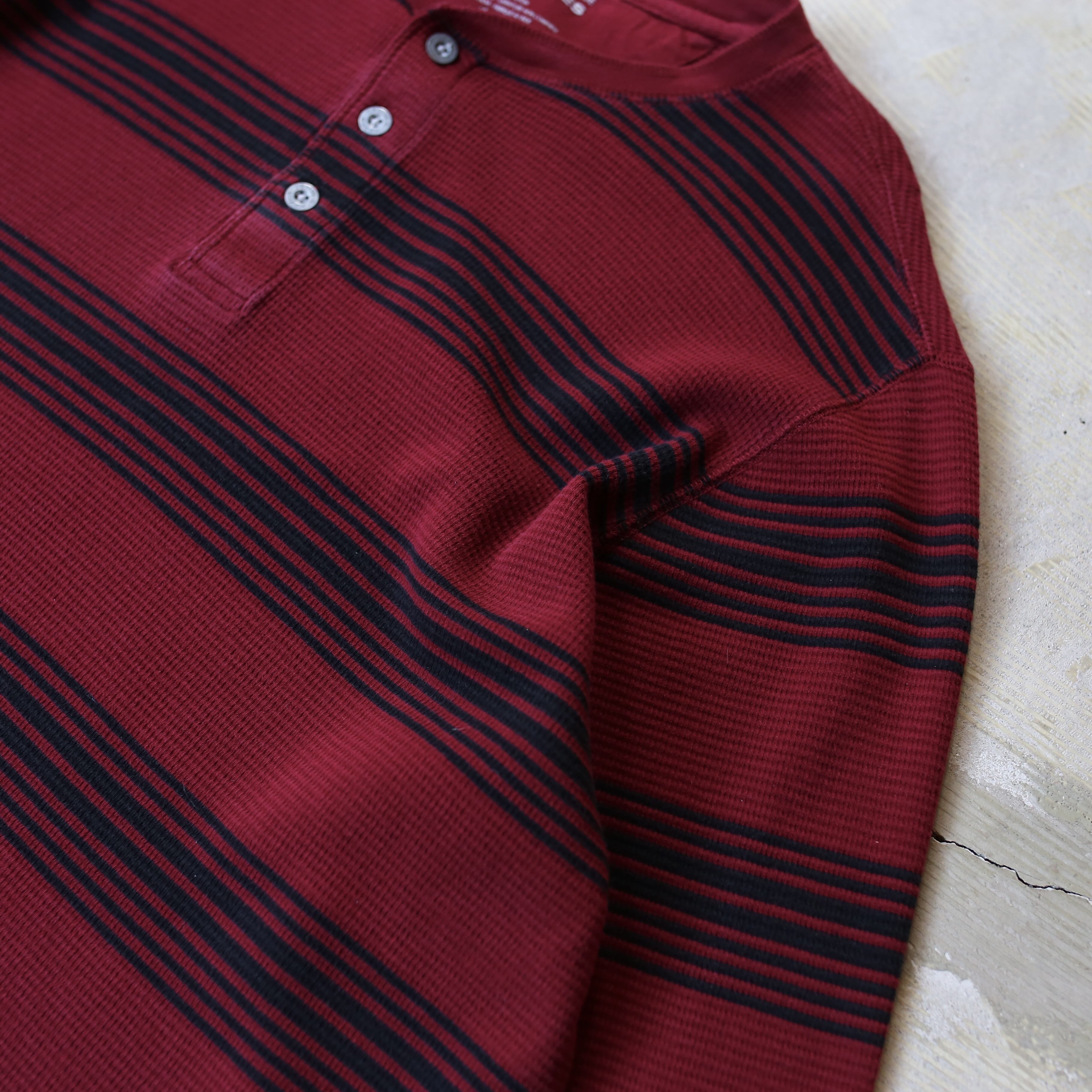 BORDER PATTERN HENLEY NECK THERMAL L/S TEE / ボーダー 柄 ヘンリー ネック サーマル 長袖 T シャツ ロンT