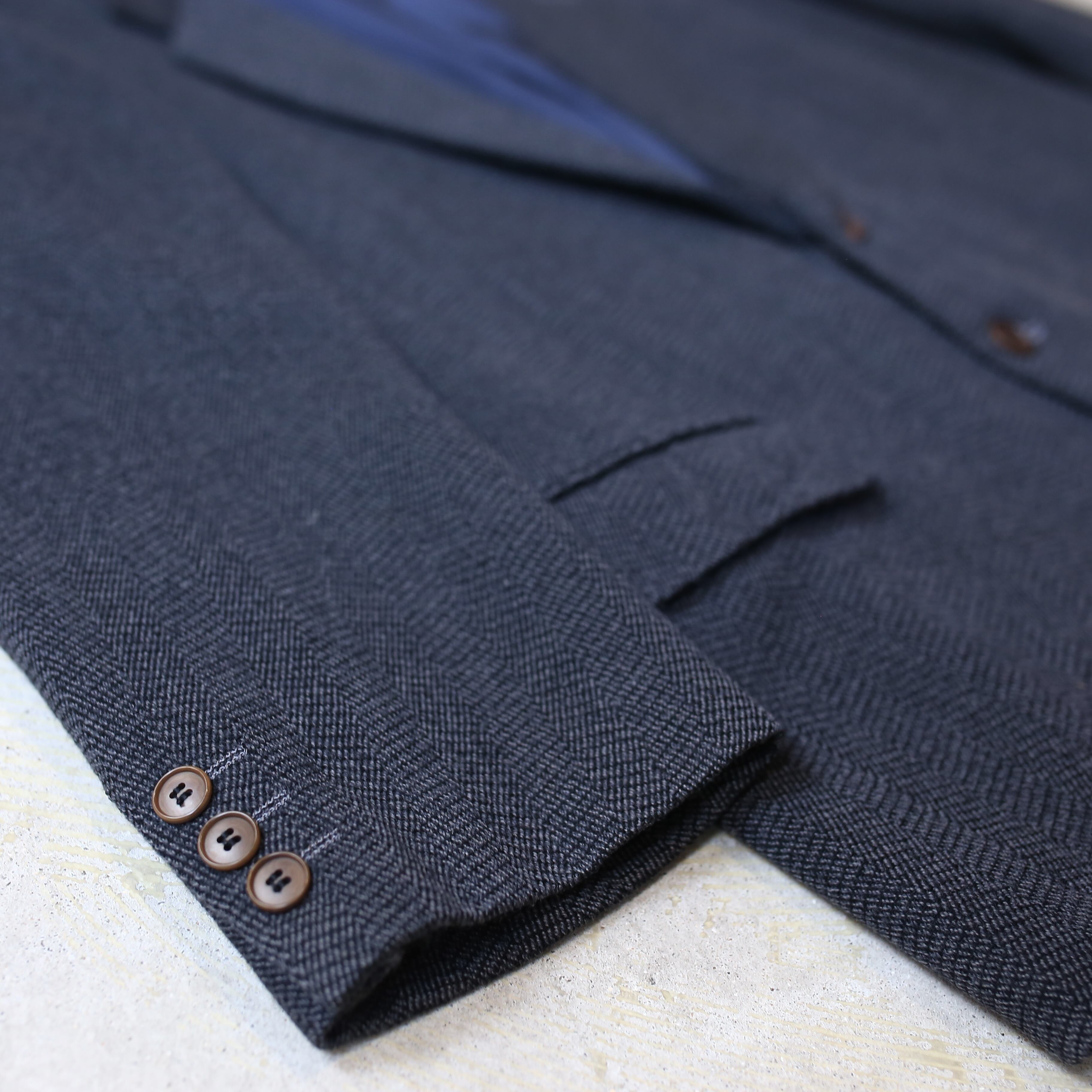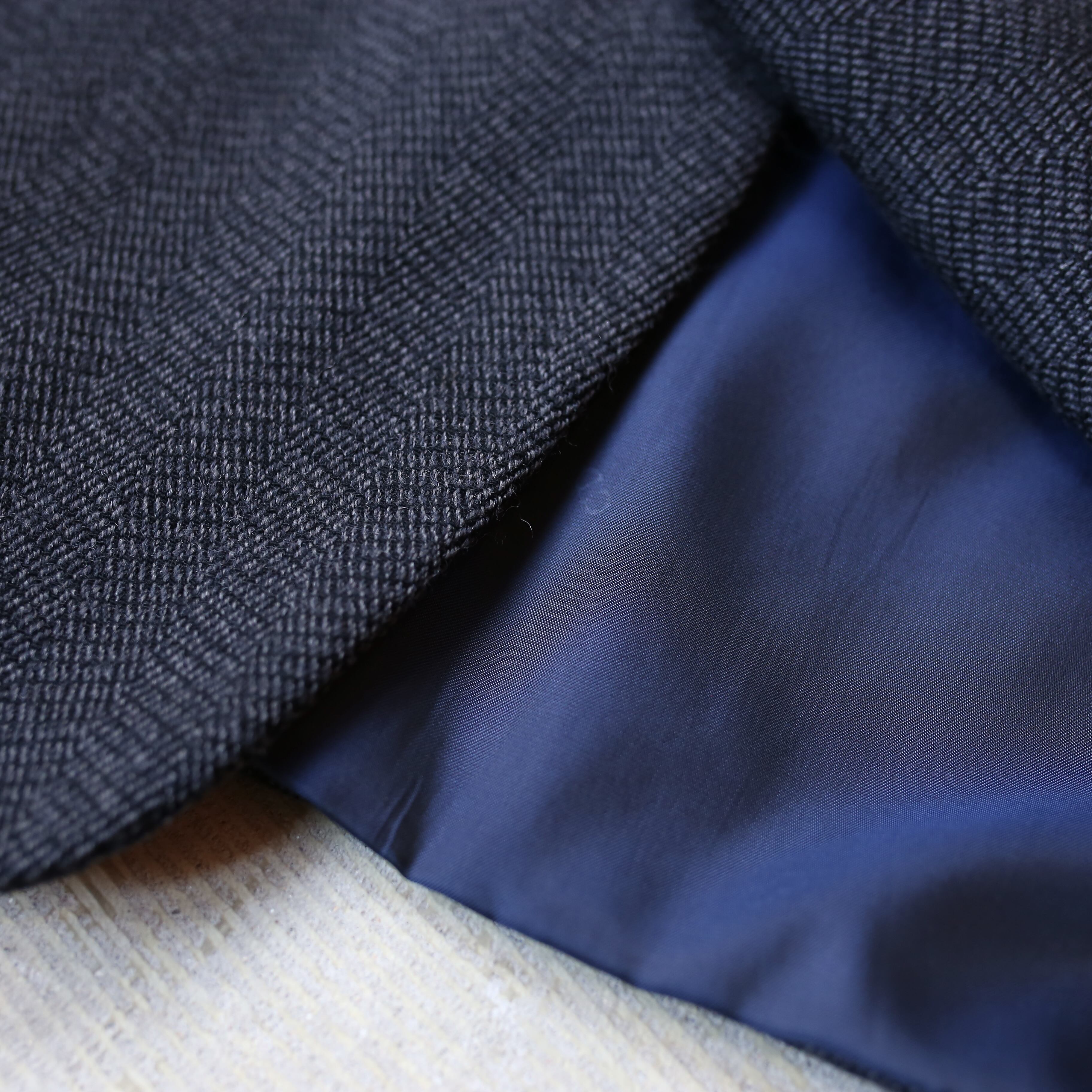 ヘリンボーン柄に青みがかったチャコールグレーカラーボディ。