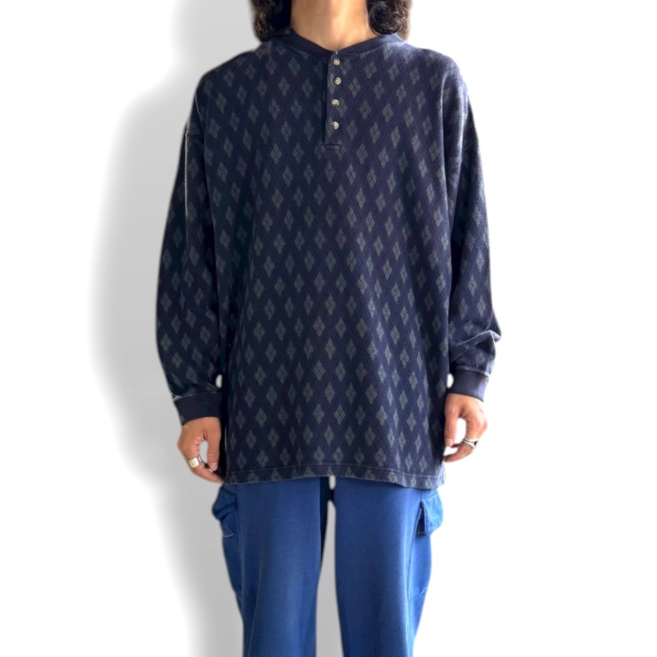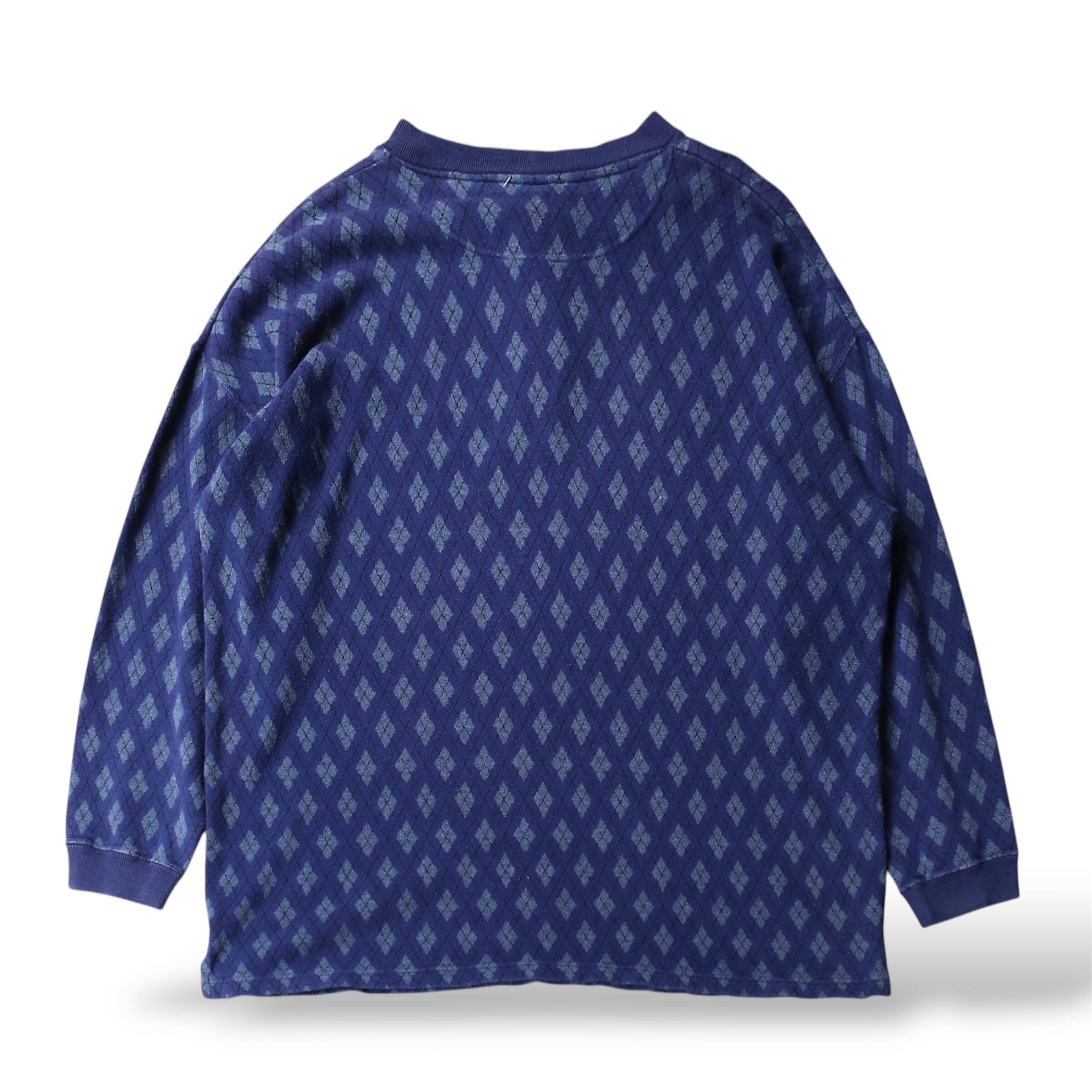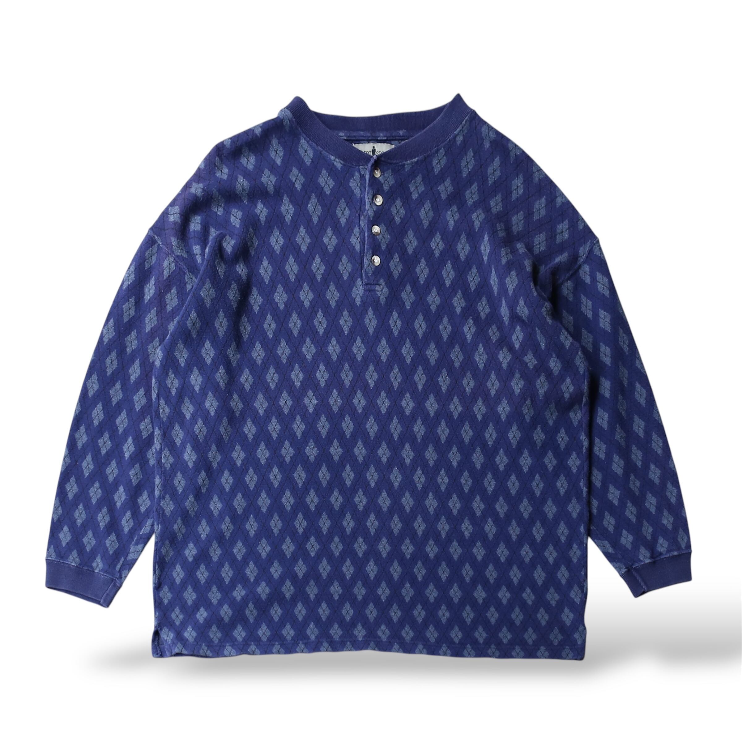 1990's VINTAGE ARGYLE PATTERN HENLEY NECK L/S TEE / 90年代 ヘンリー ネック 総柄 アーガイル 長袖 T シャツ ロンT