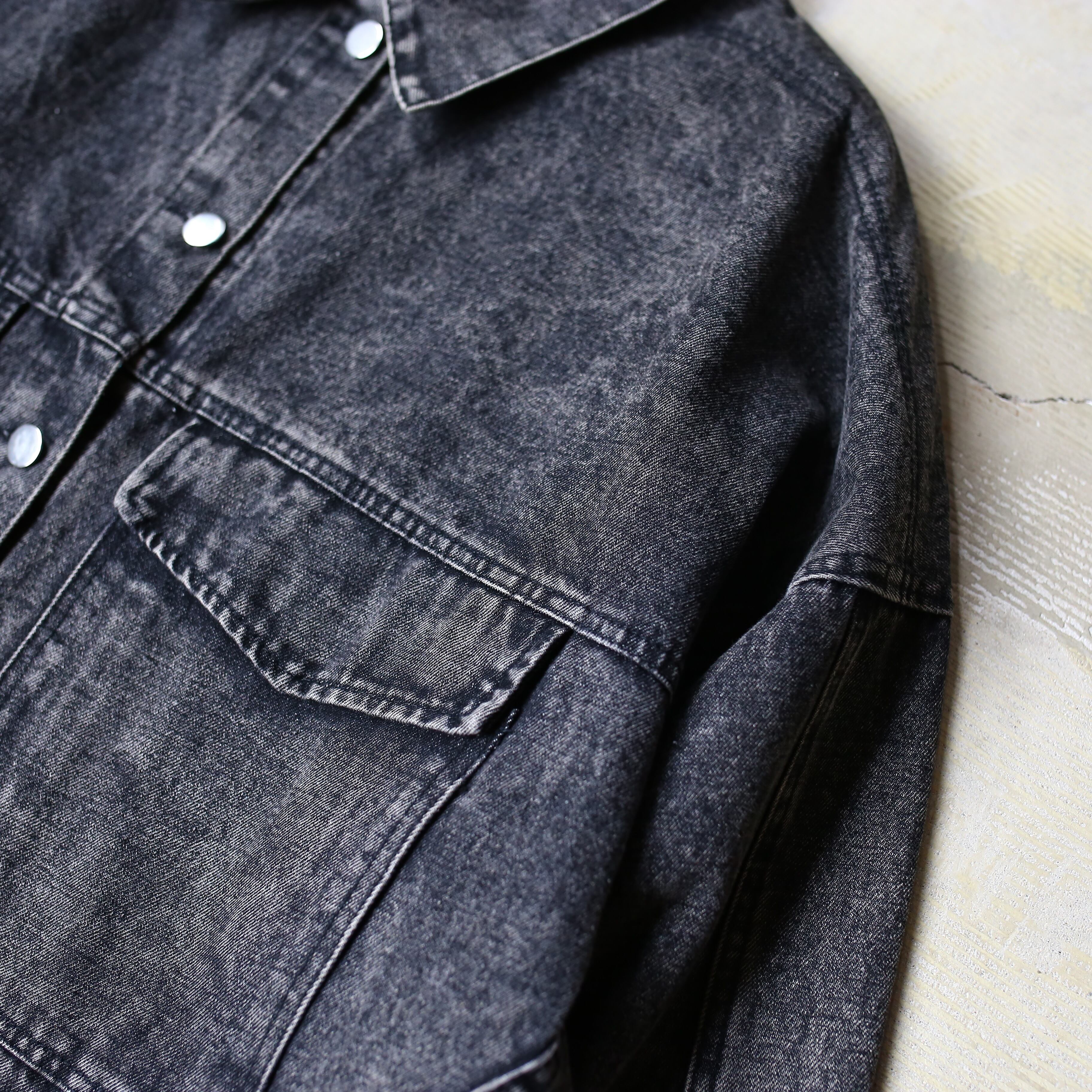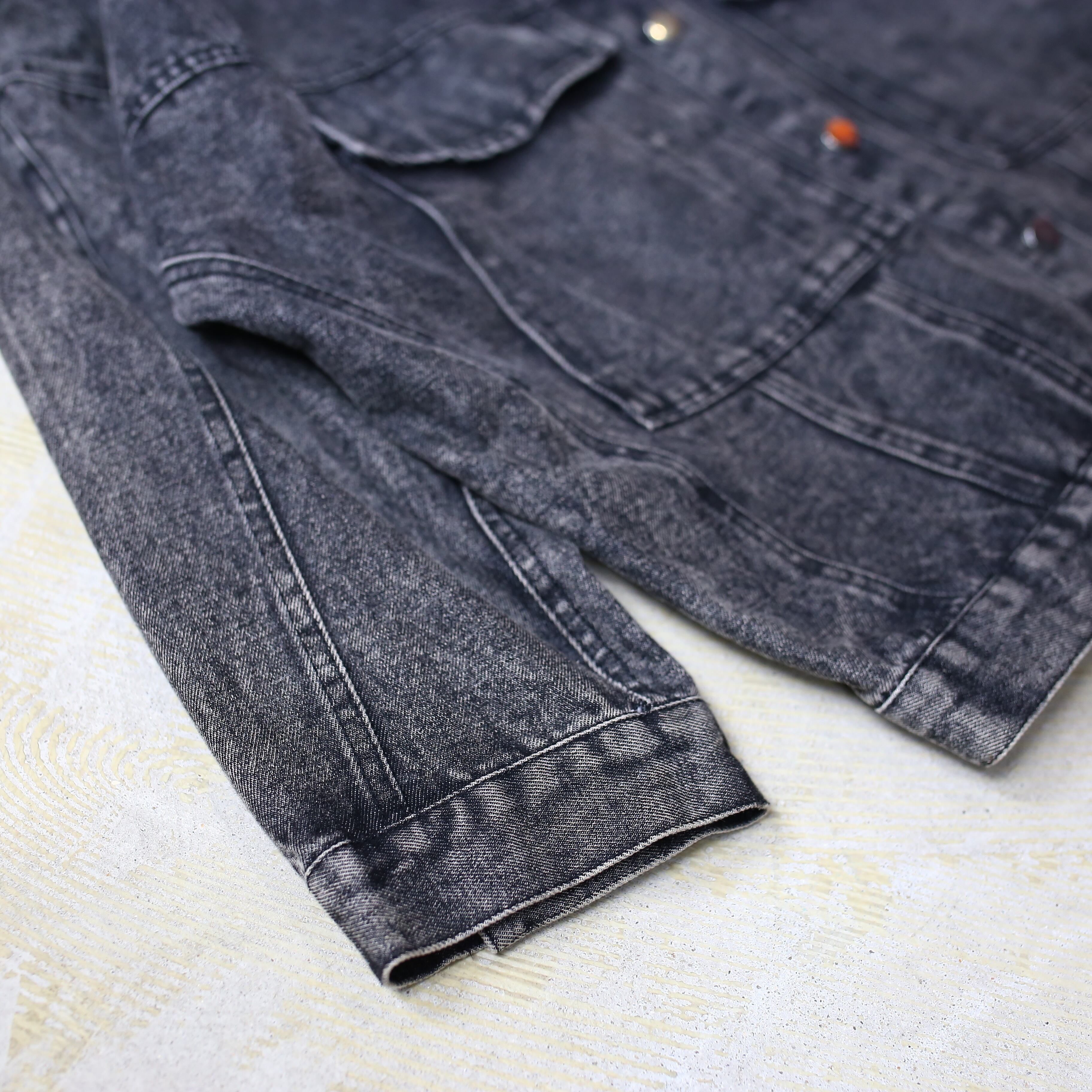 CHEMICAL WASH DESIGN BLACK DENIM JACKET / ケミカル ウォッシュ ブラック デニム ジャケット