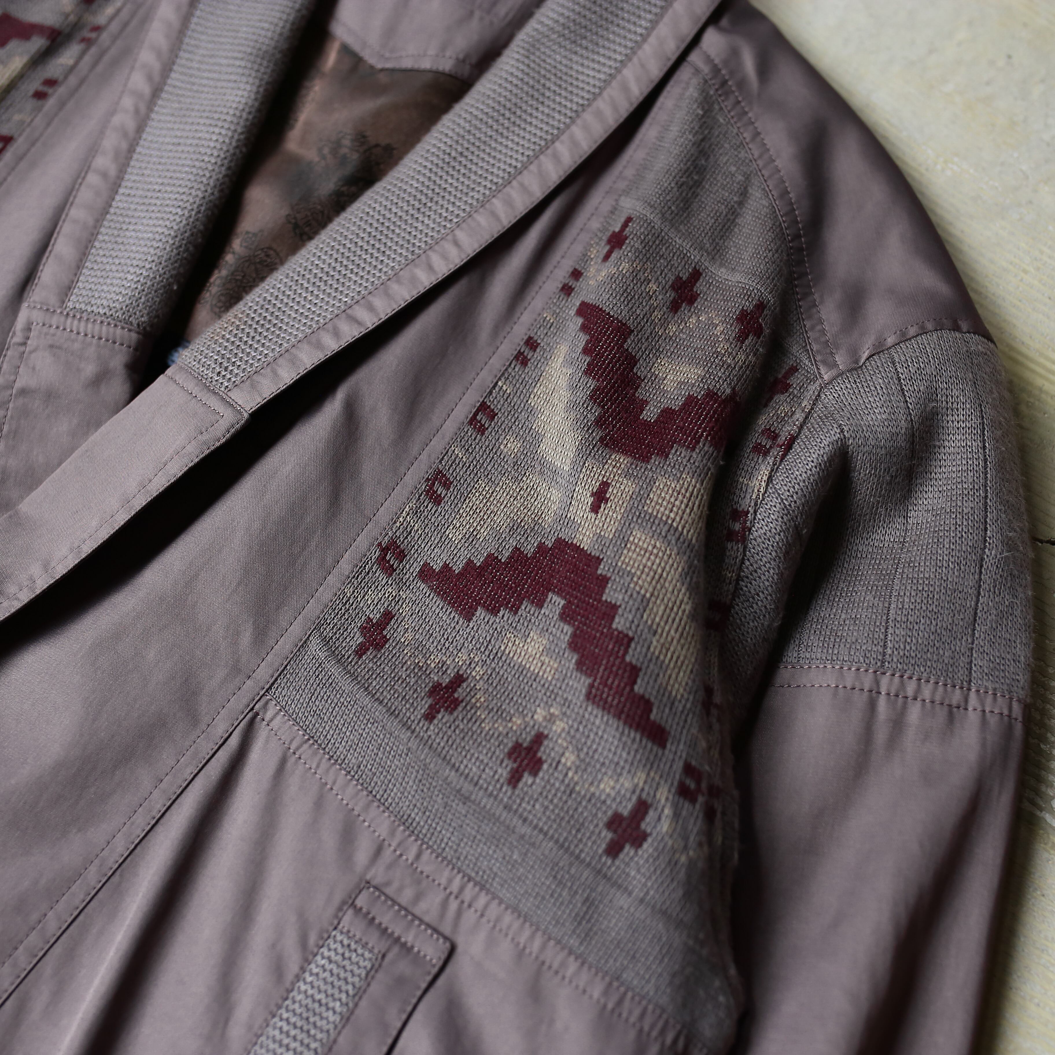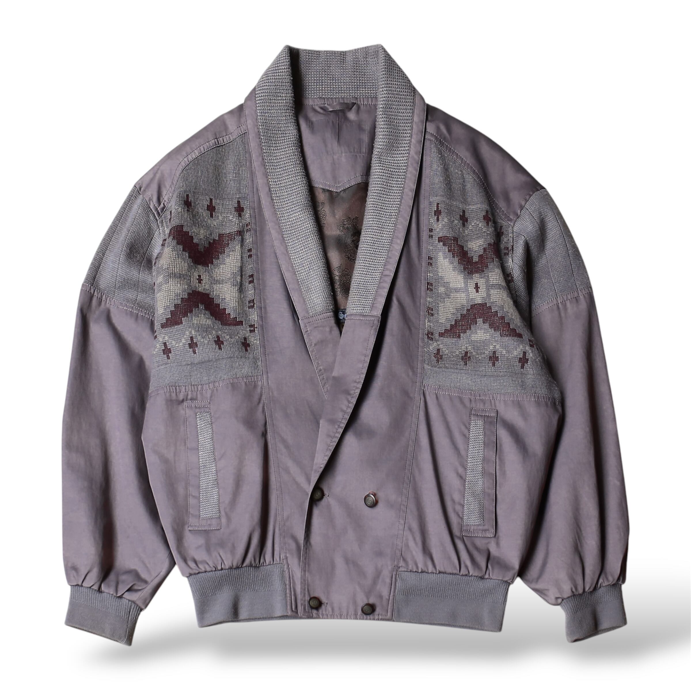 1990's VINTAGE NATIVE PATTERN SWITCHED SHAWL COLLAR JACKET / 90年代 ネイティブ 切替 ジャケット