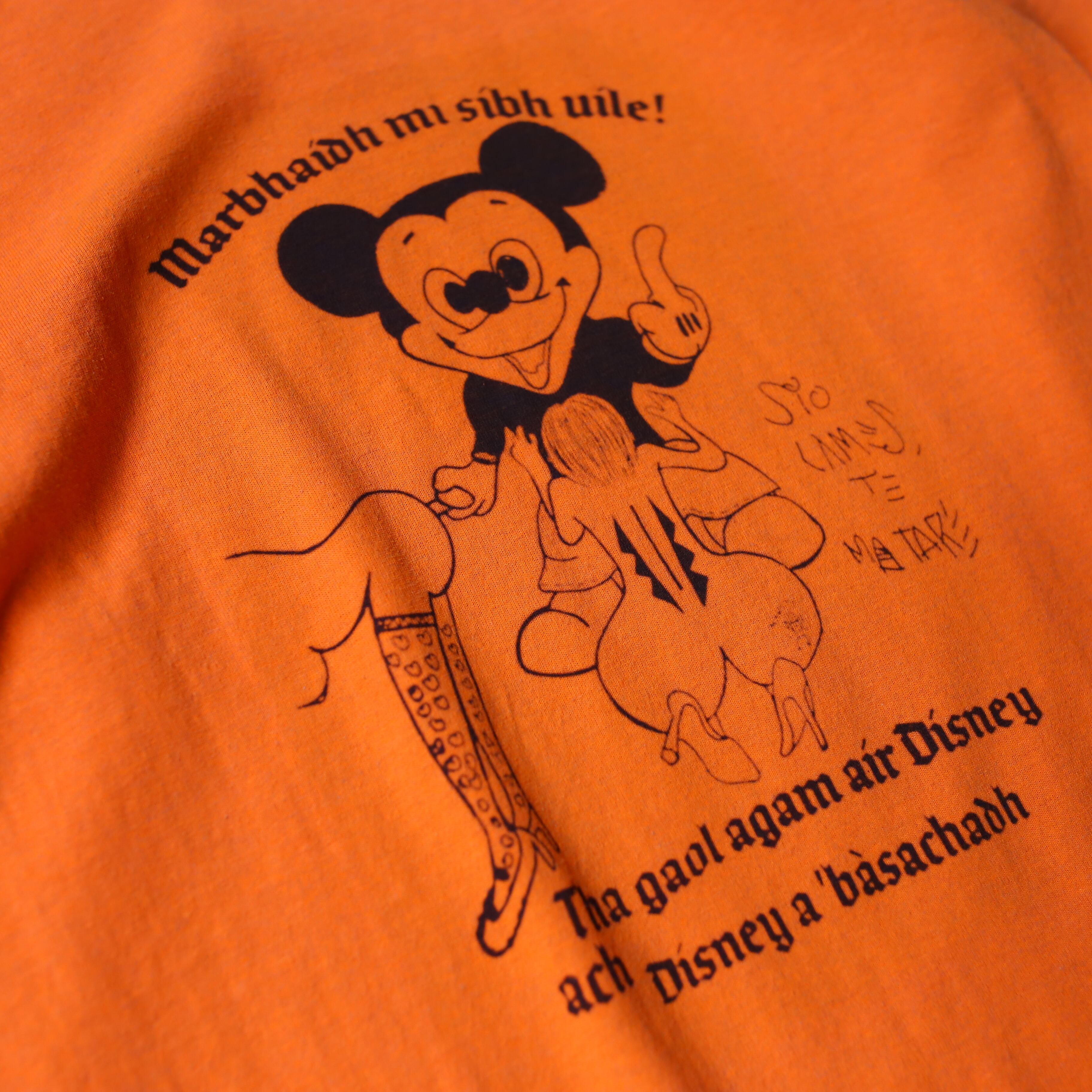 ・卑猥なグラフィックで描かれたミッキーマウスの長袖Tシャツ。
