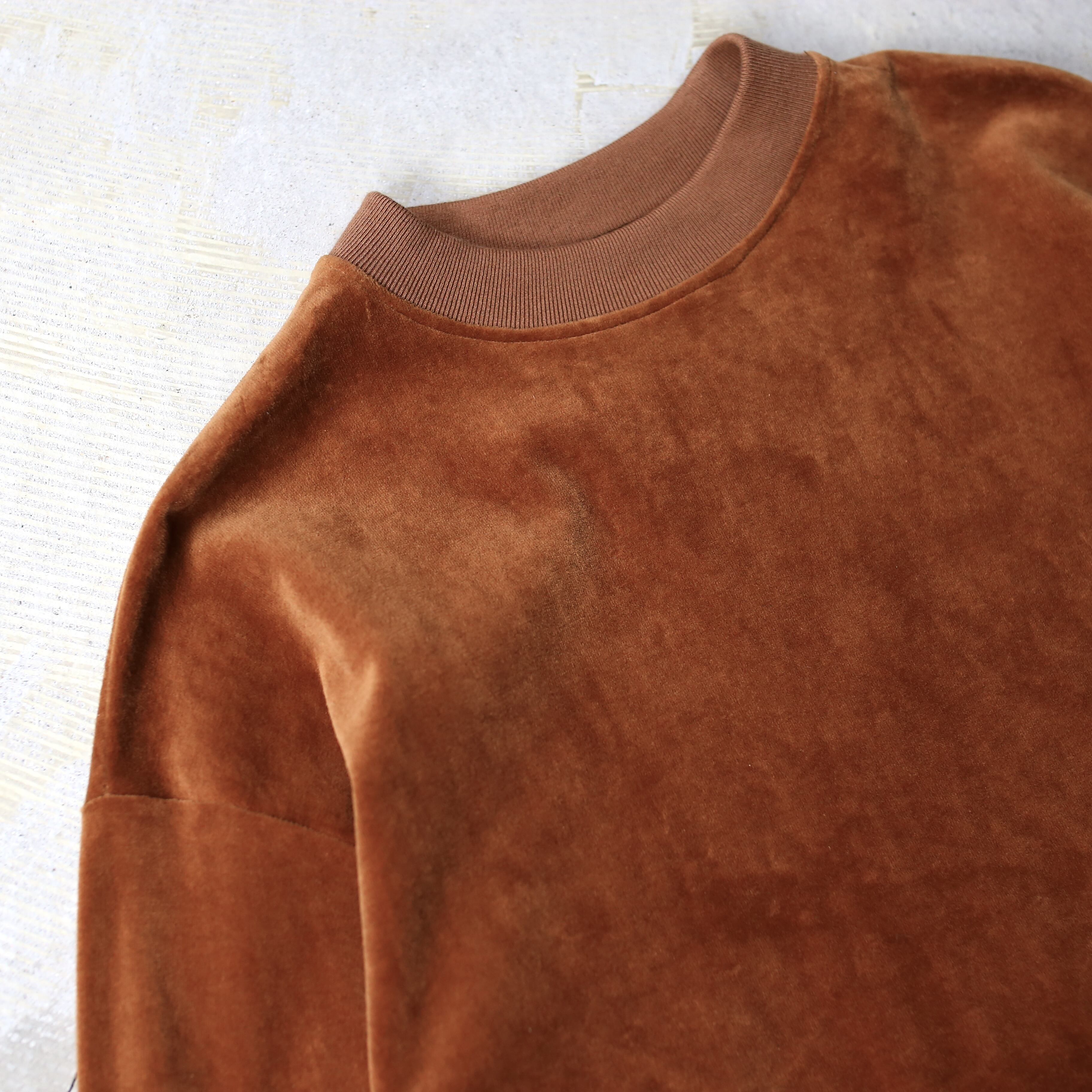 BROWN COLOR VELOUR SWEAT L/S TOPS / ベロア スウェット 長袖 トップス