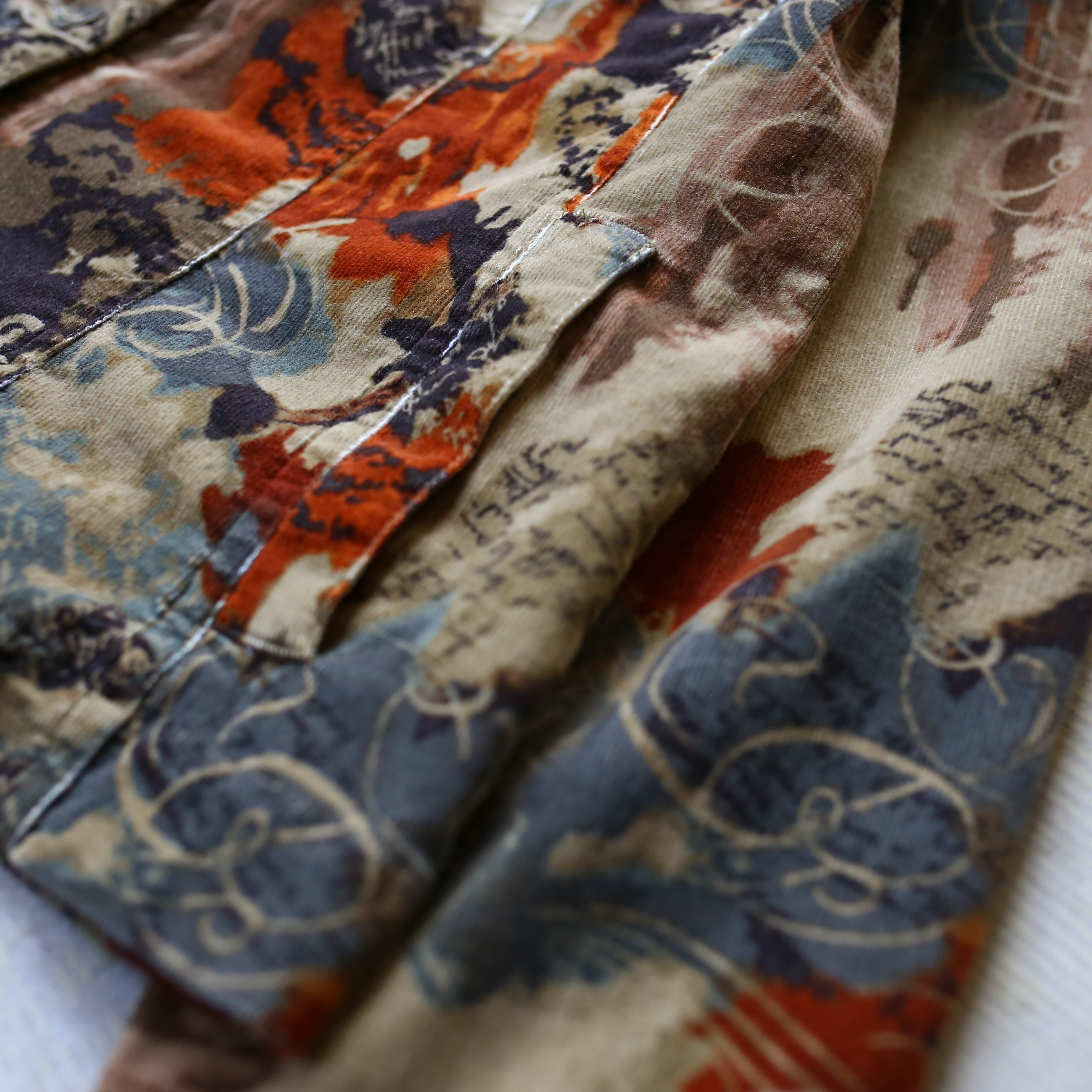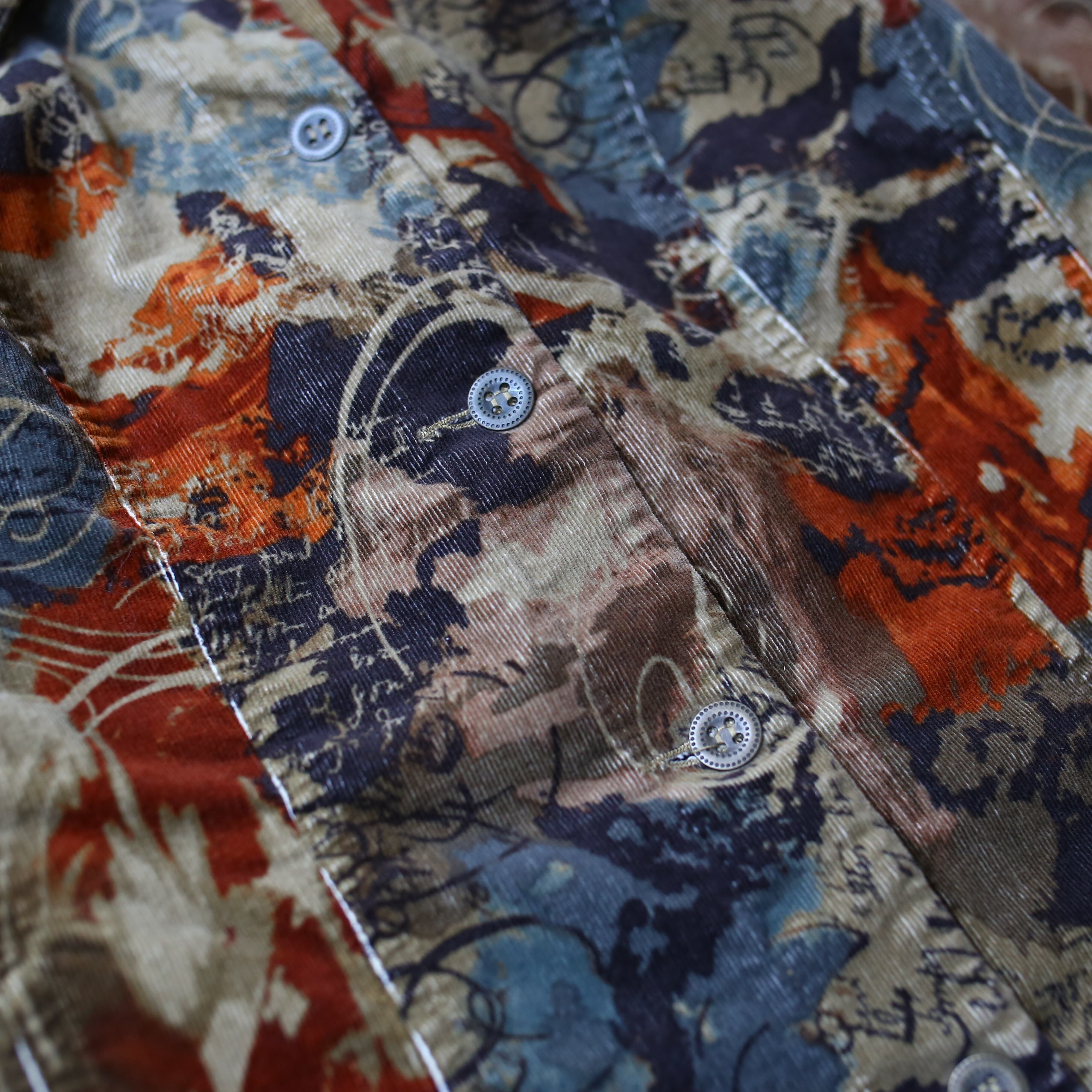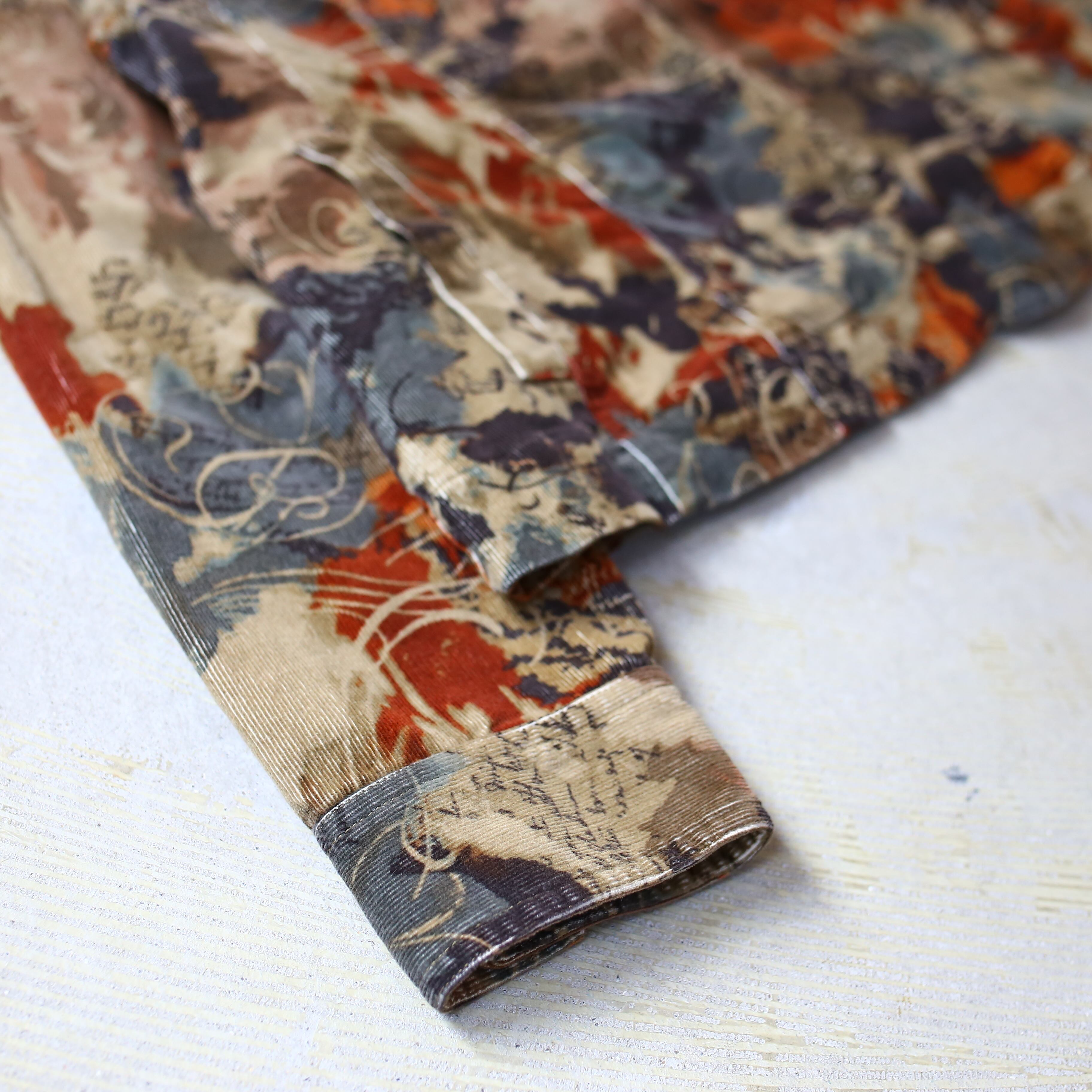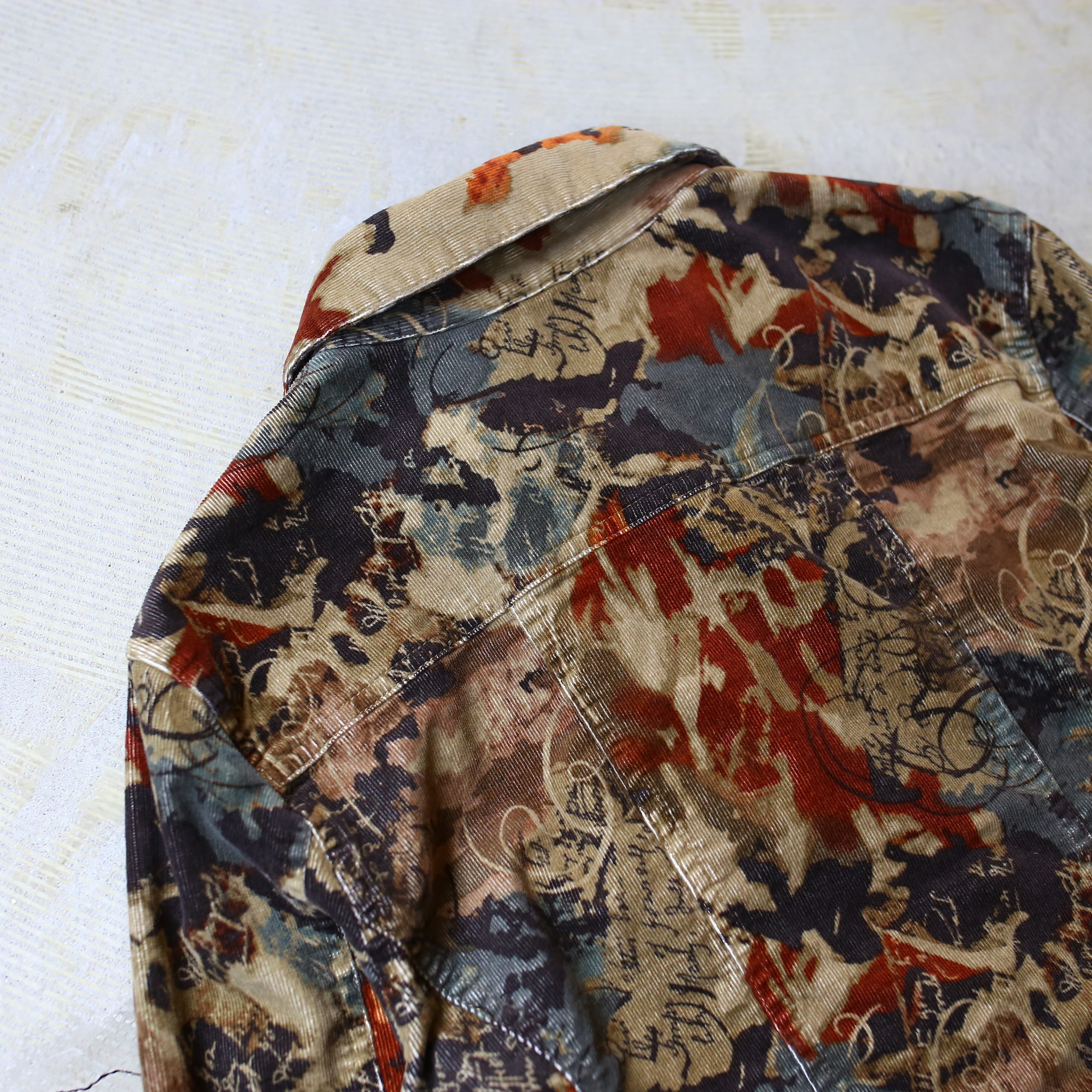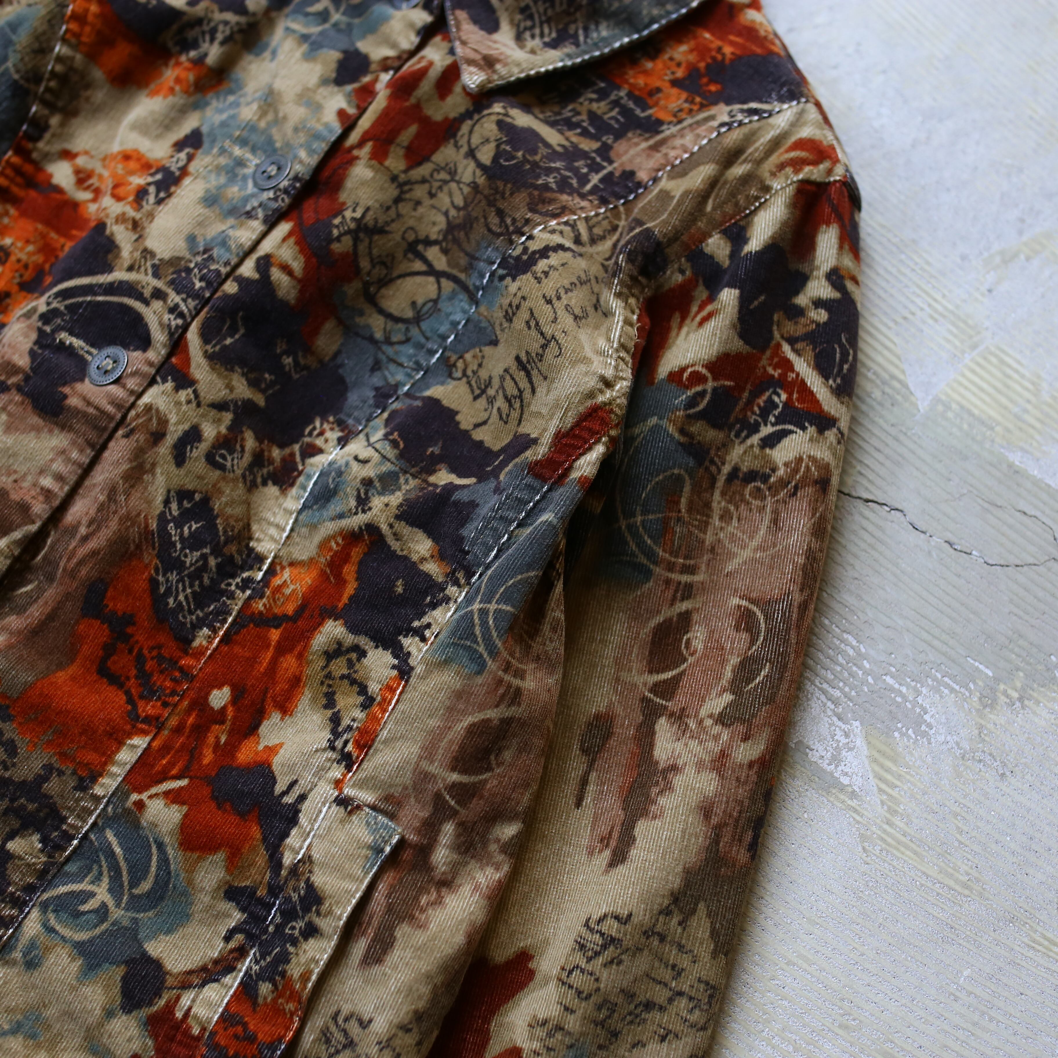 ・ノスタルジックな総柄が全体に施されたデザインシャツジャケット。