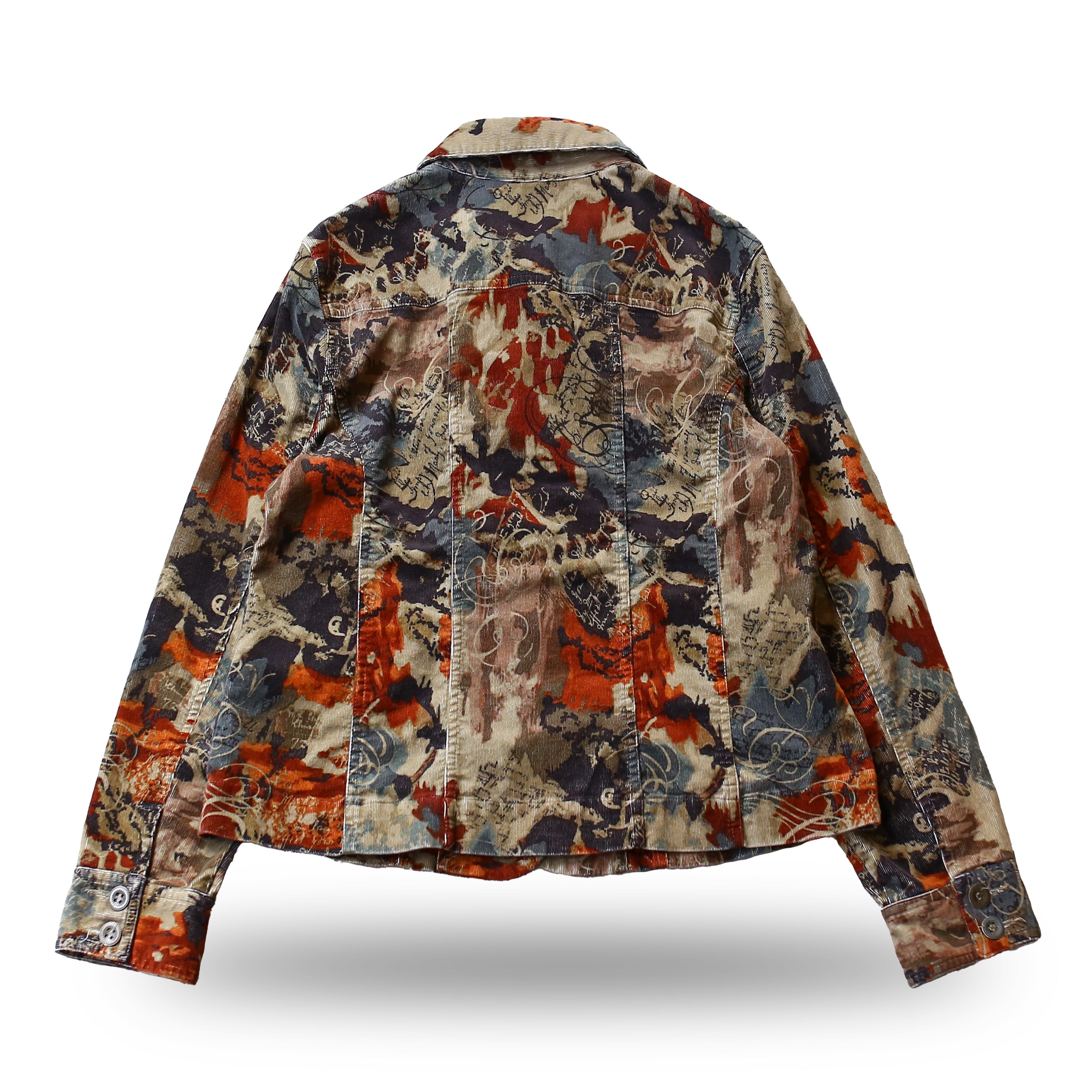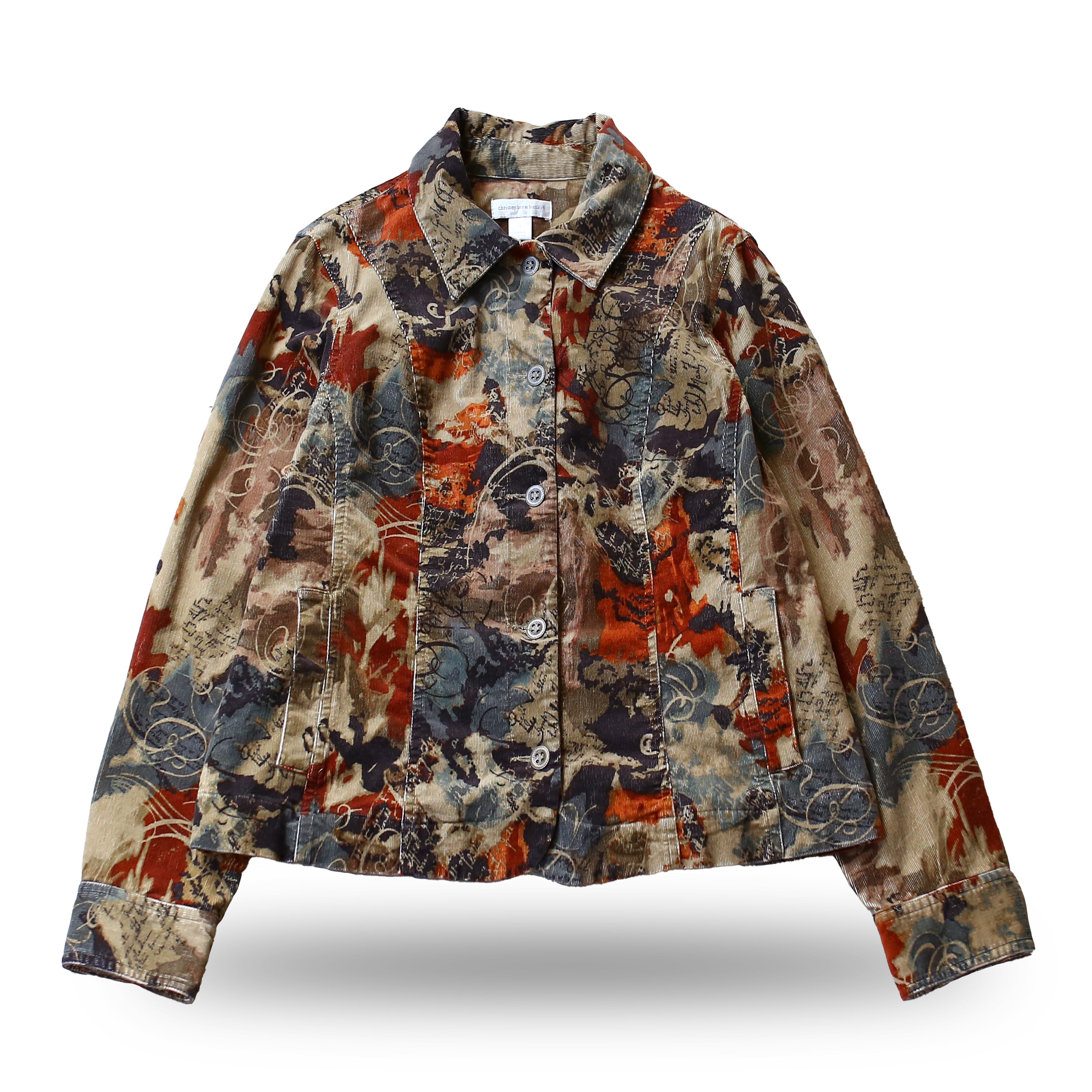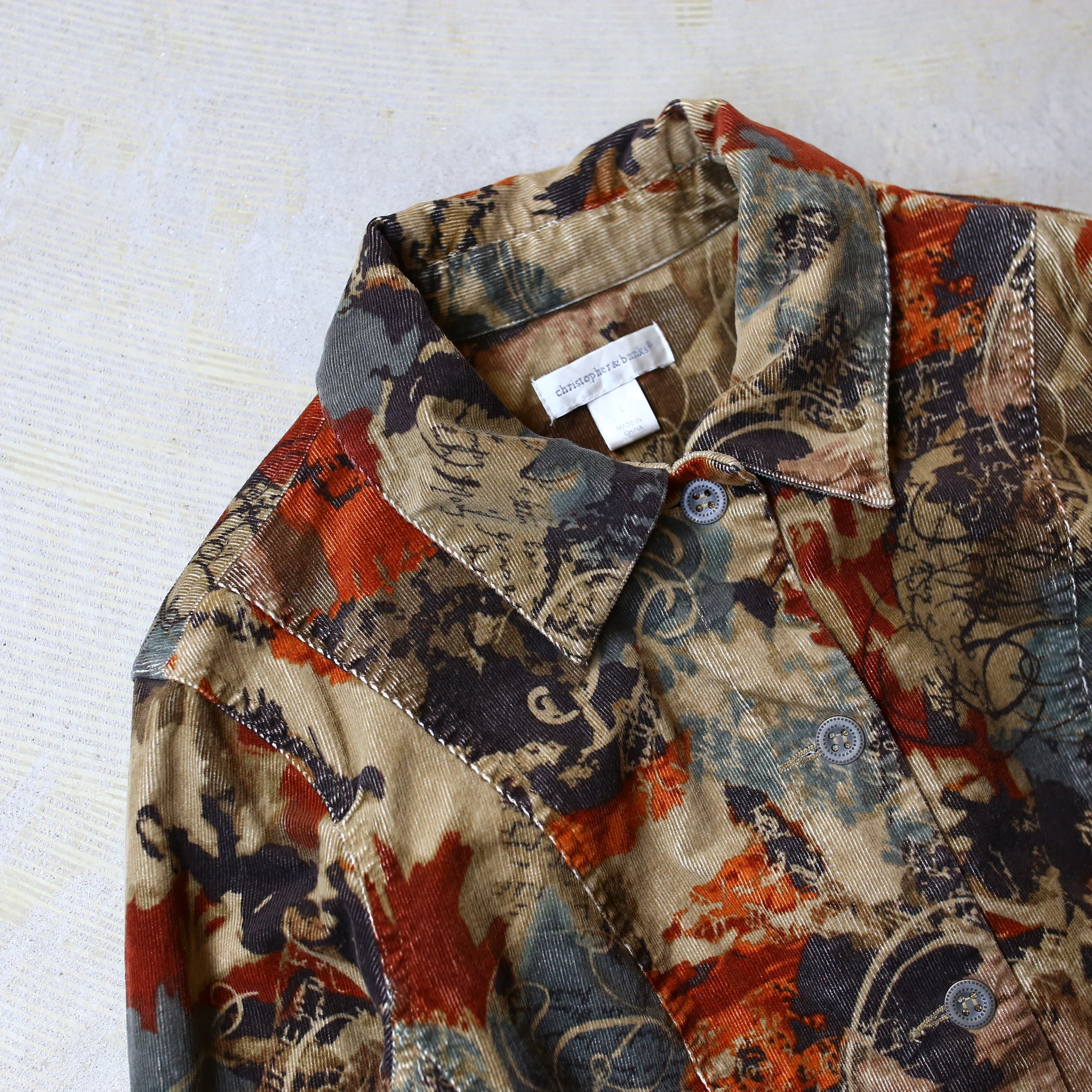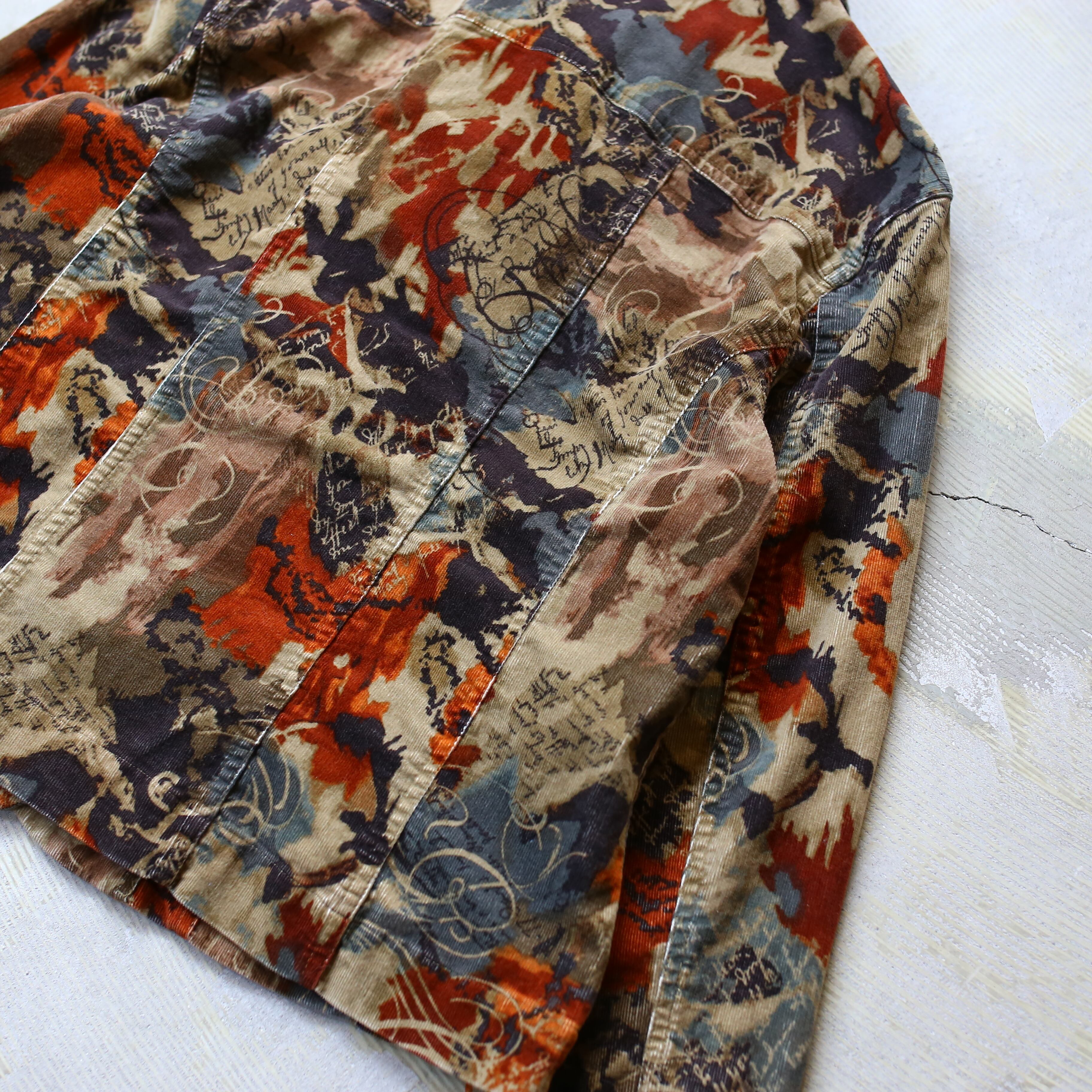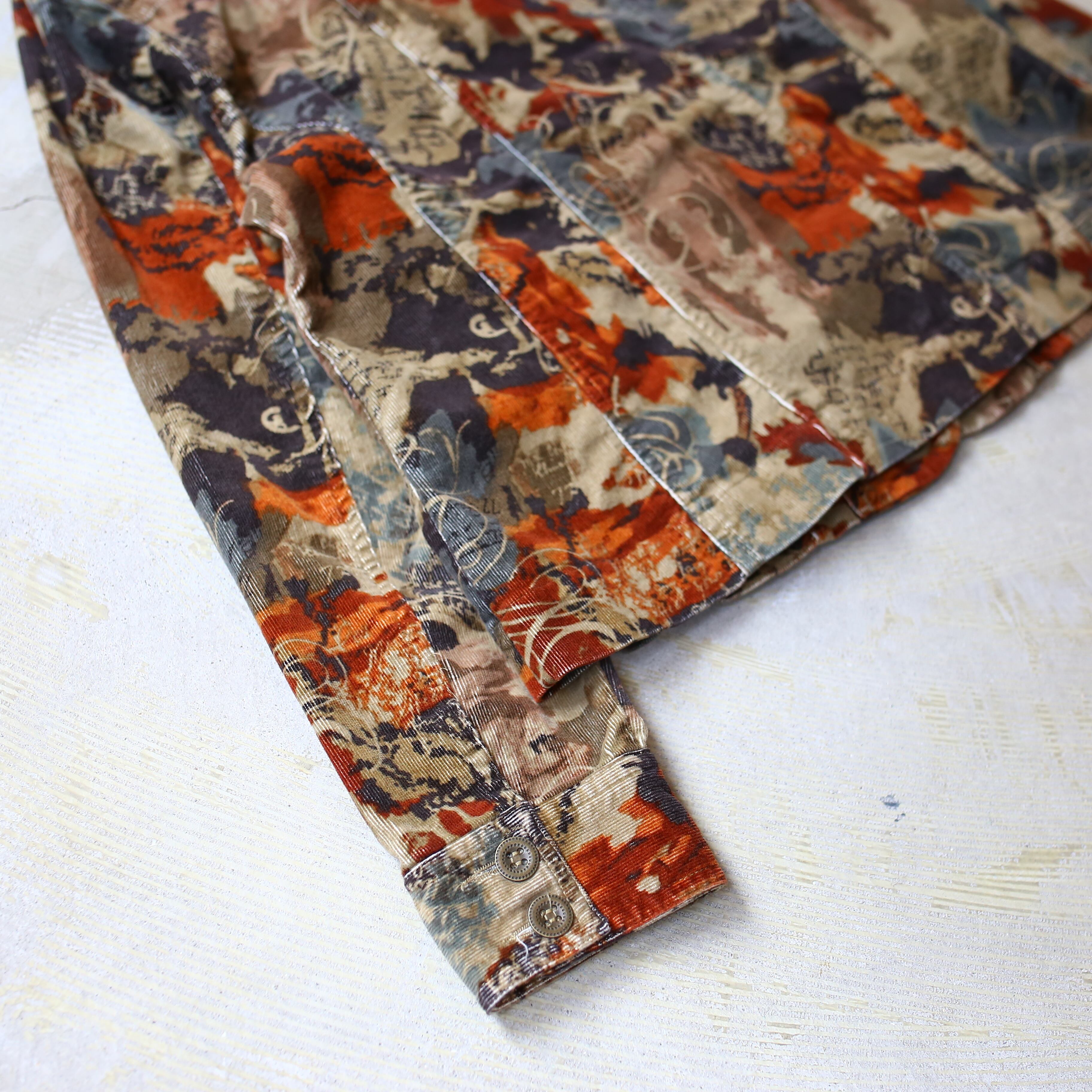 ・ノスタルジックな総柄が全体に施されたデザインシャツジャケット。