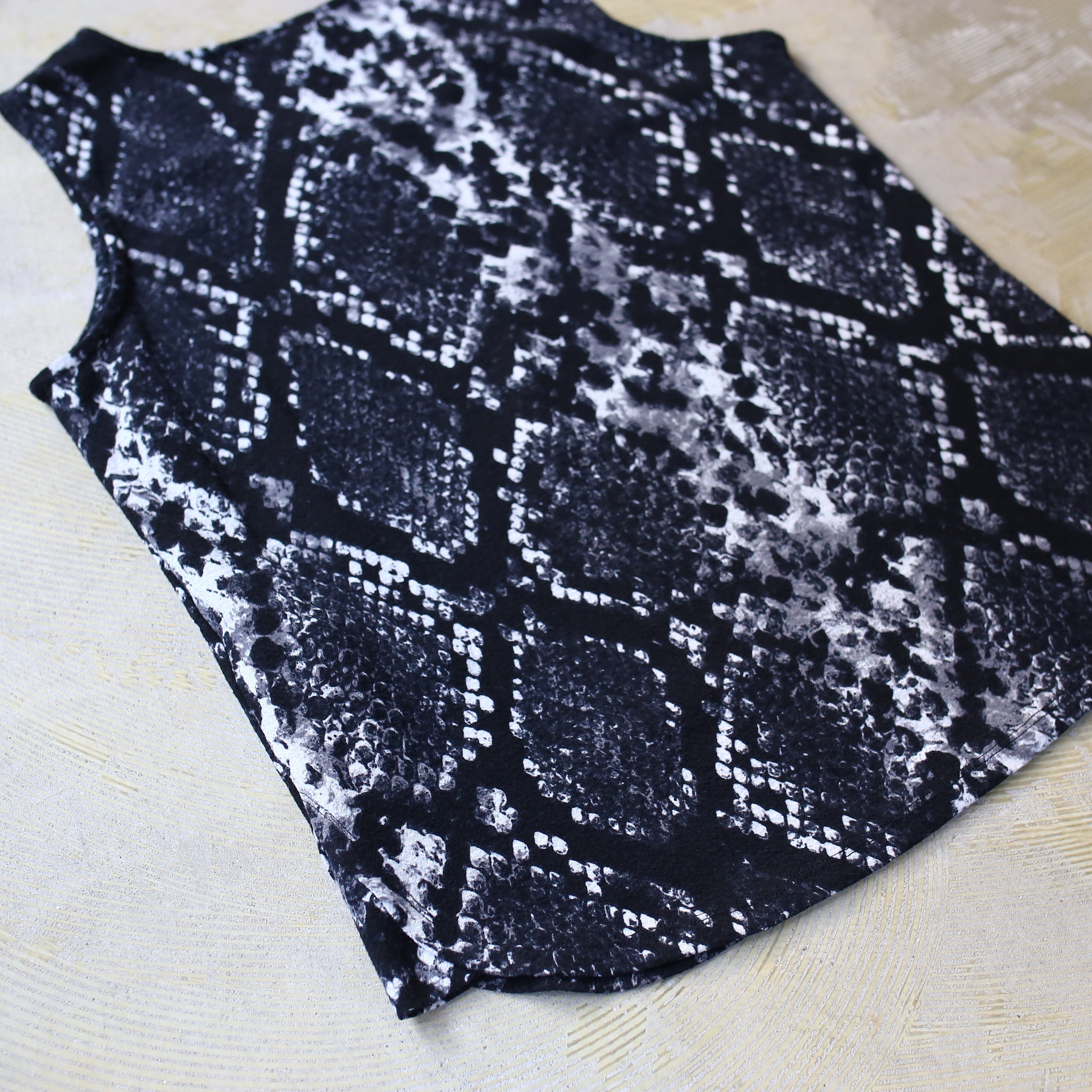 ・パイソン柄を全体に纏ったデザインベスト。
