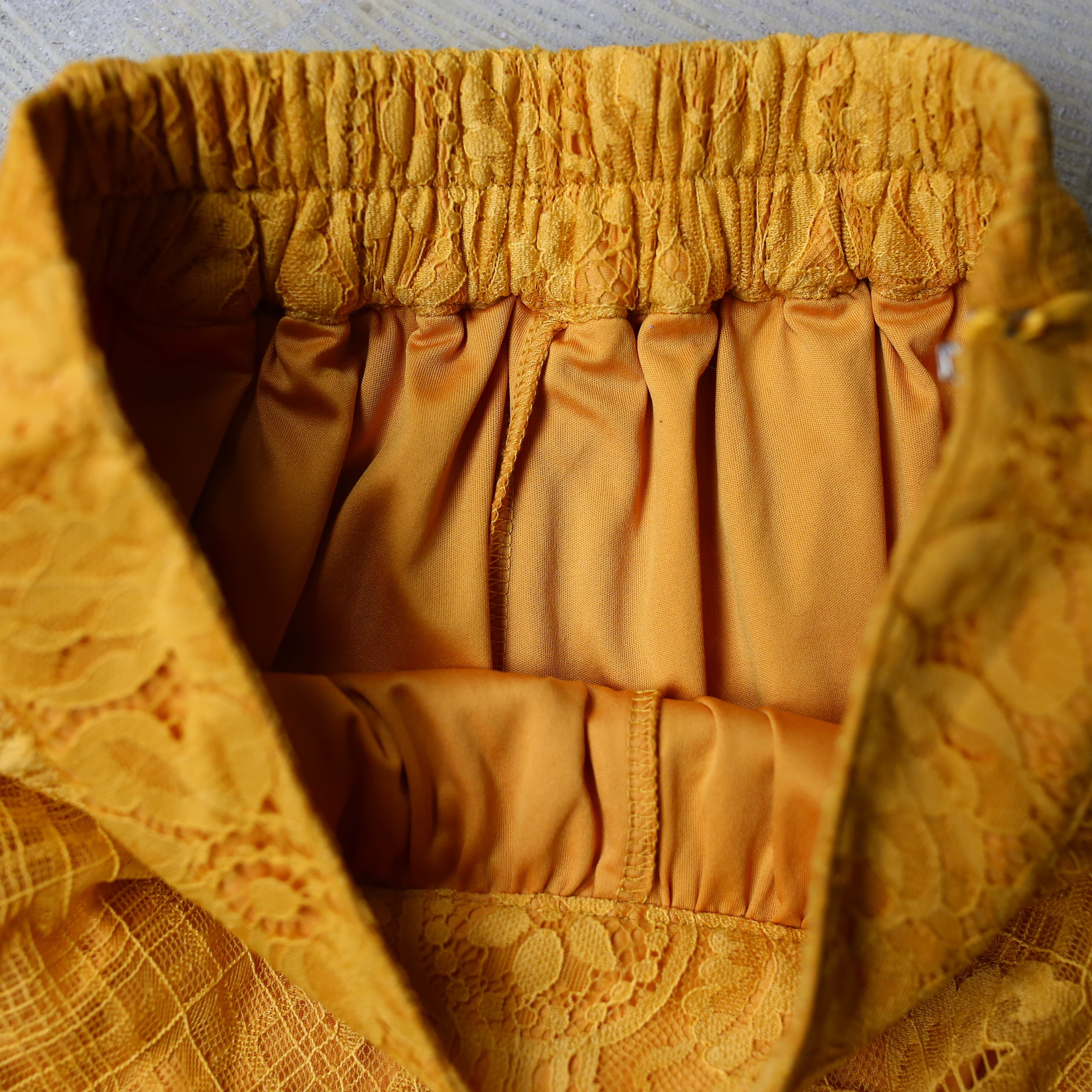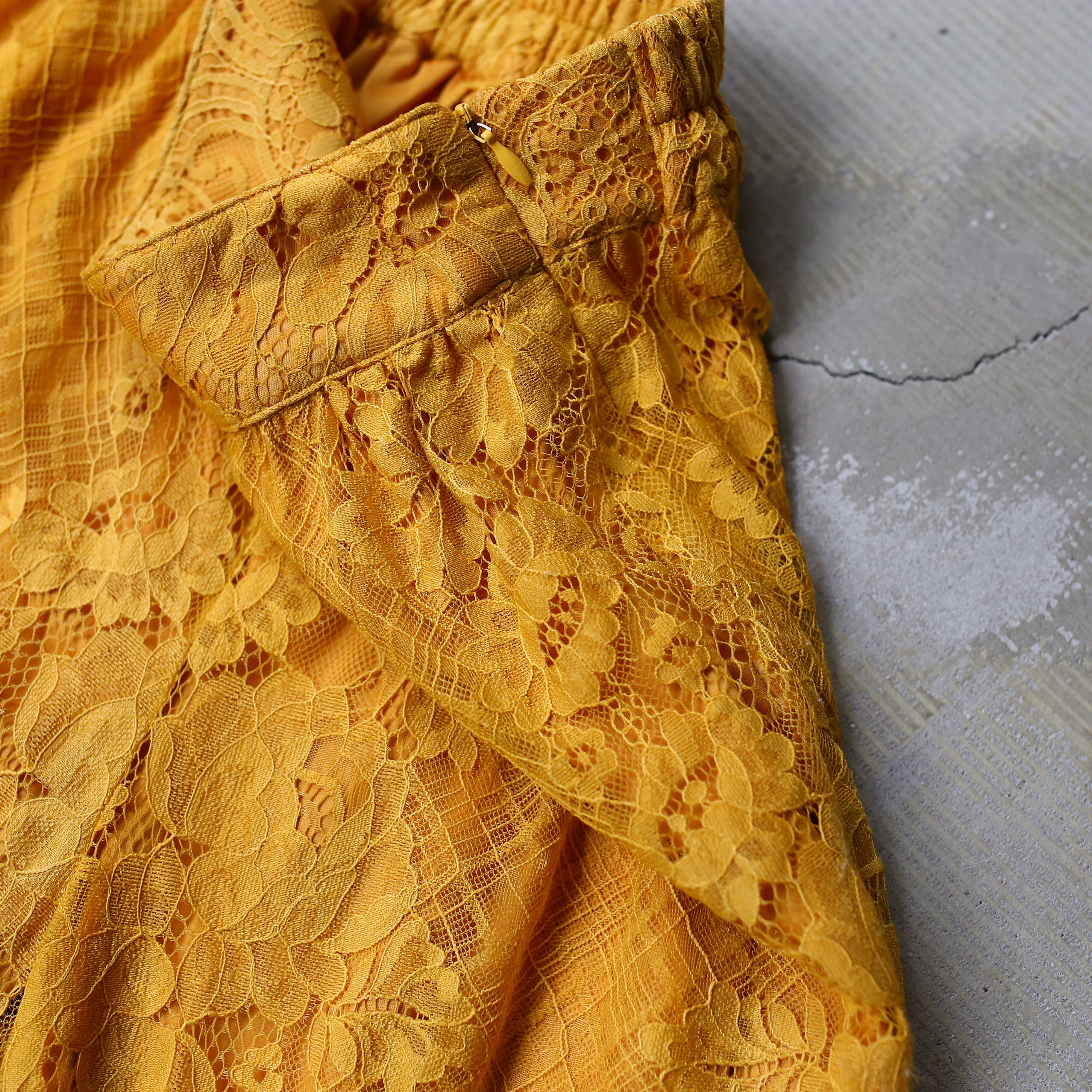 ・風合い豊かなイエローカラーのデザインワイドパンツ。