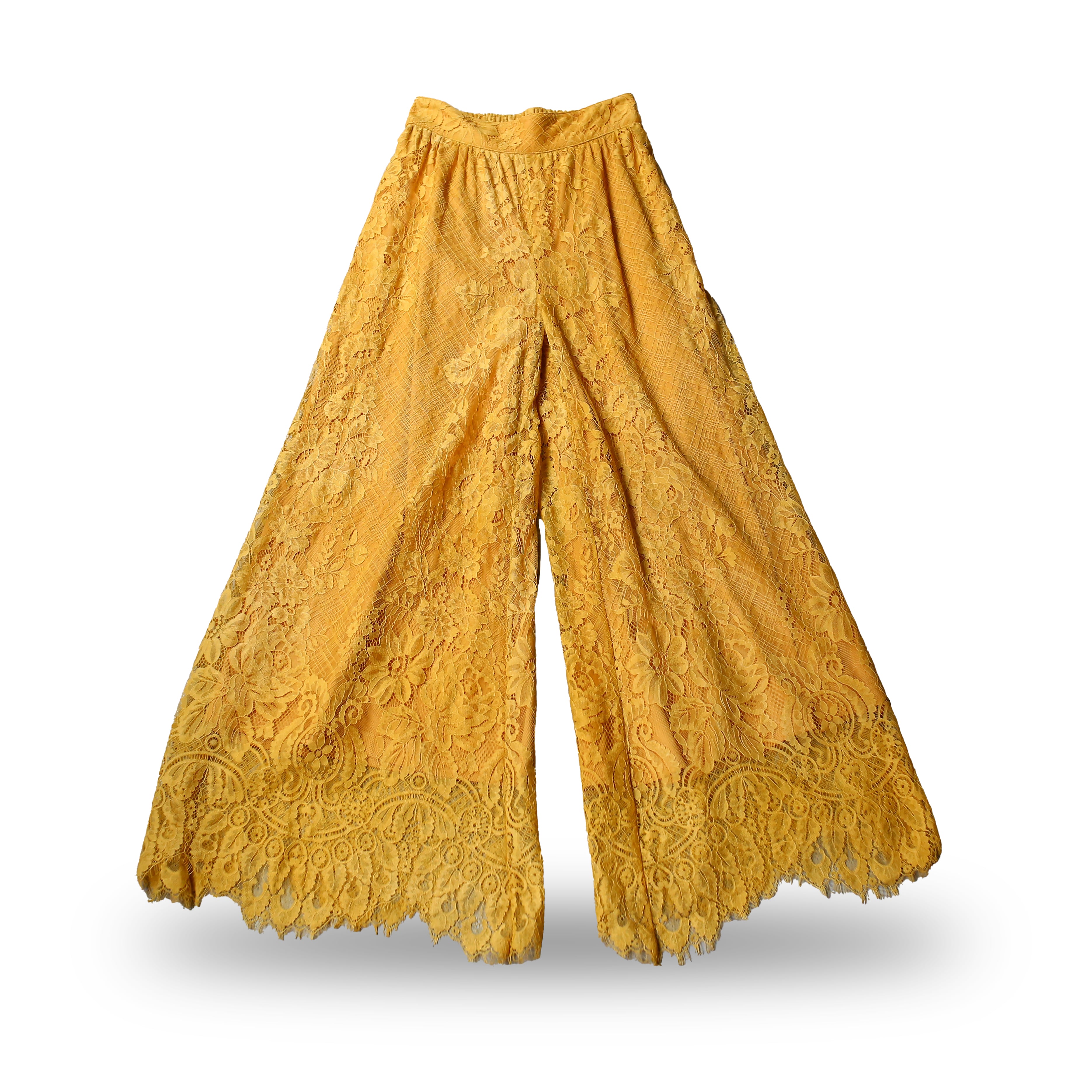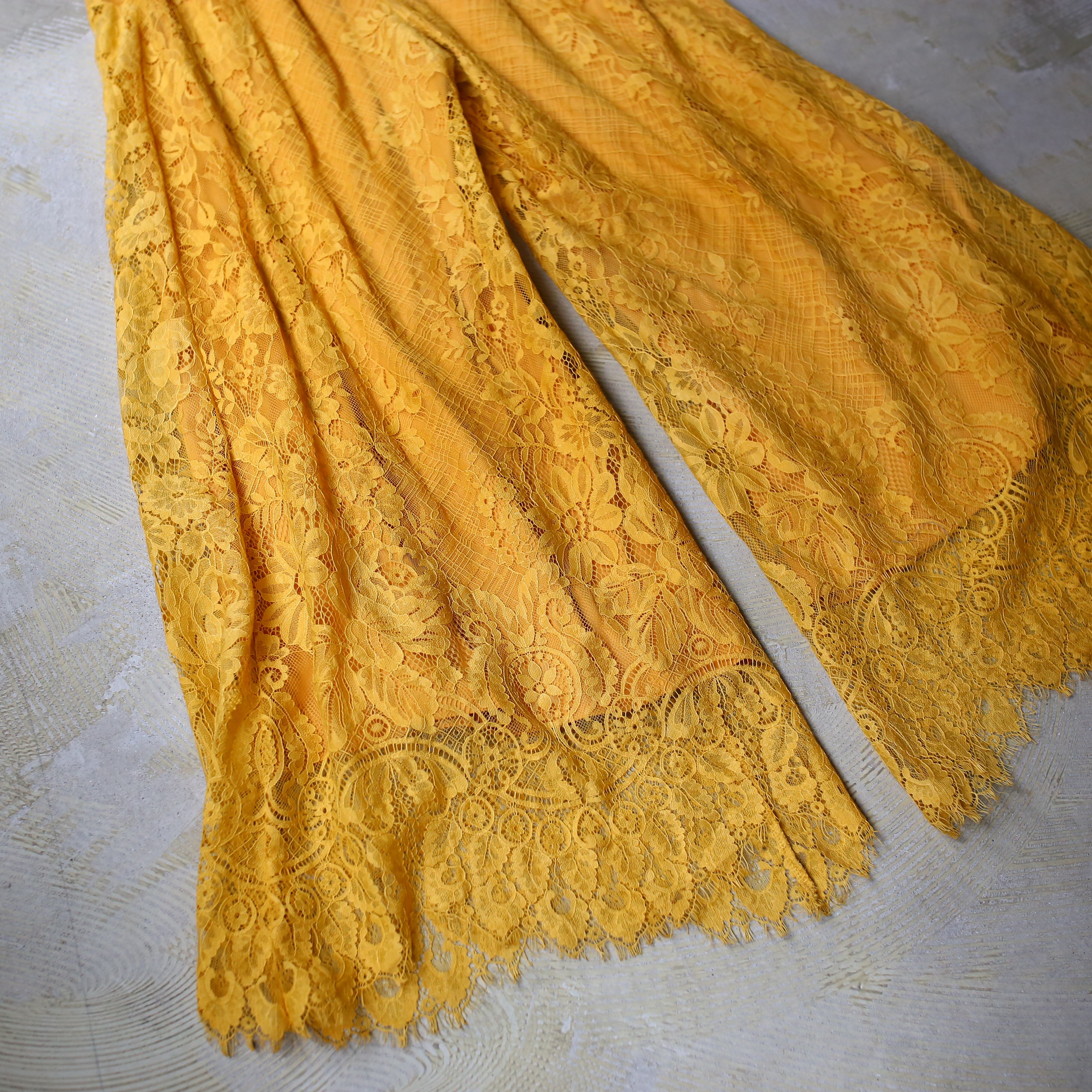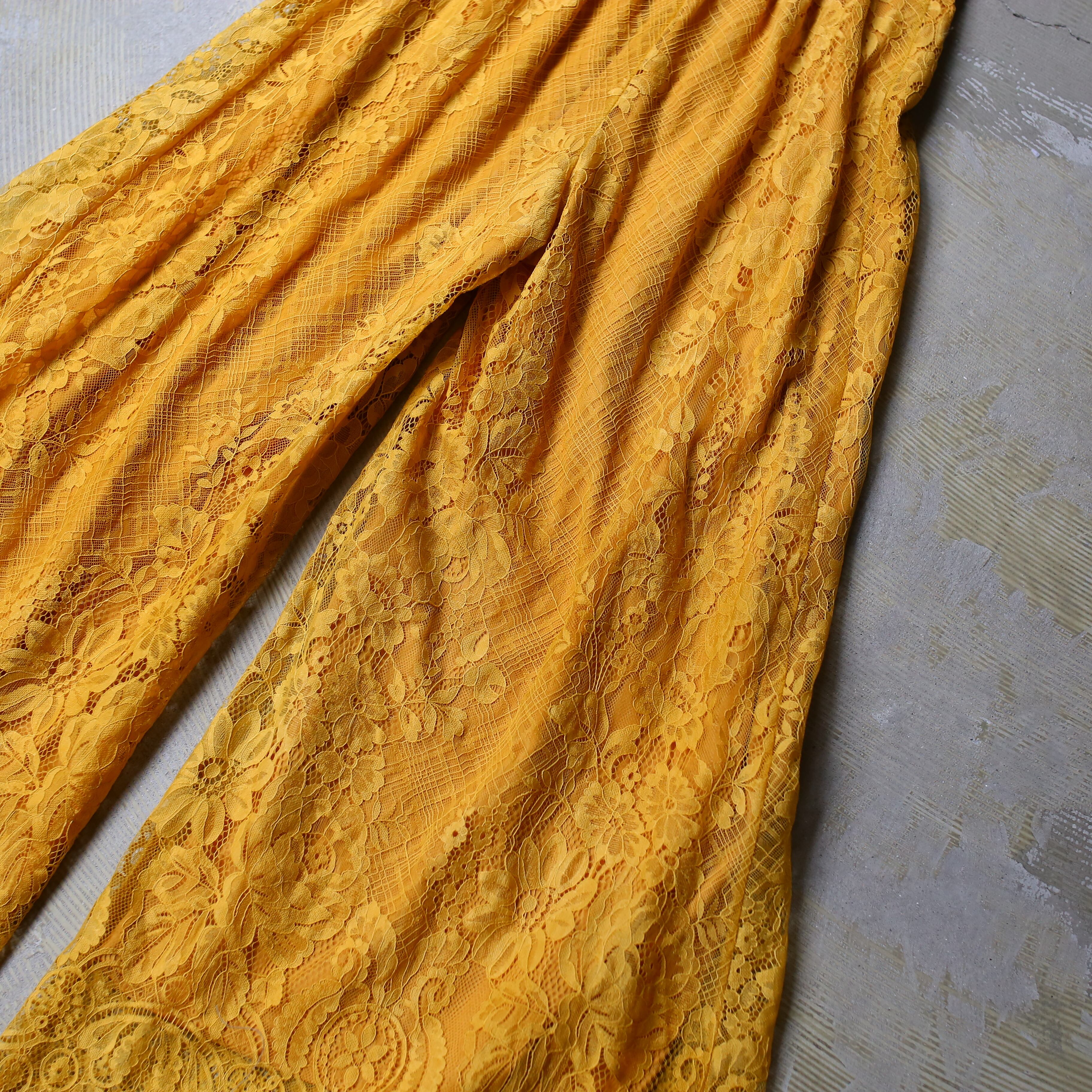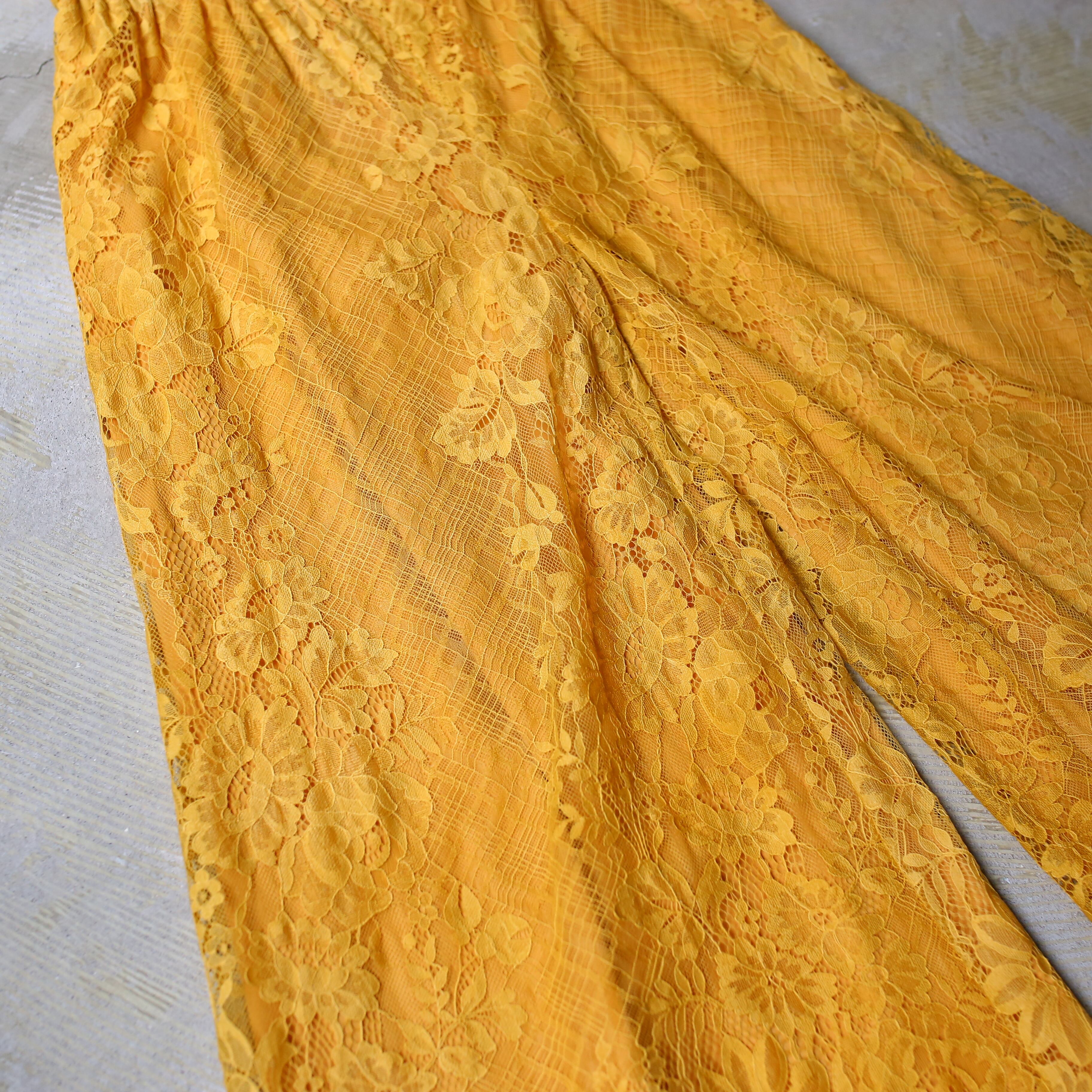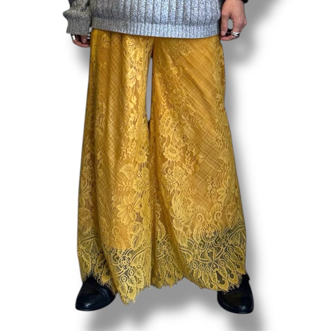 BOTANICAL LACE PATTERN WIDE SILHOUETTE PANTS / 花 柄 カラー レース ワイド パンツ