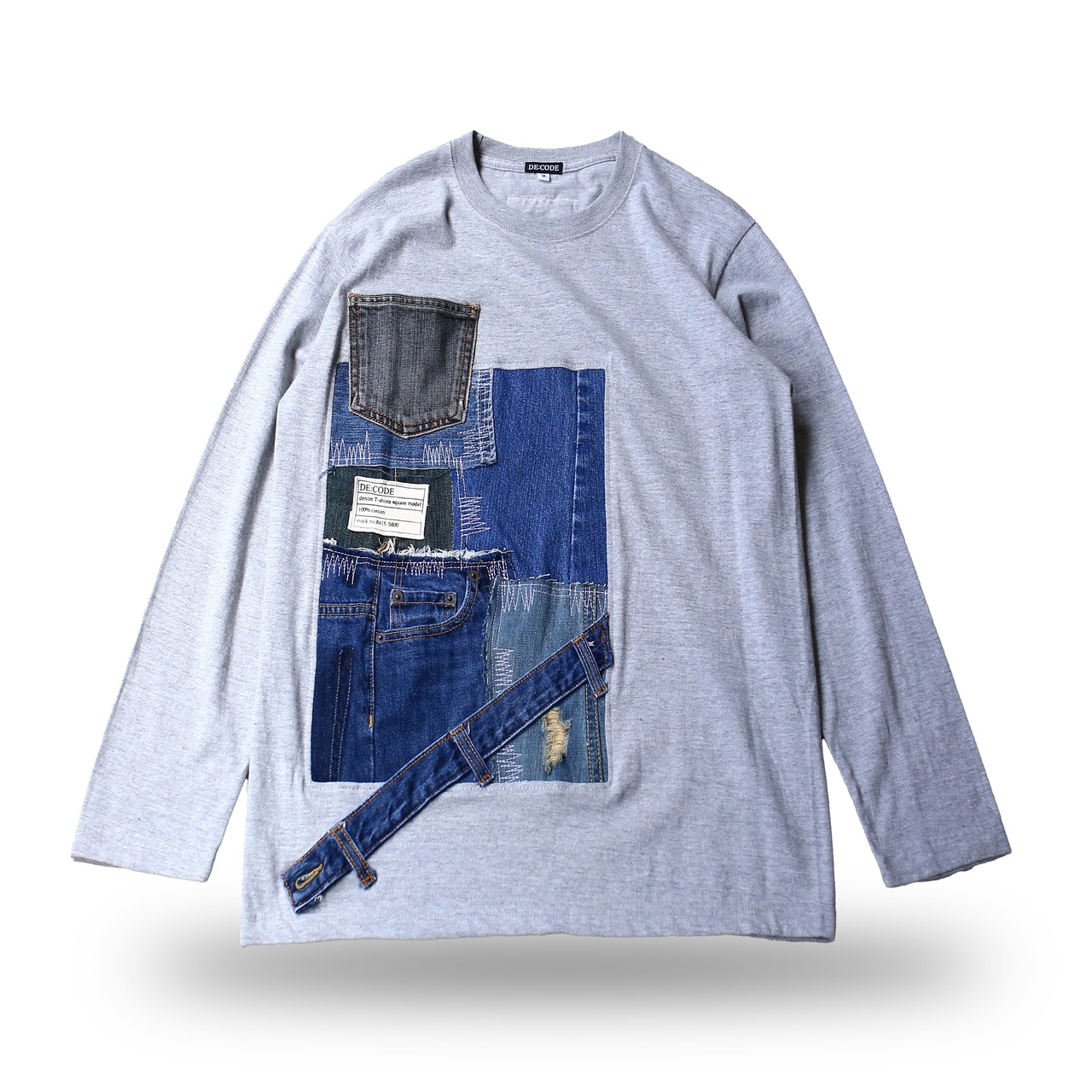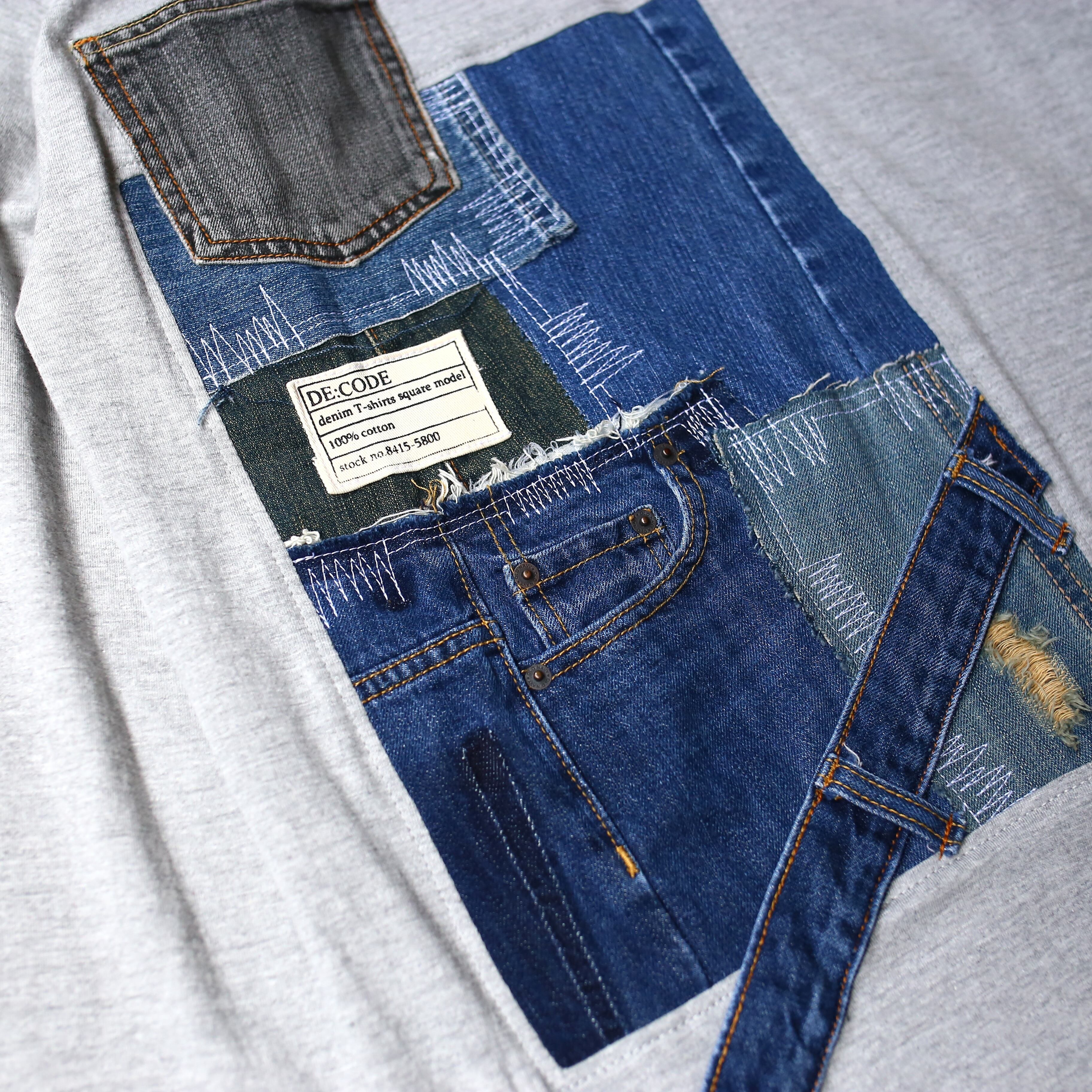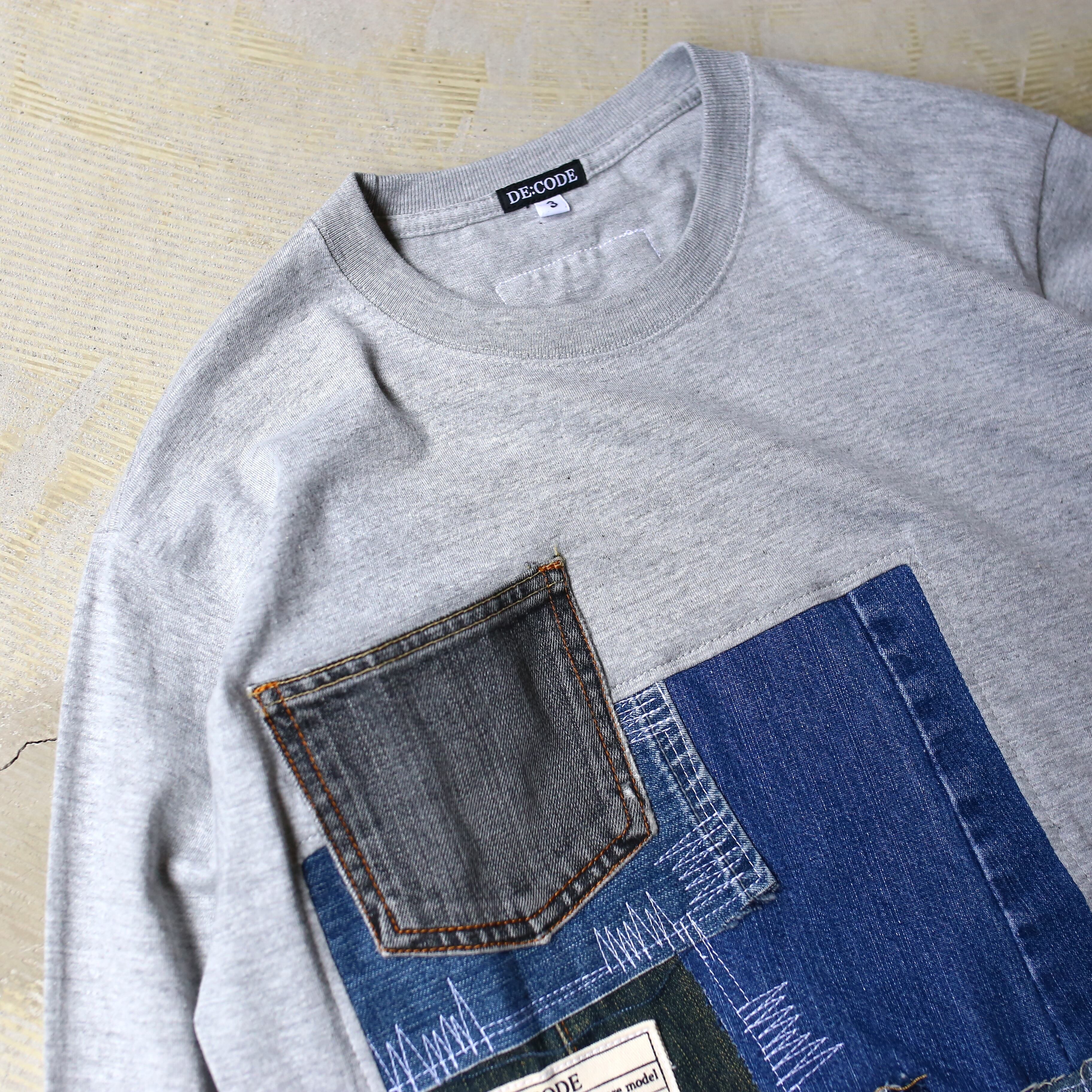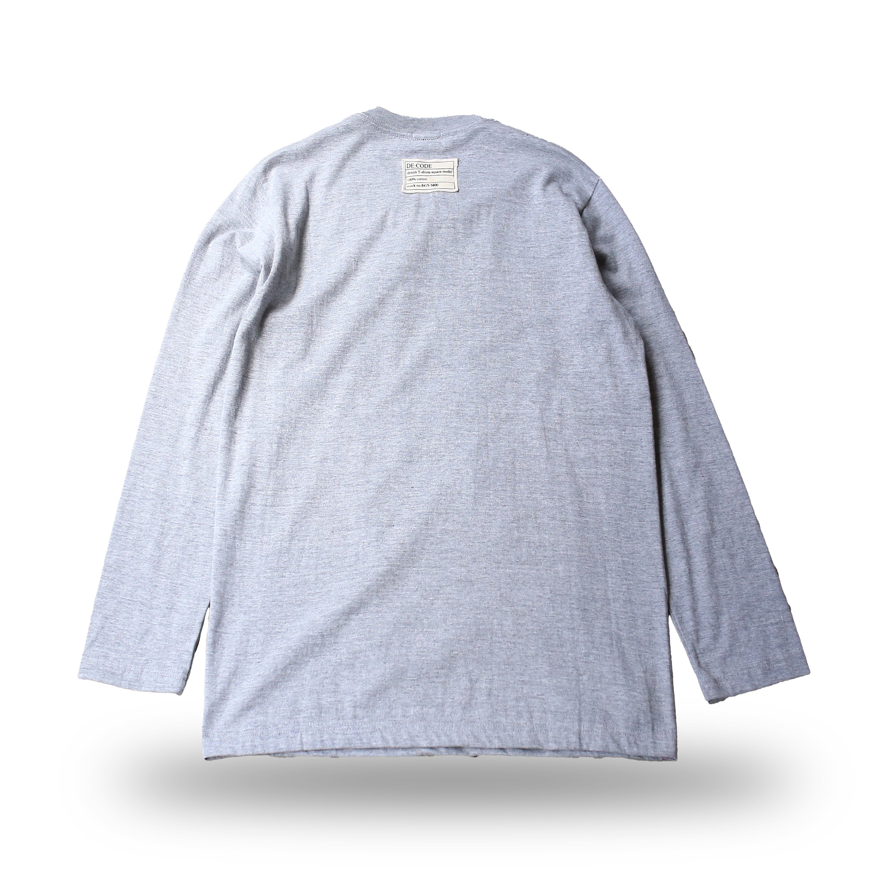 【DE:CODE】PATCHWORK DESIGN DENIM L/S TEE / GRAY