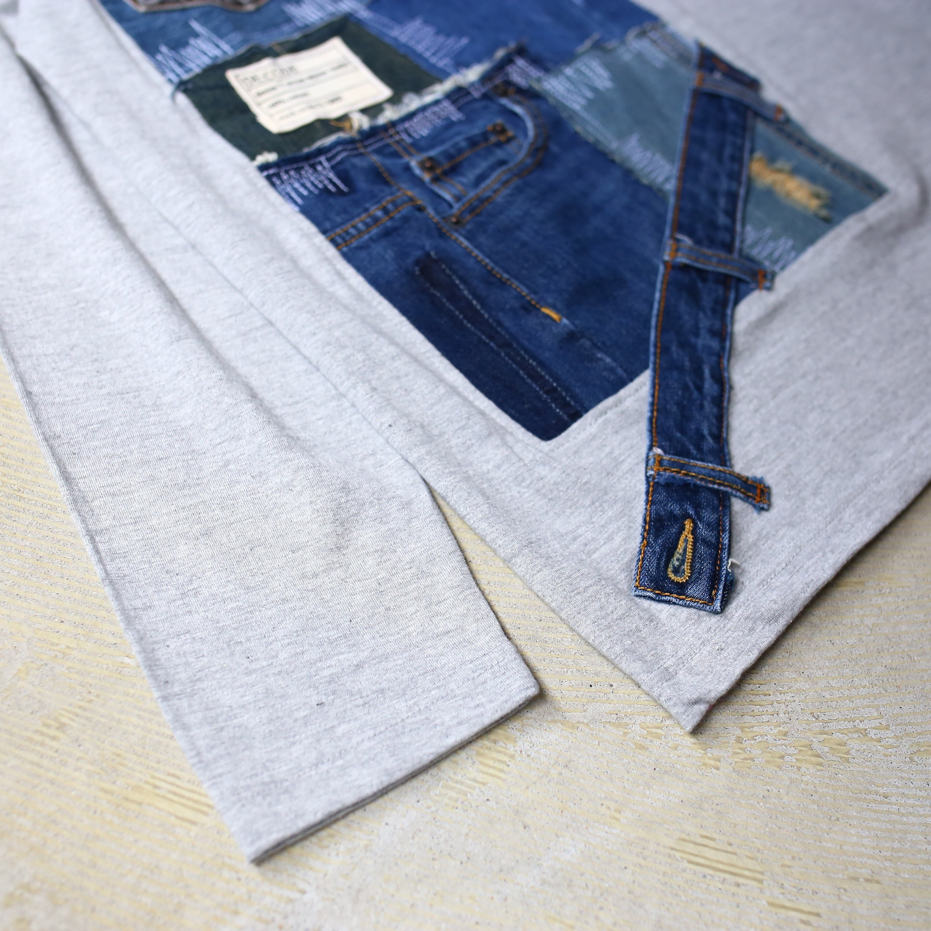 こちらは長袖Tシャツにデニム生地を繋ぎ合わせ