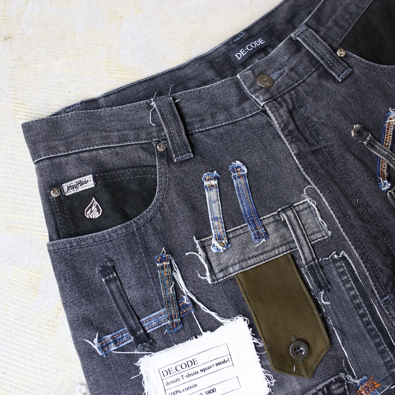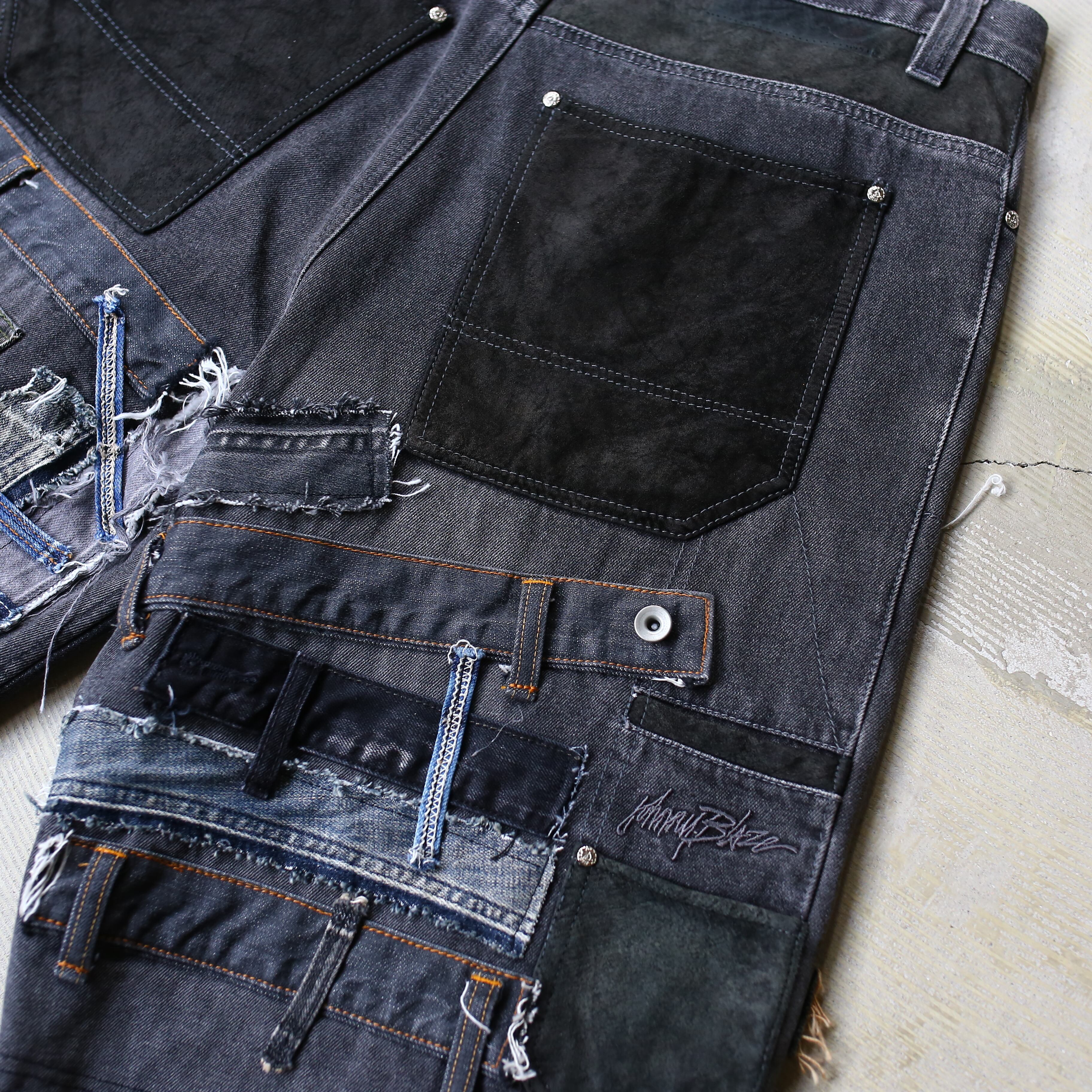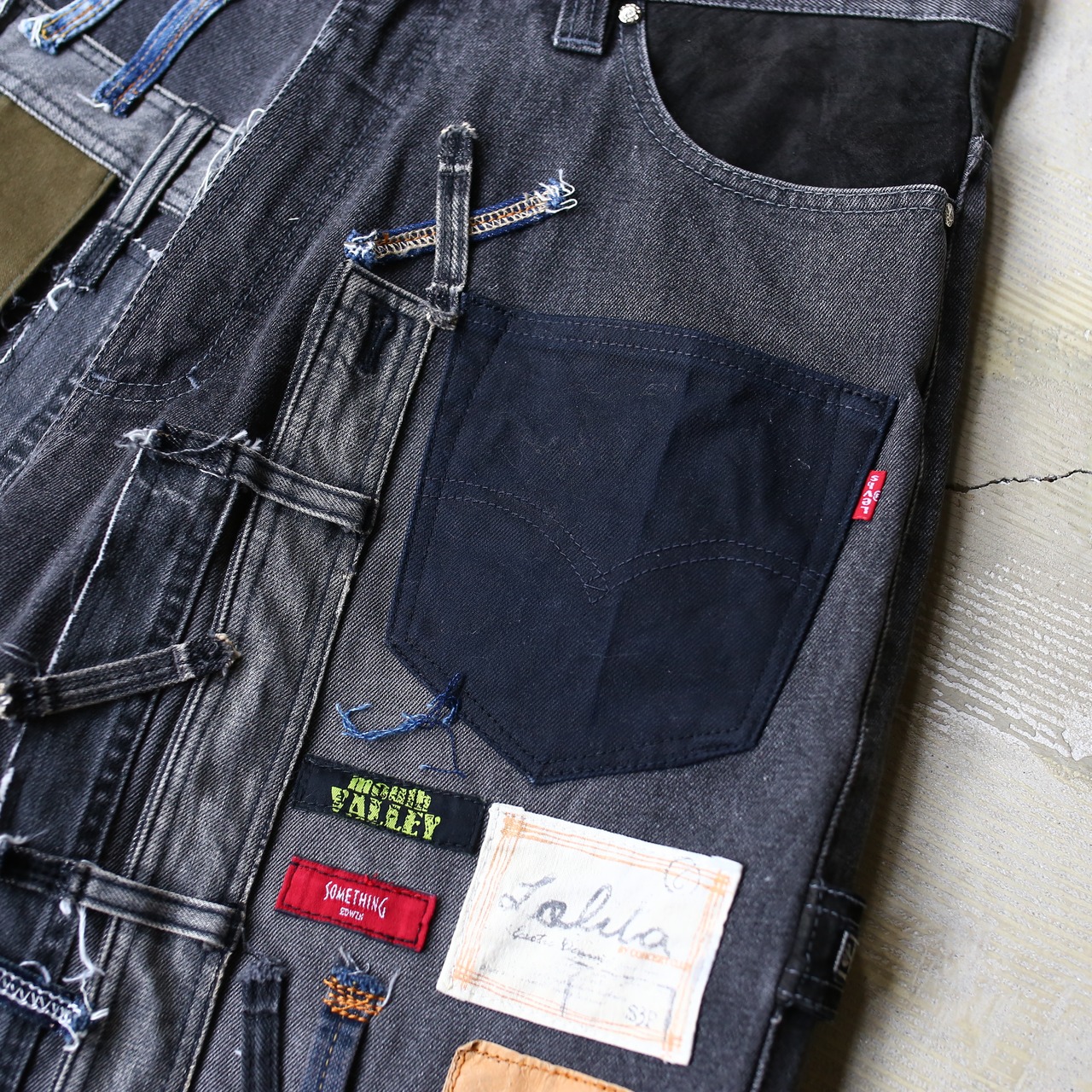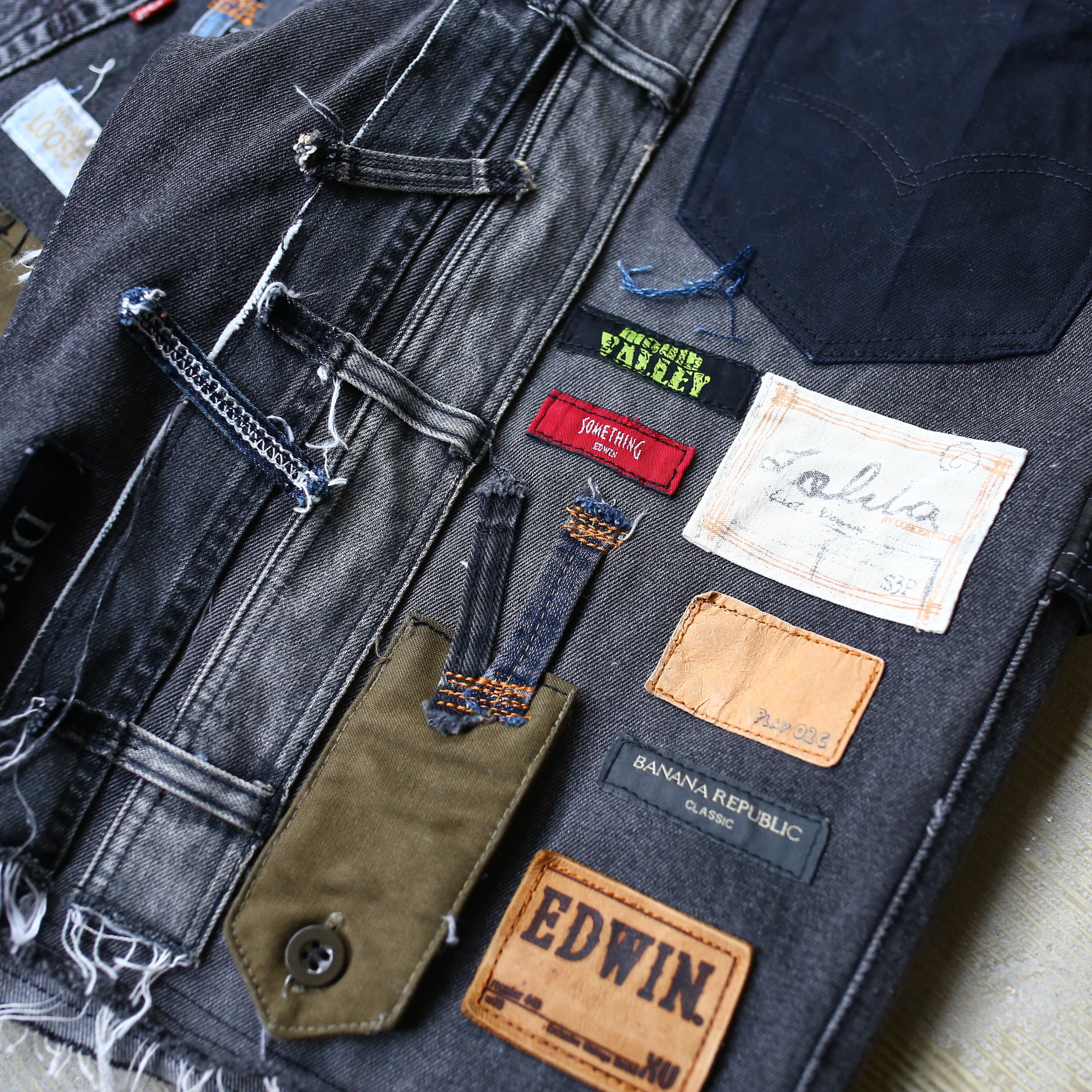 こちらは様々なデニム生地やミリタリー生地を繋ぎ合わせ