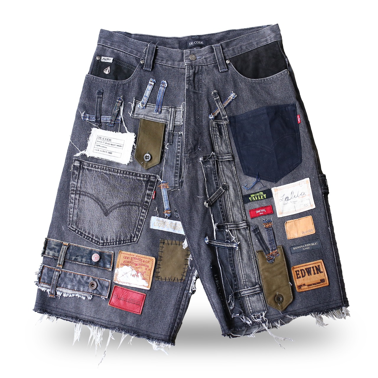 【DE:CODE】PATCHWORK DESIGN DENIM SHORTS / パッチワーク デニム ショート パンツ ショーツ
