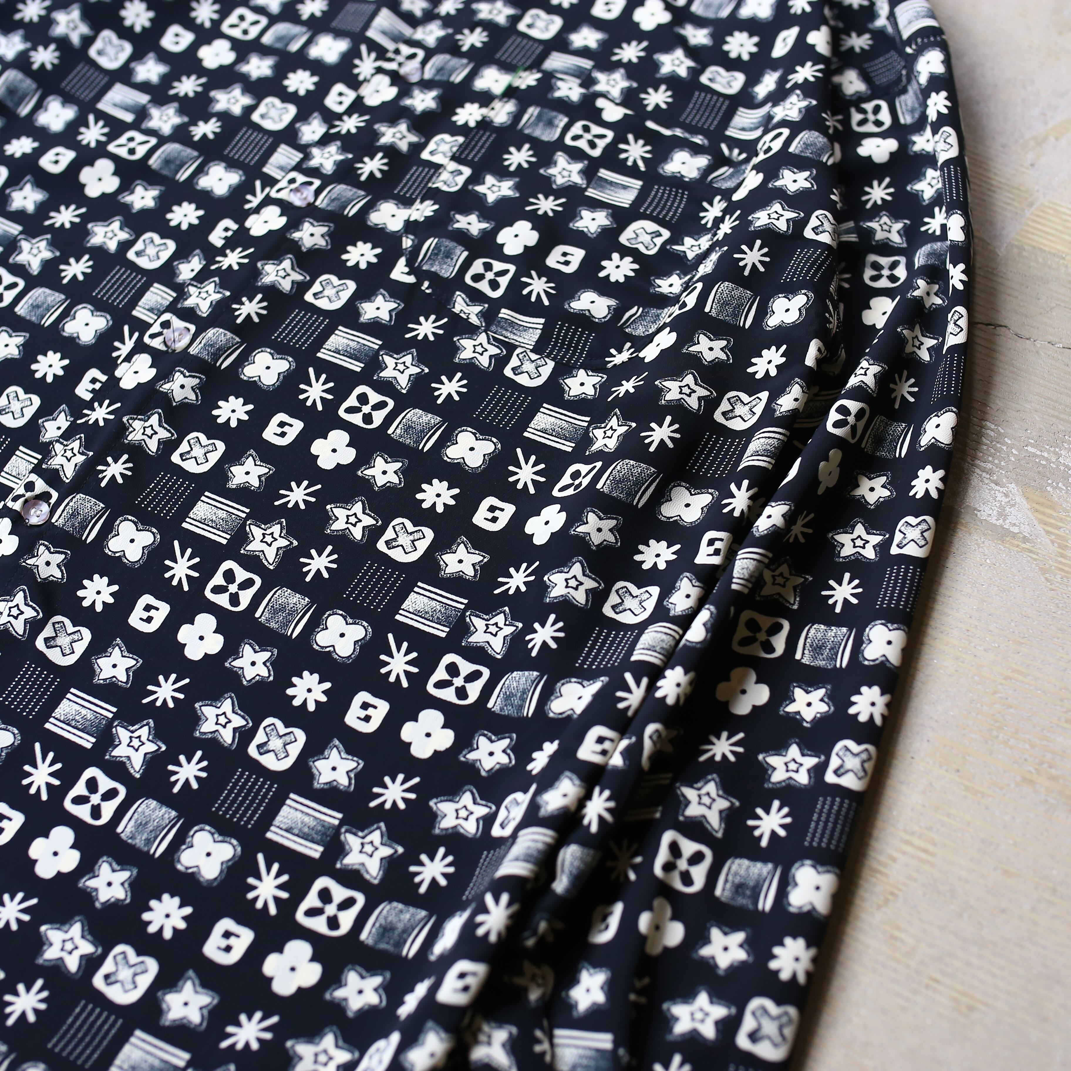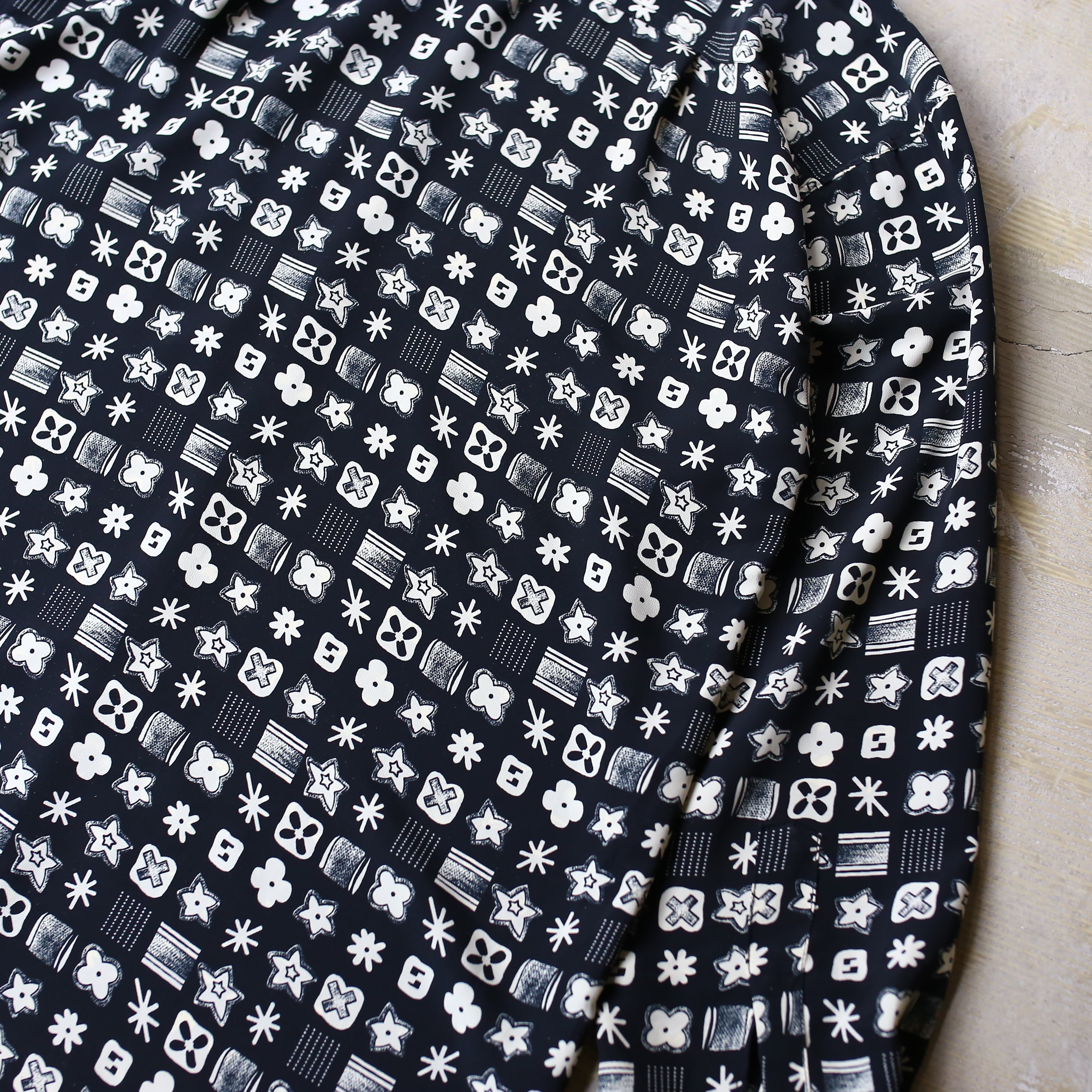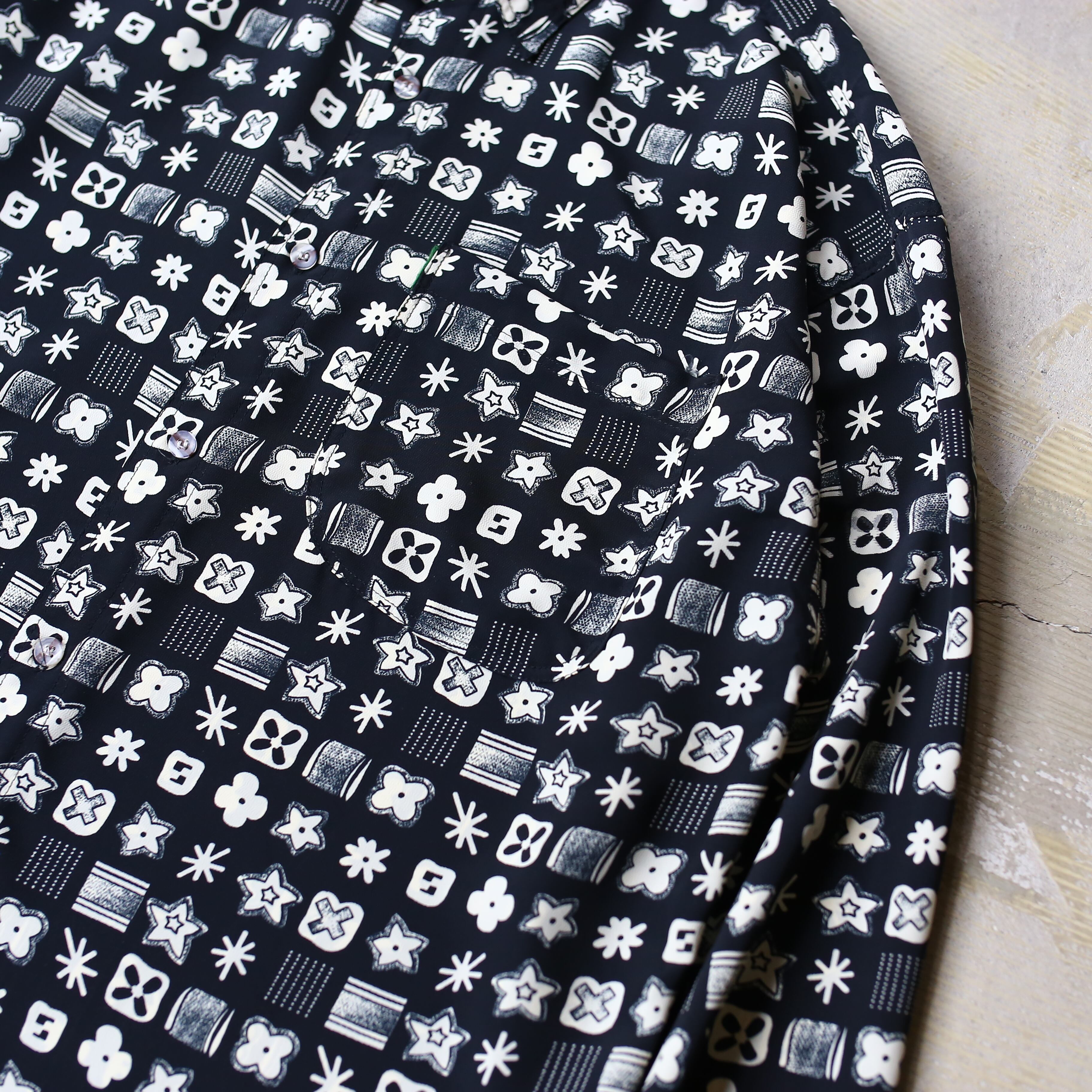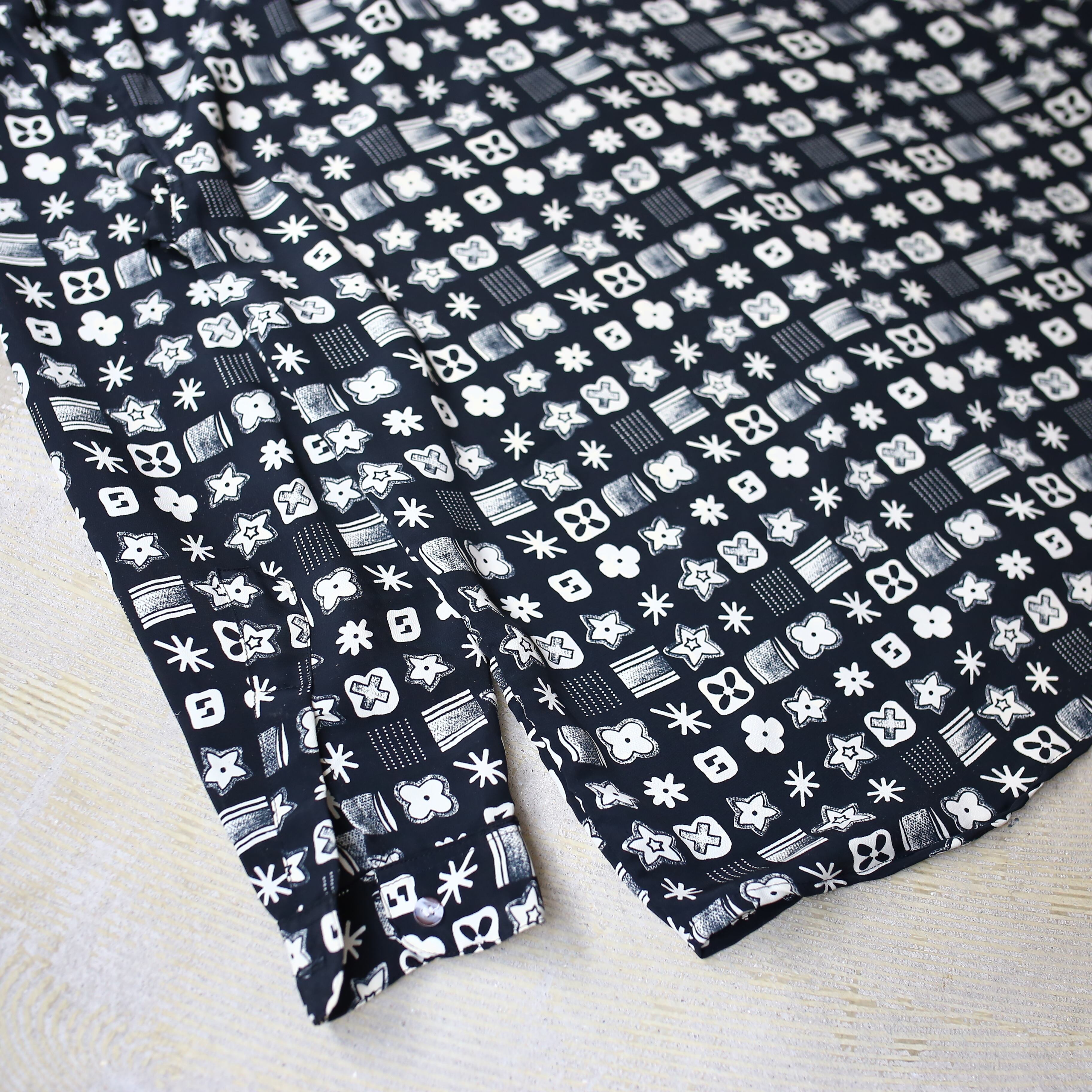 MONOGRAM ALL OVER PATTERN DESIGN L/S SHIRT / モノグラム 総柄 モノトーン モノクロ 長袖 シャツ