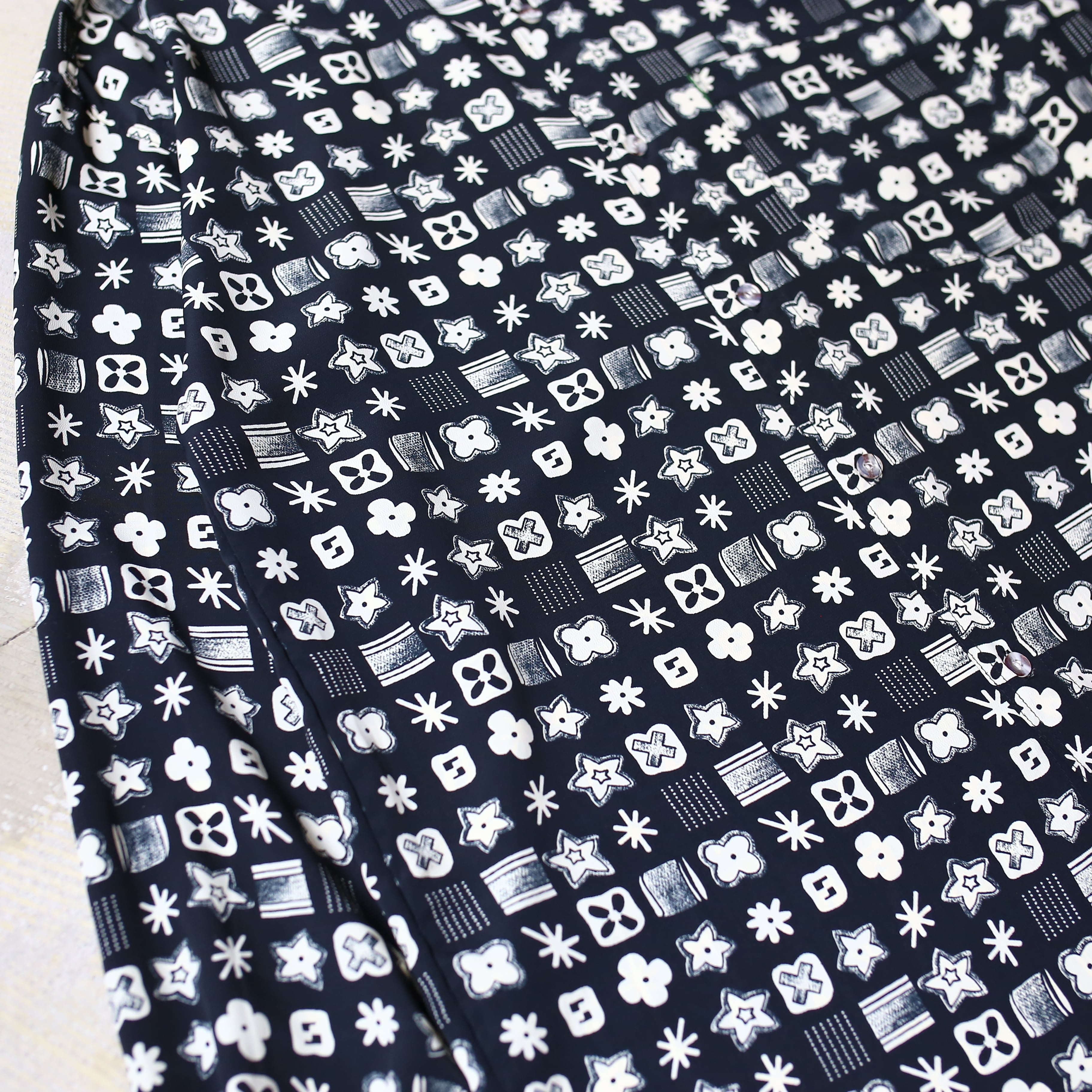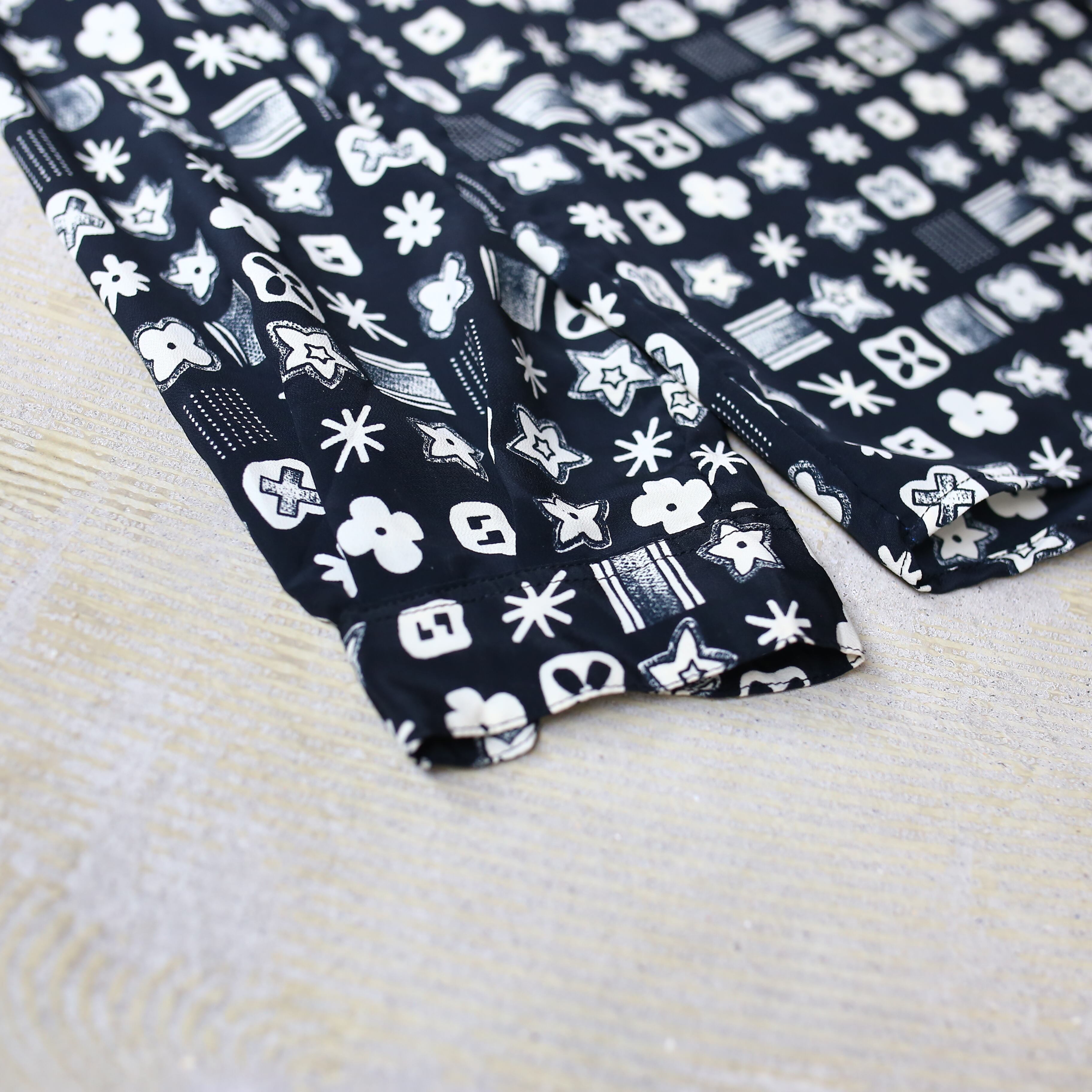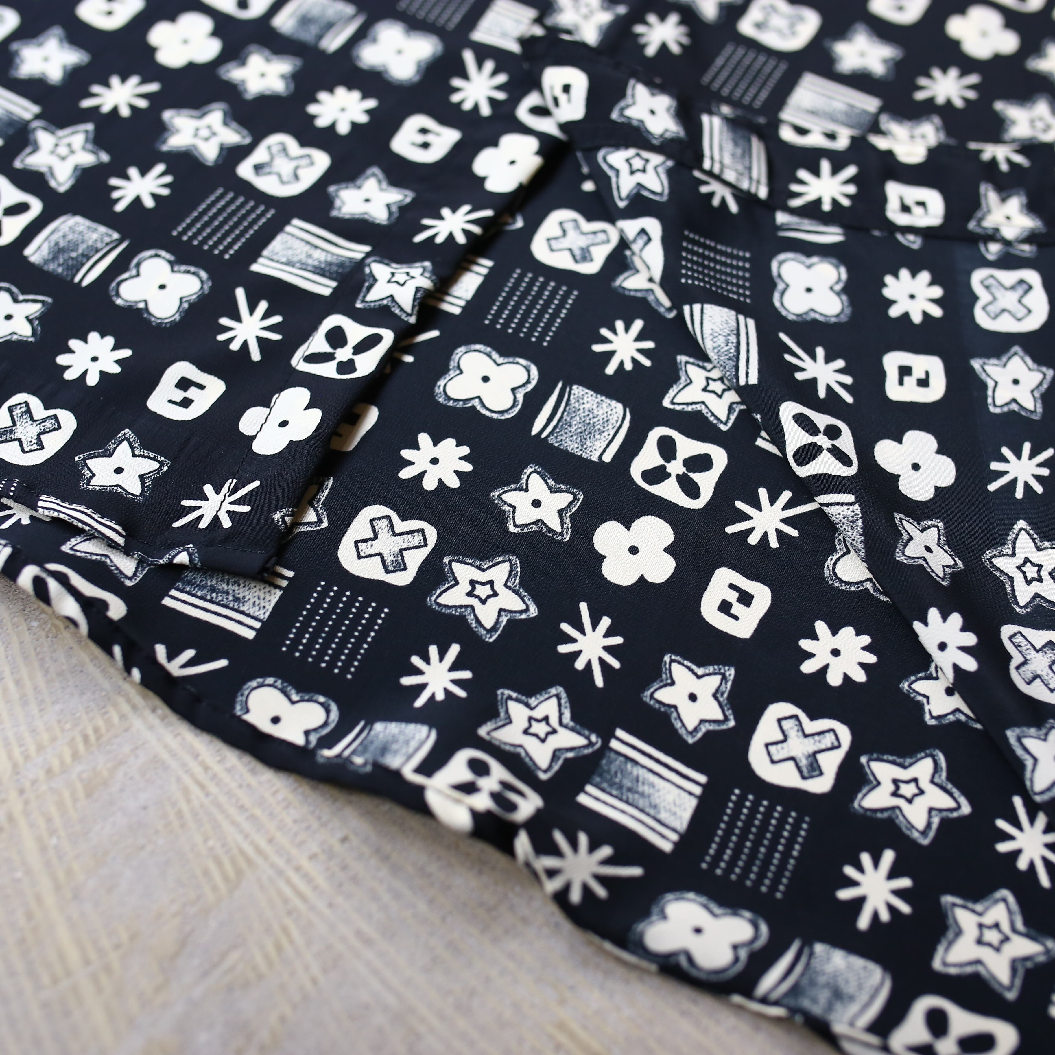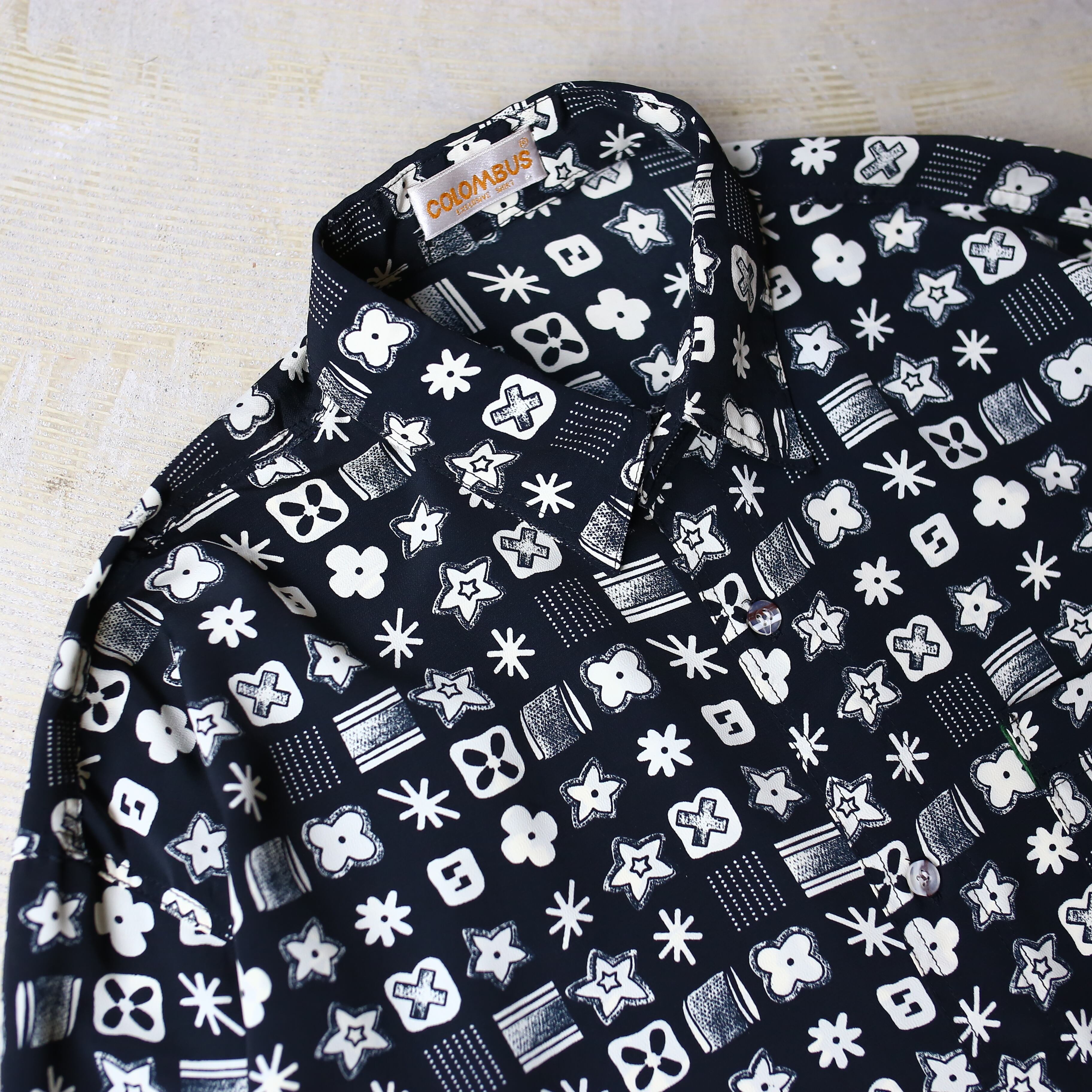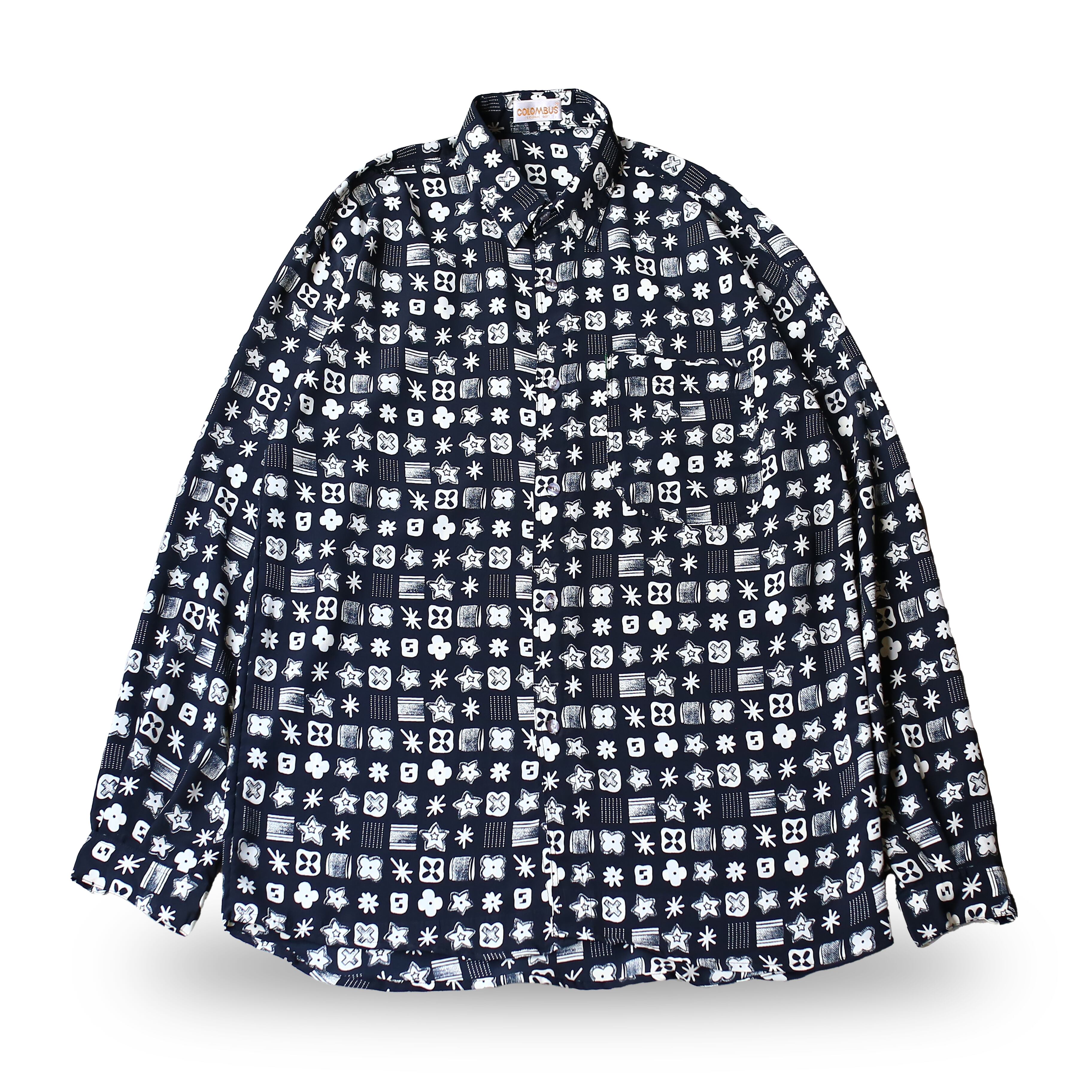 MONOGRAM ALL OVER PATTERN DESIGN L/S SHIRT / モノグラム 総柄 モノトーン モノクロ 長袖 シャツ