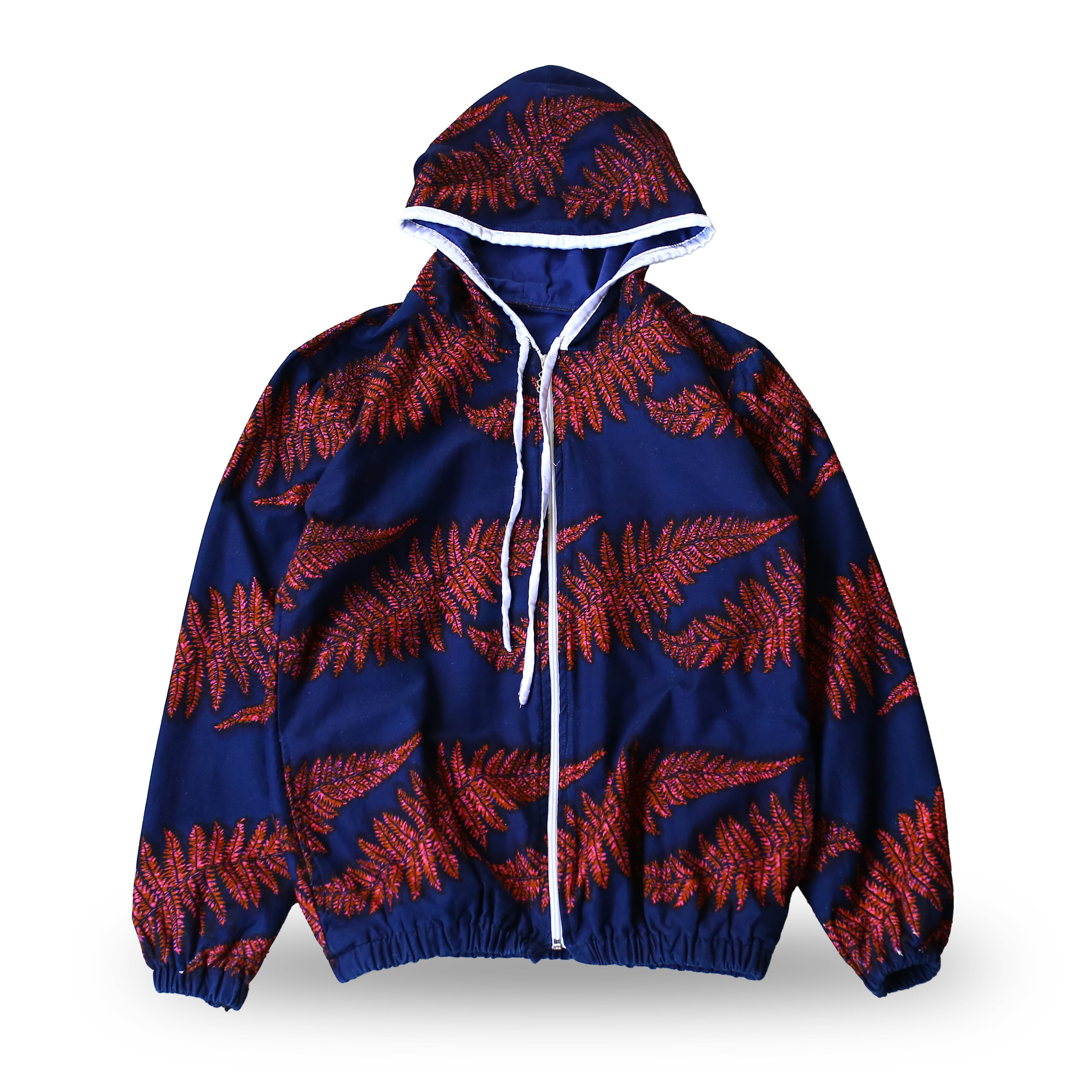 LEAVES PATTERN HAND MADE ZIP UP HOODIE JACKET