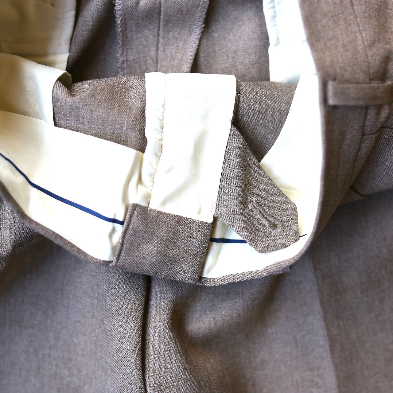 ・ベージュカラーを纏ったデザインスラックス。