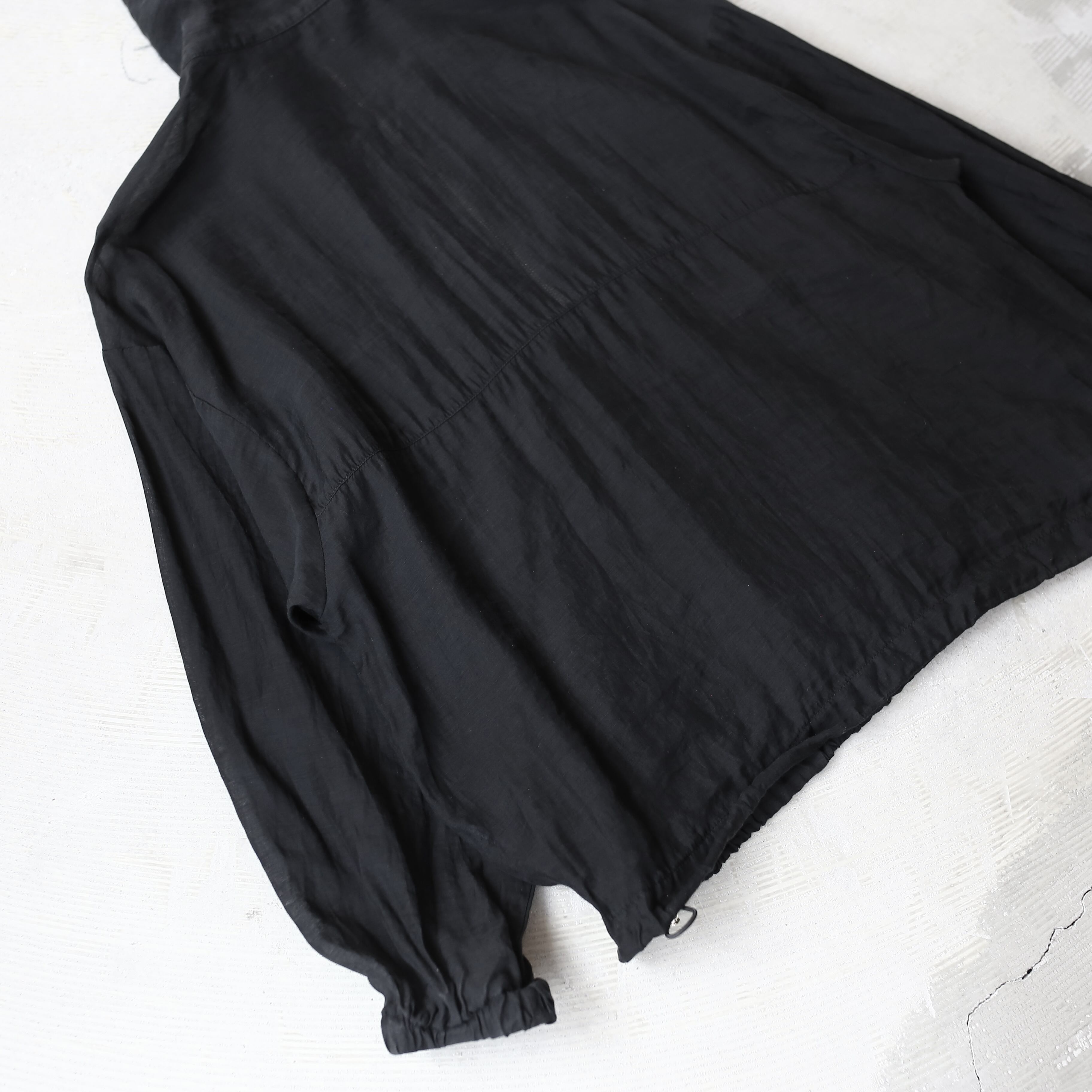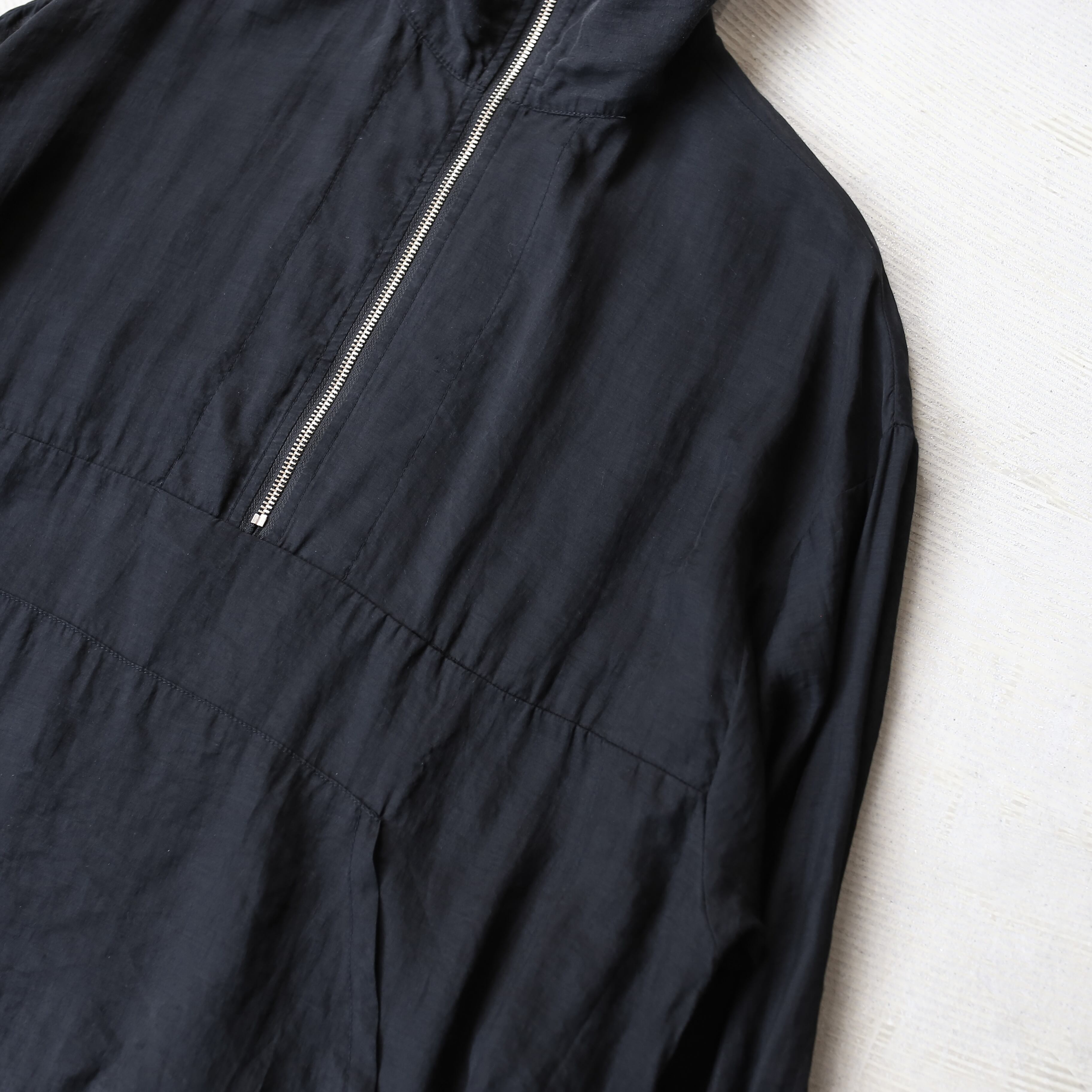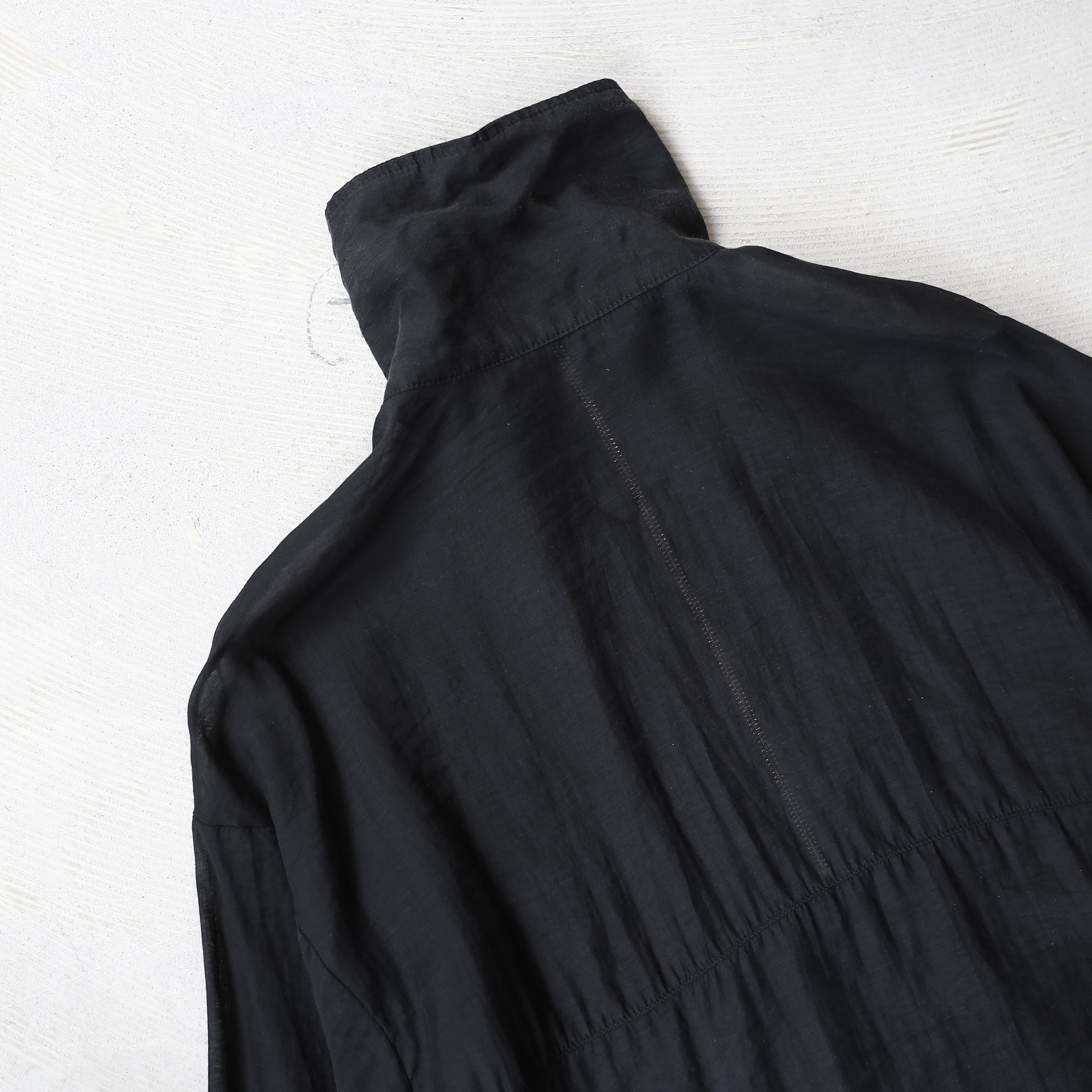 BLACK COLOR HALF ZIP DESIGN SHEER L/S TOPS / シアー アノラック トップス