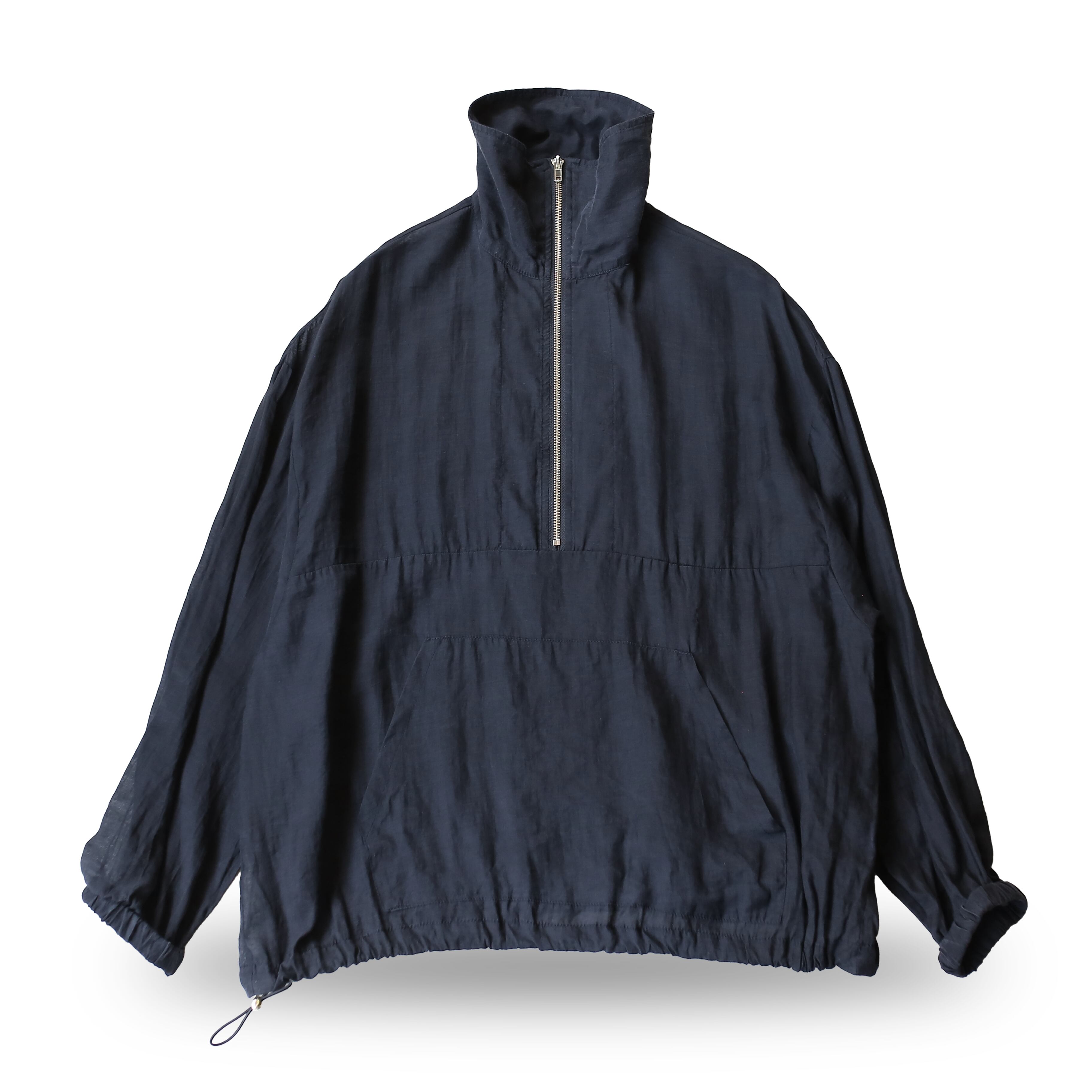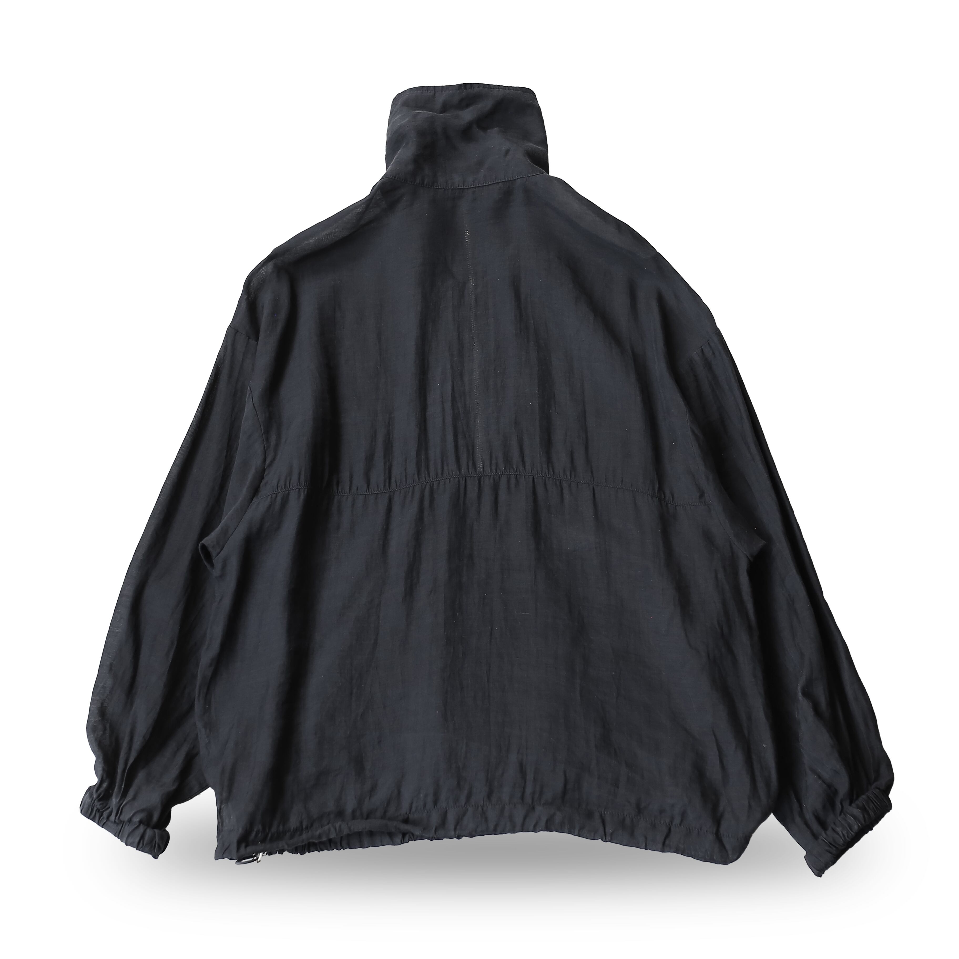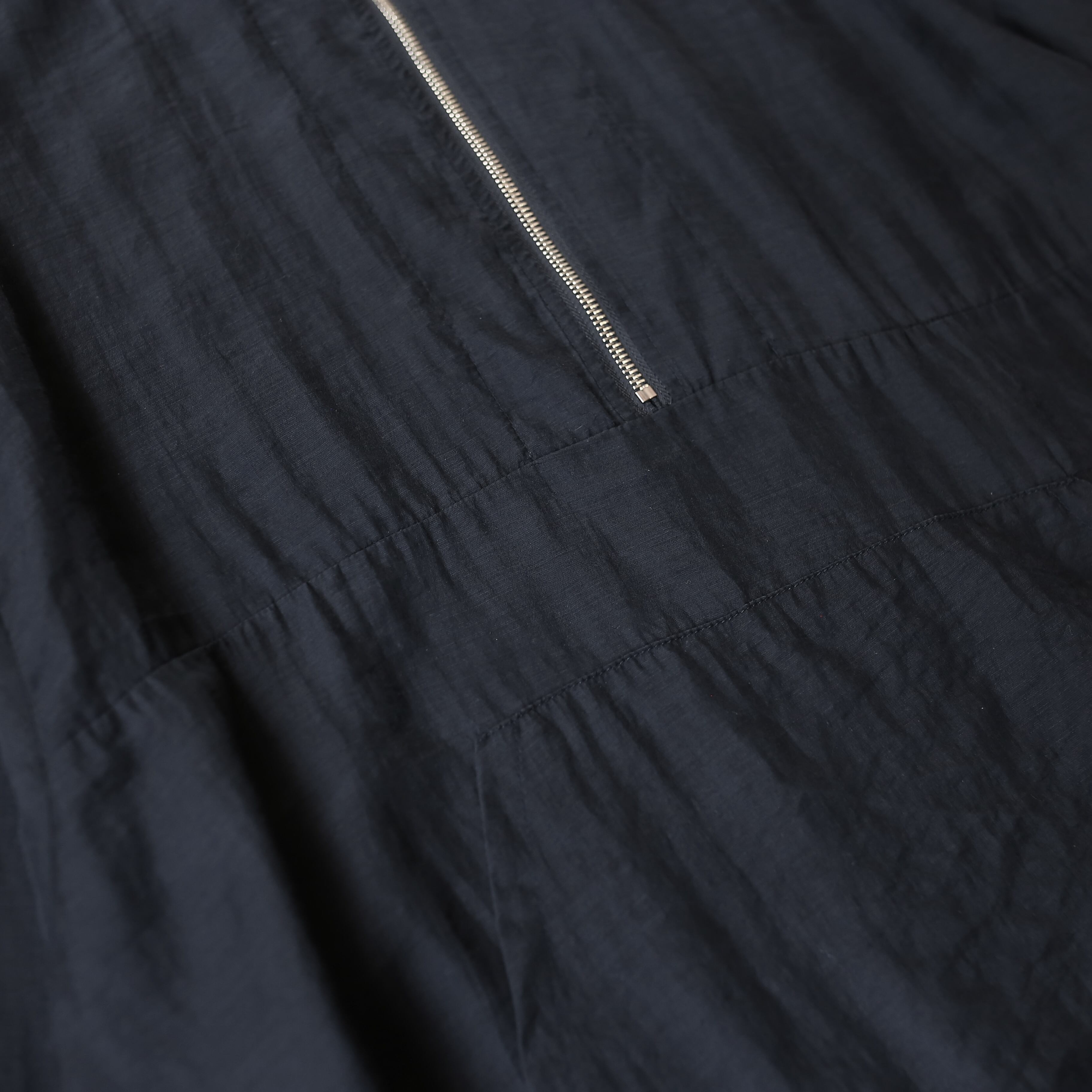 BLACK COLOR HALF ZIP DESIGN SHEER L/S TOPS / シアー アノラック トップス