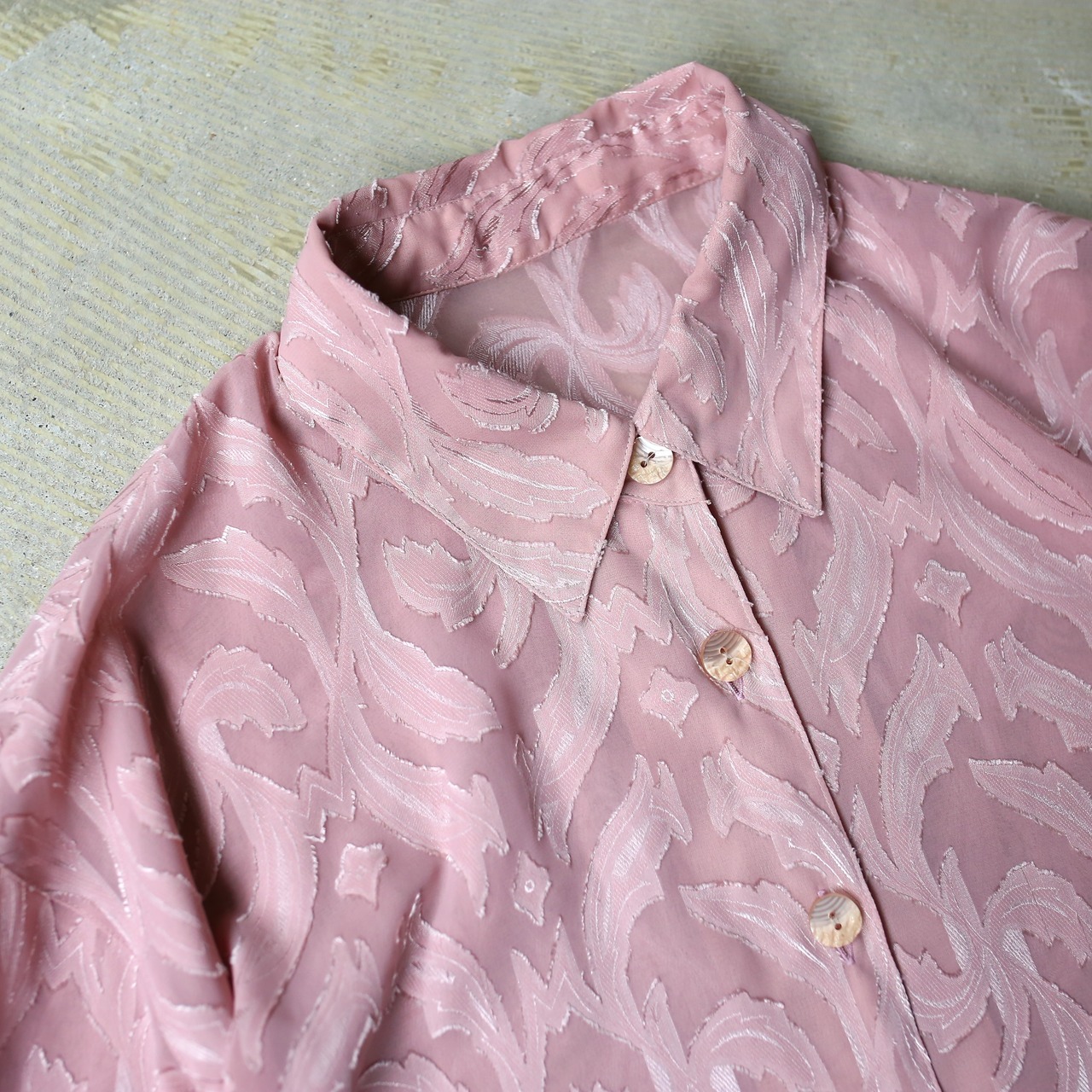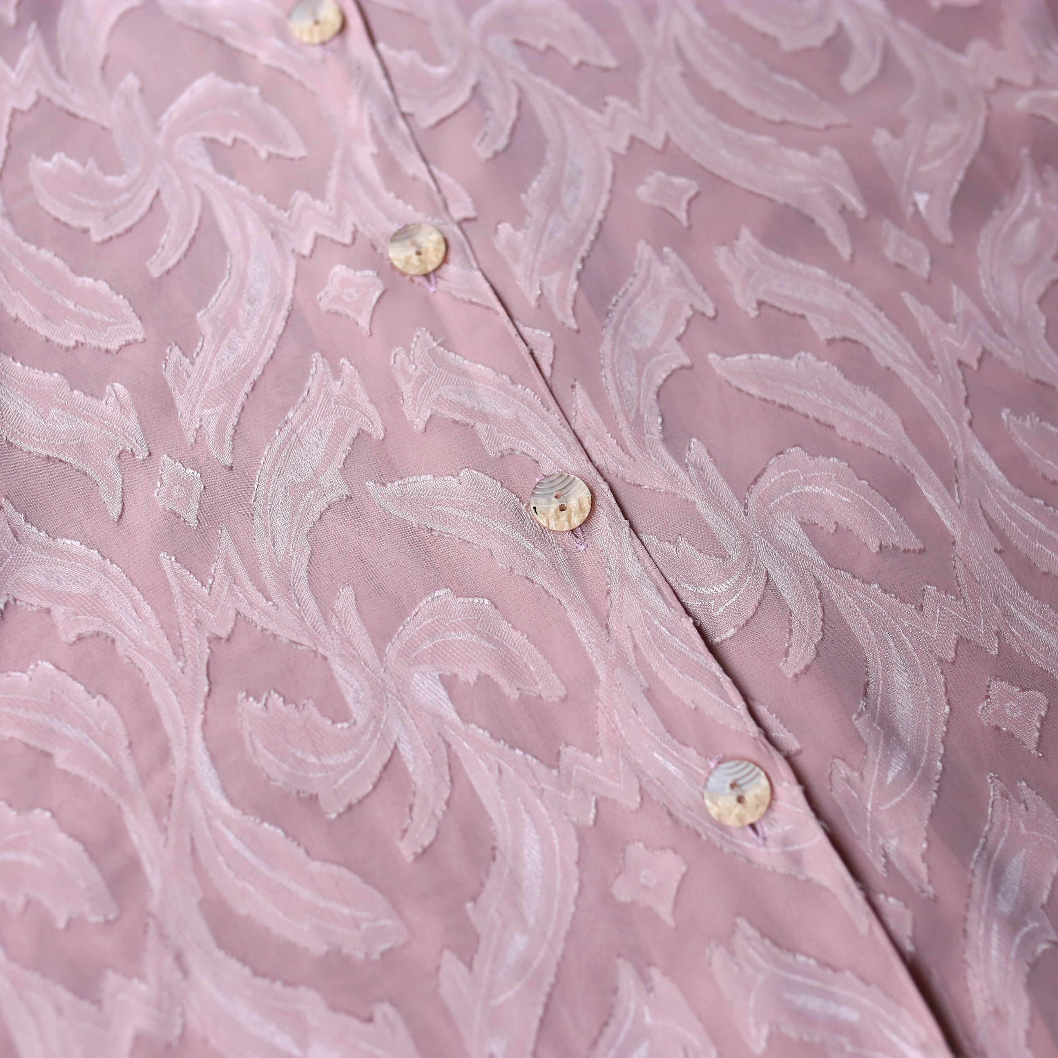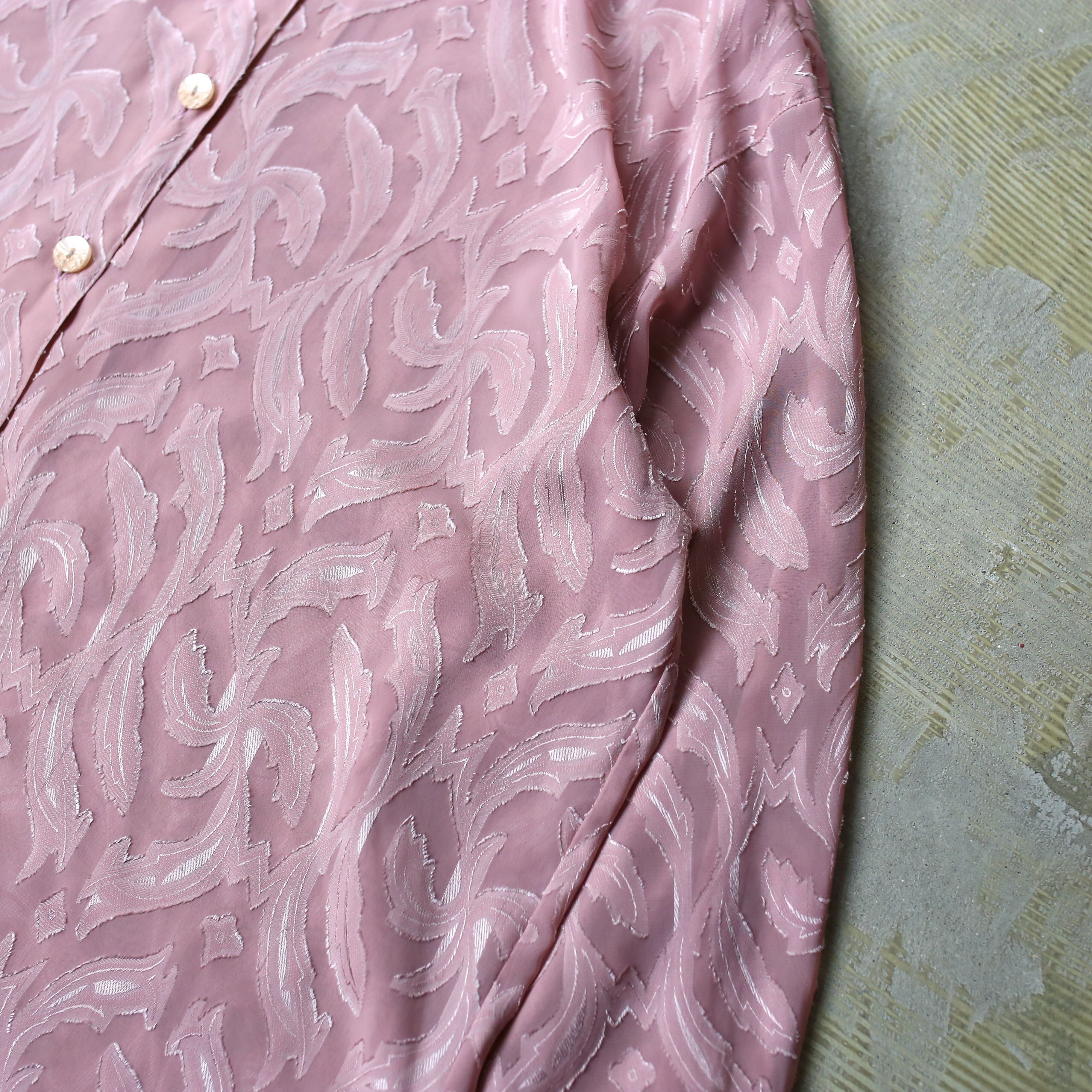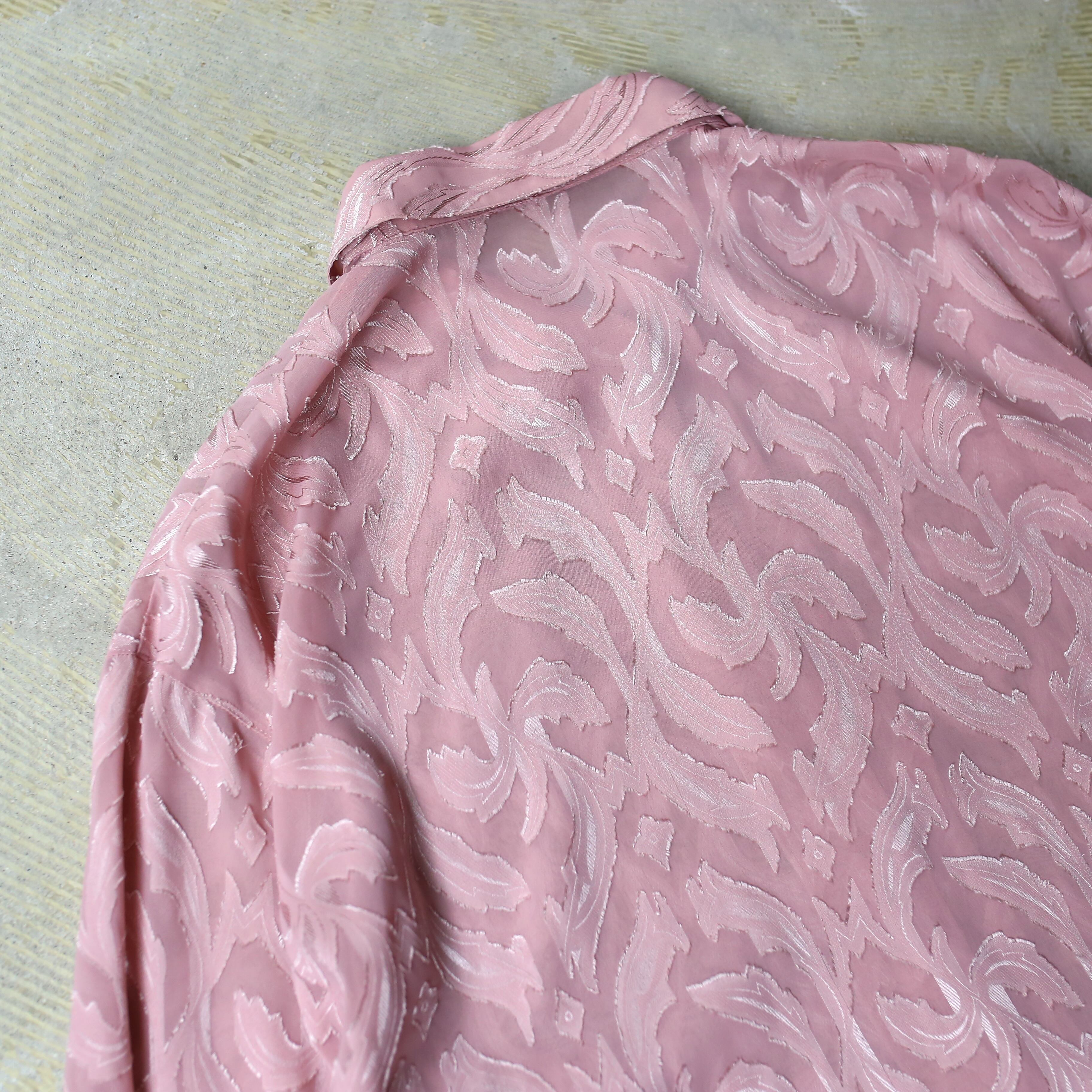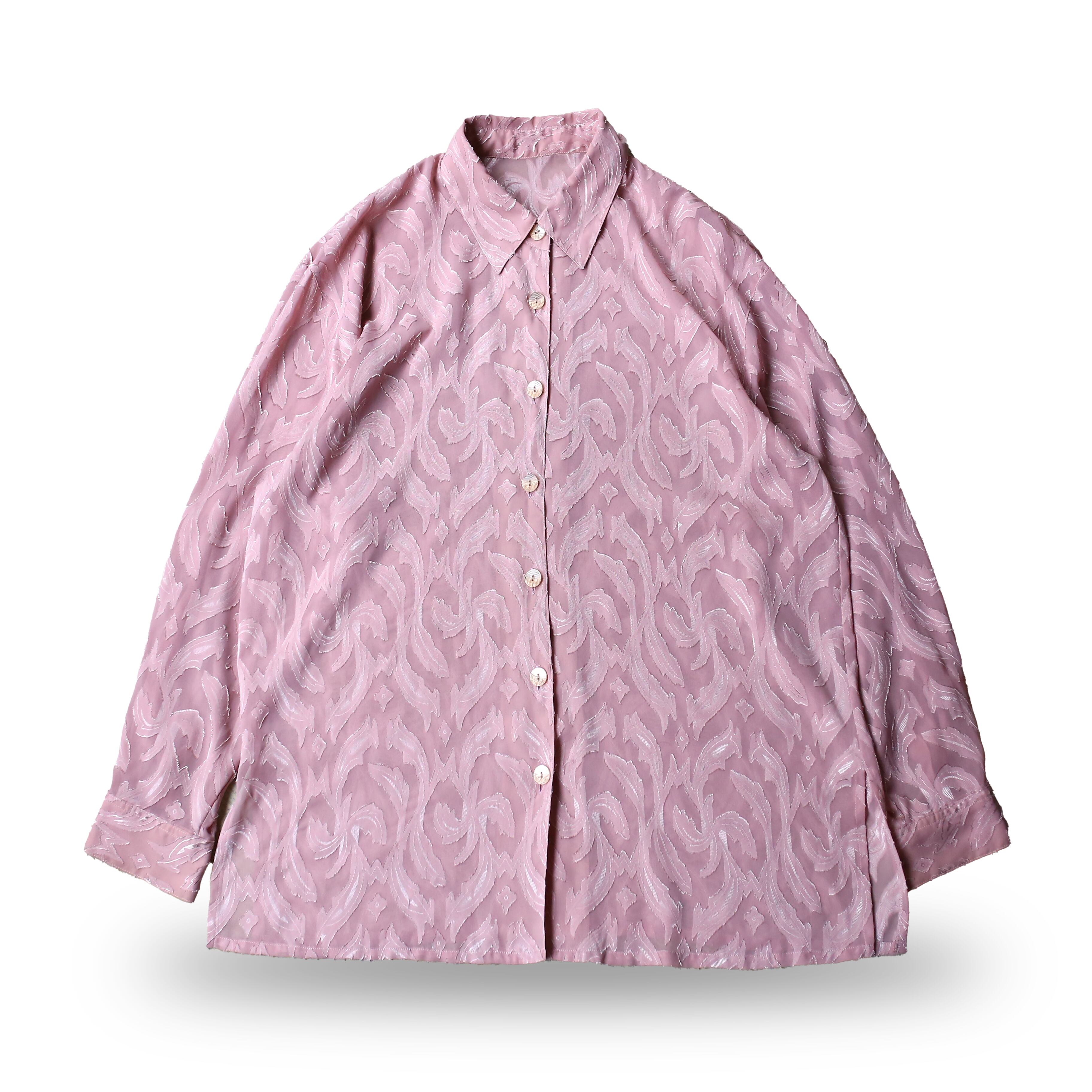 PINK COLOR BOTANICAL PATTERN SHEER L/S SHIRT / 花柄 ボタニカル 総柄 シアー カラー 長袖 シャツ