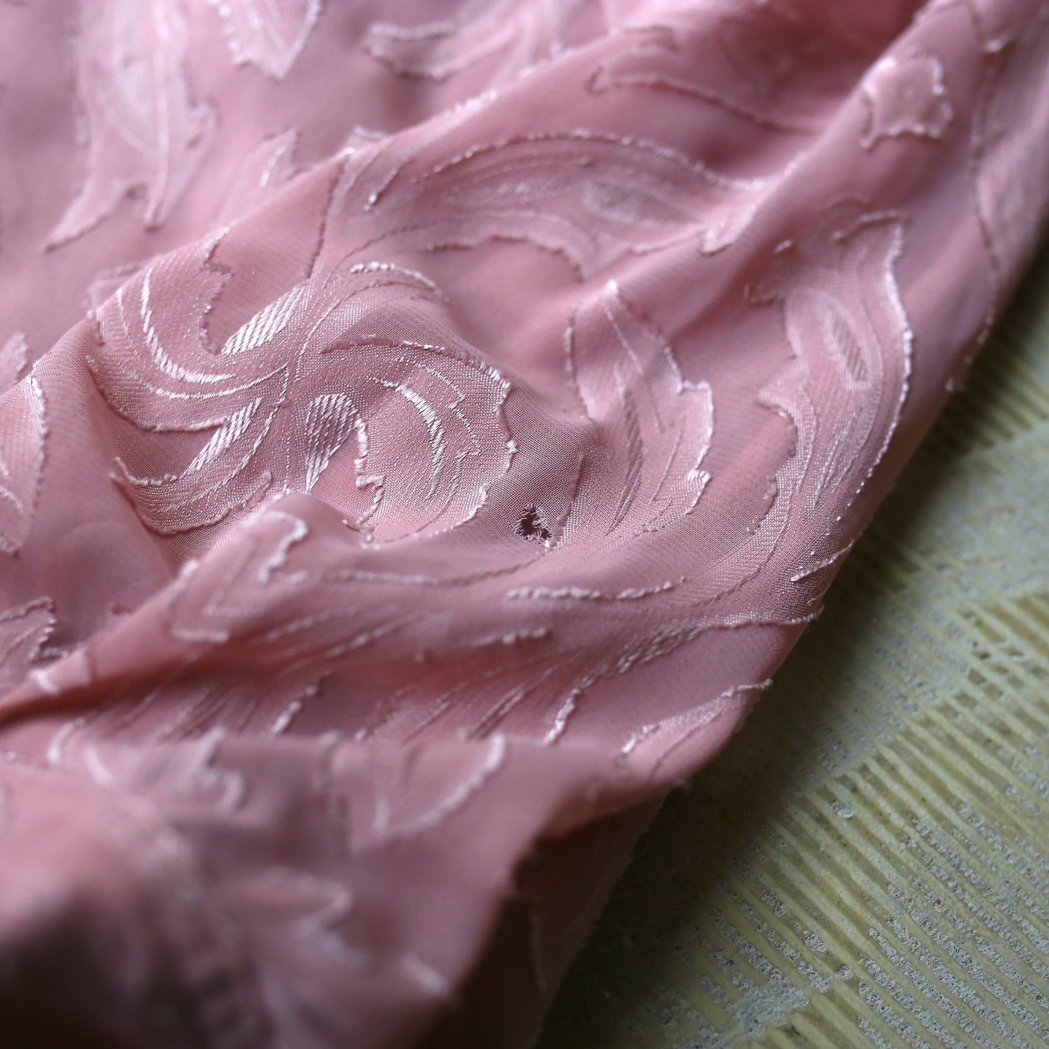 ・淡いピンクカラーを纏った、デザインシアー長袖シャツ。