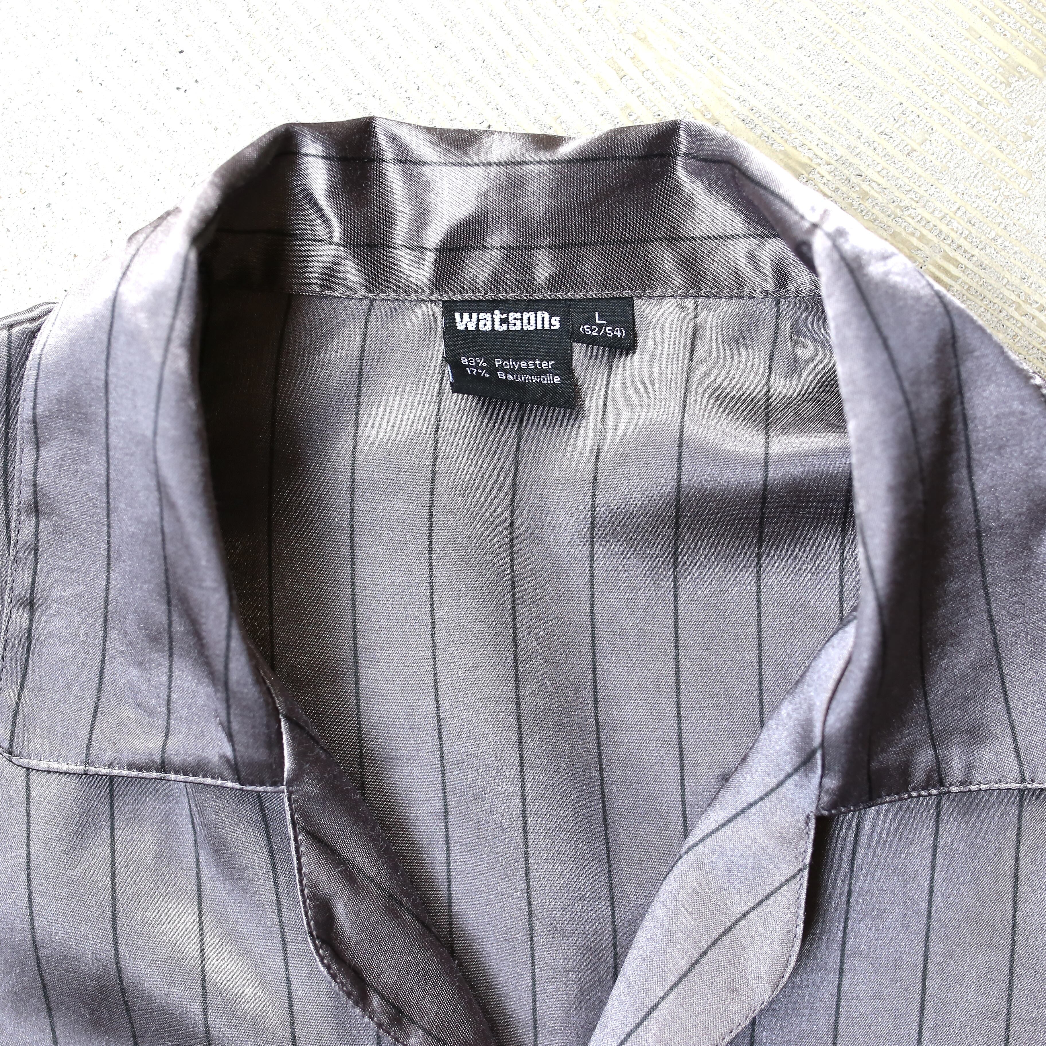 ・艶やかな光沢感が特徴的なデザイン長袖パジャマシャツ。