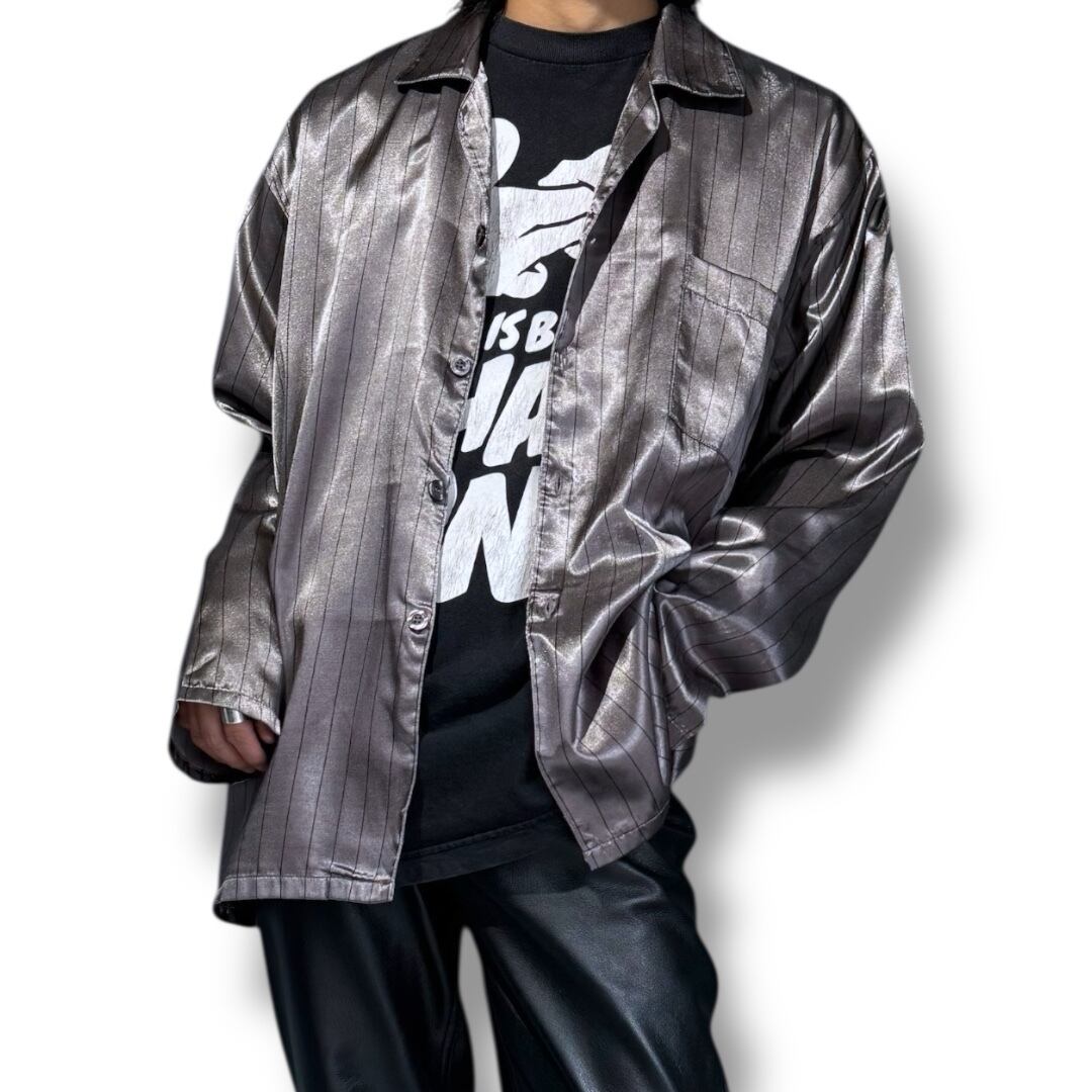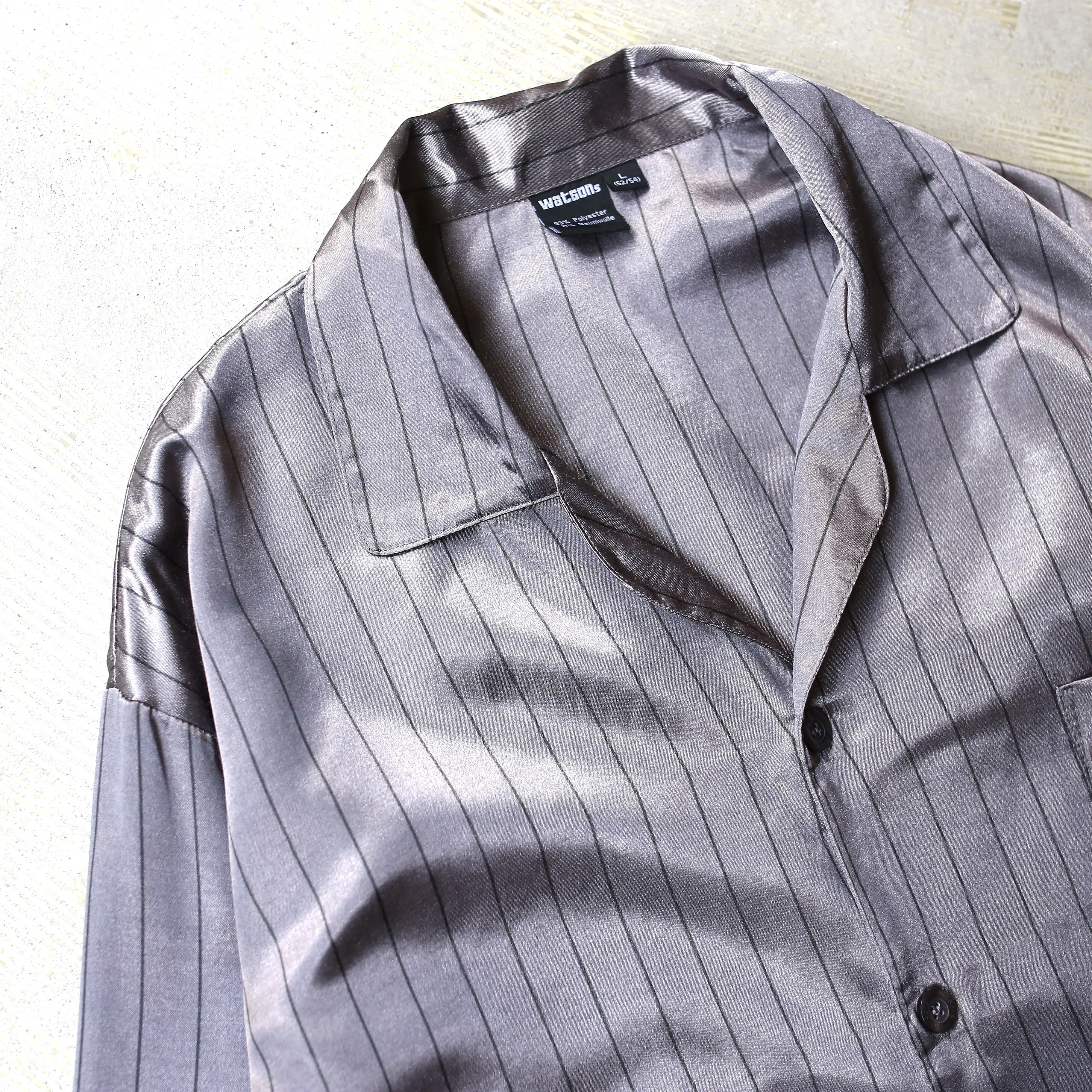 LUSTER GRAY COLOR PINSTRIPE L/S PAJAMA SHIRT / ストライプ パジャマ 長袖 シャツ