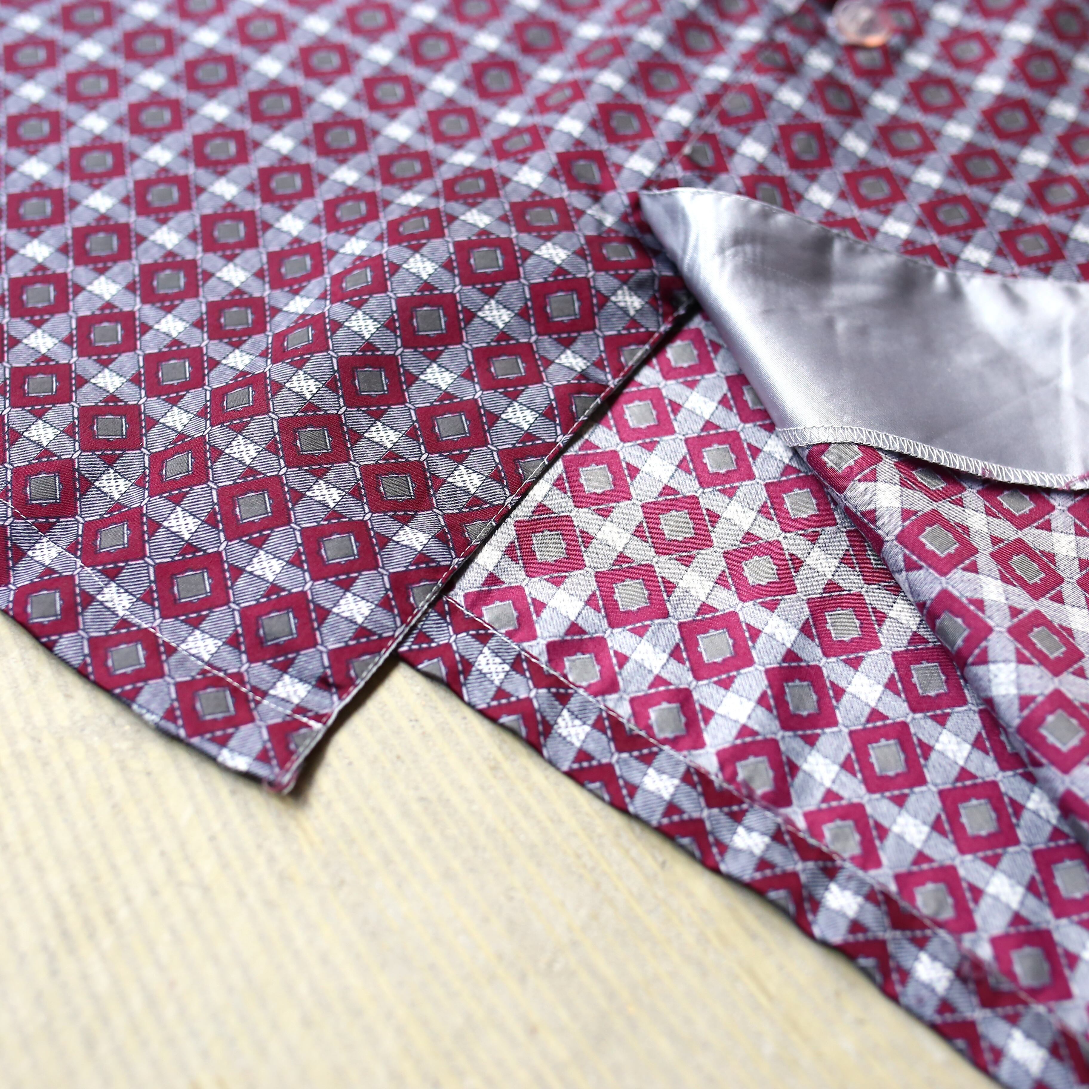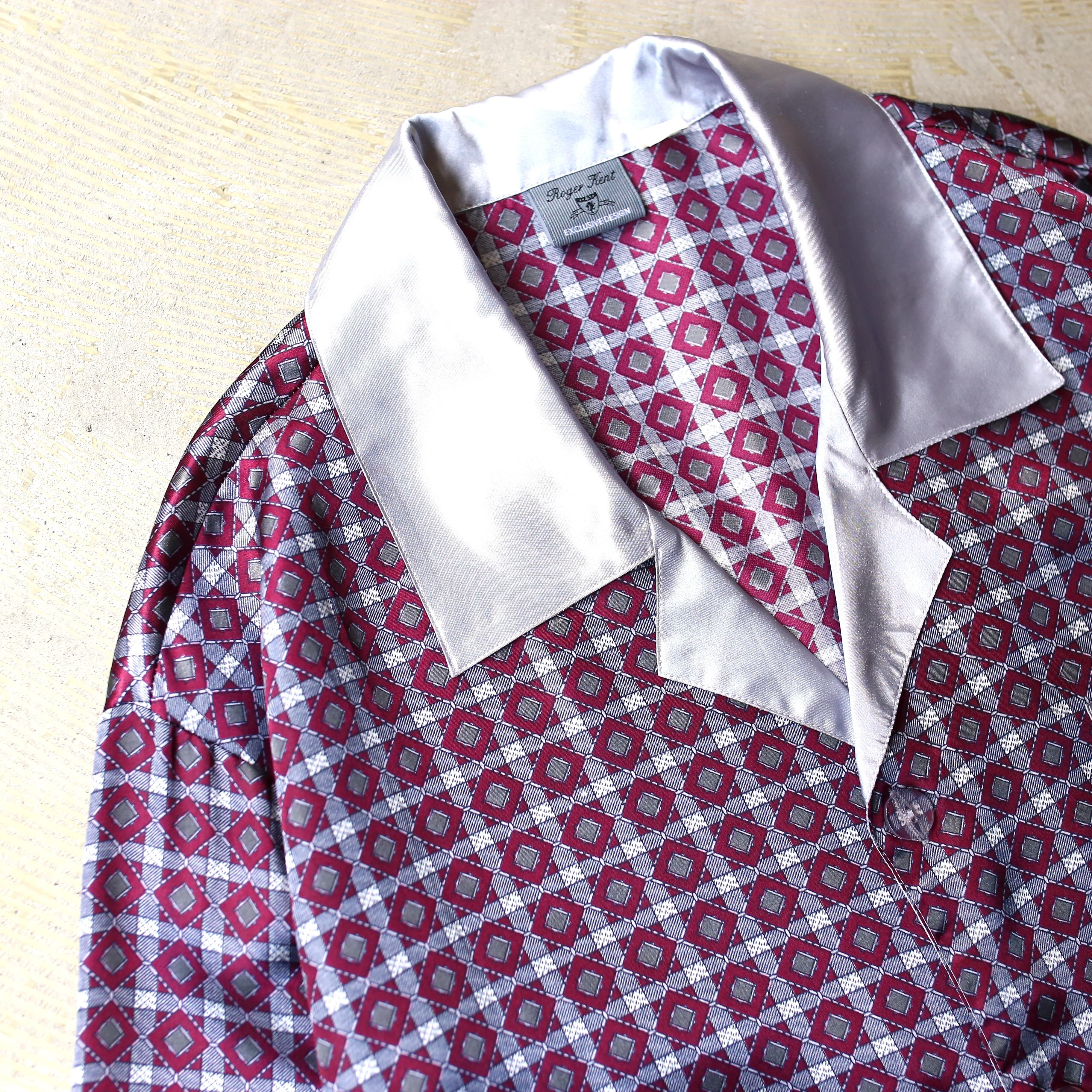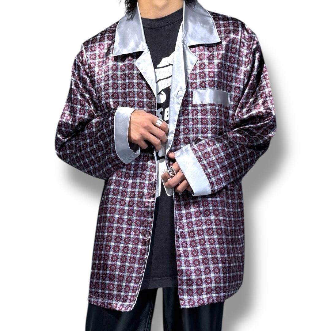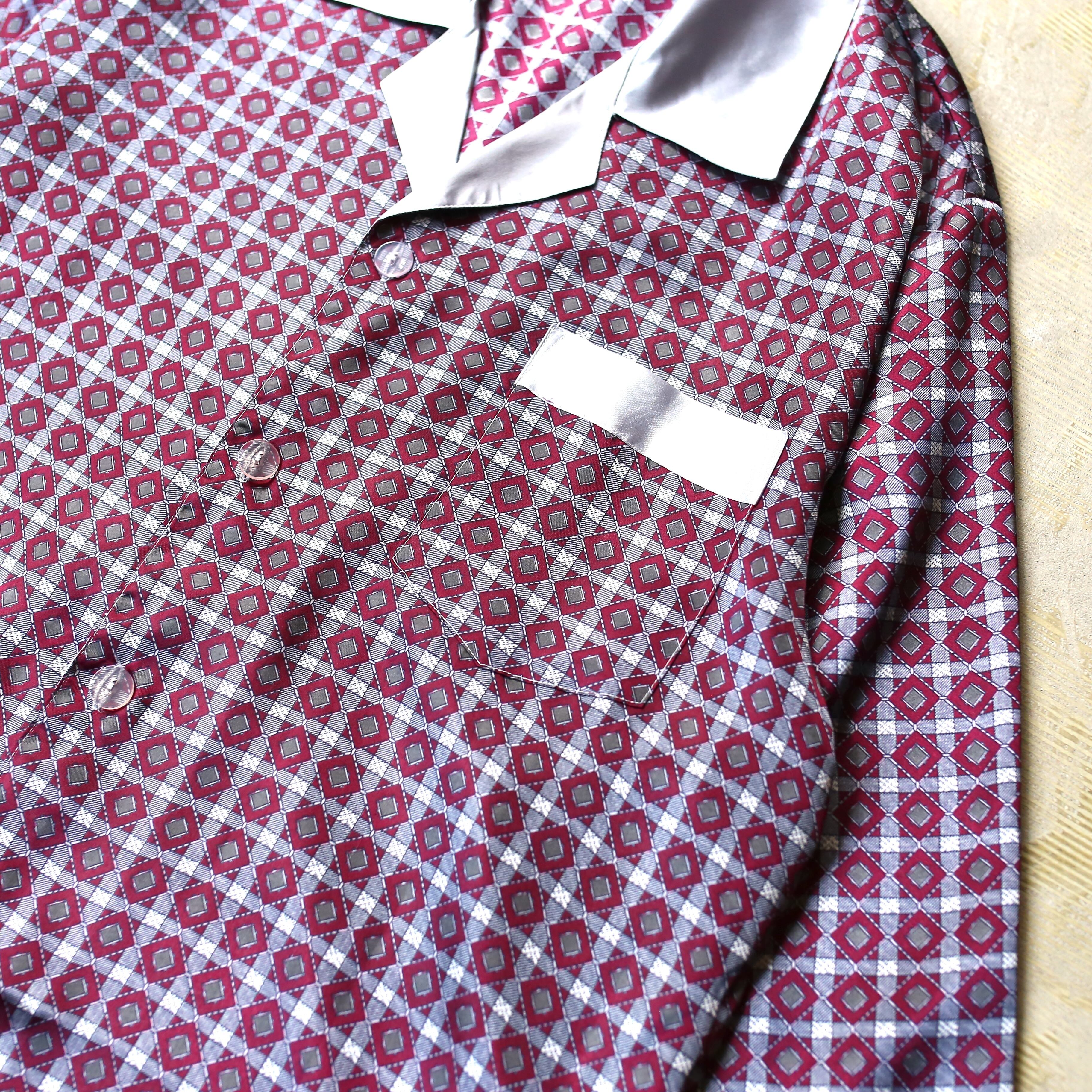 ALL OVER PATTERN LUSTER DESIGN L/S PAJAMA SHIRT / 総柄 サテン 長袖 パジャマ シャツ