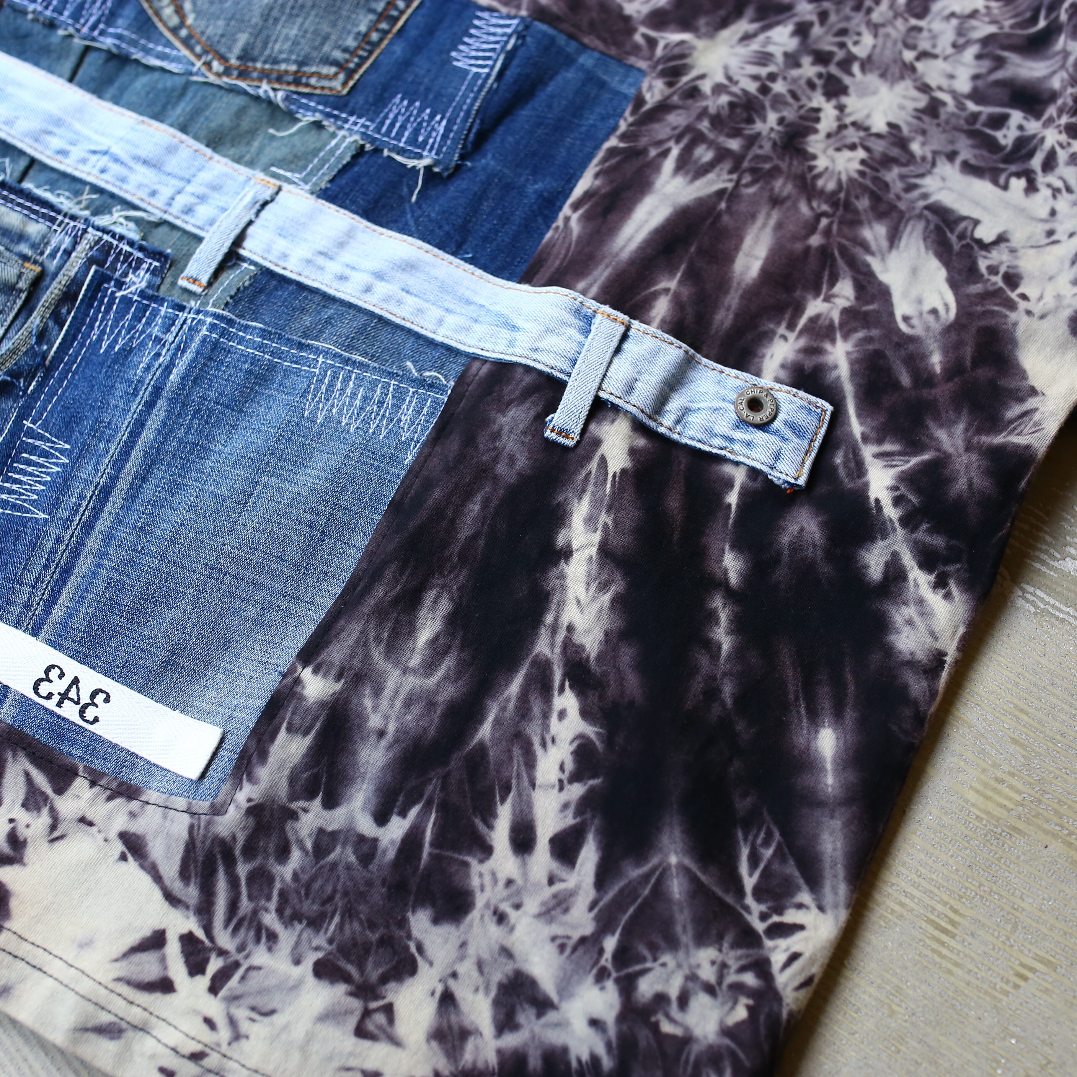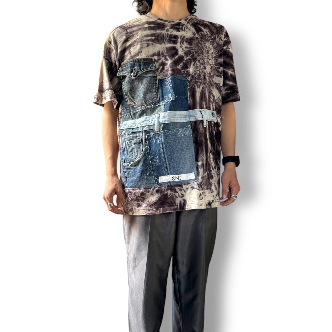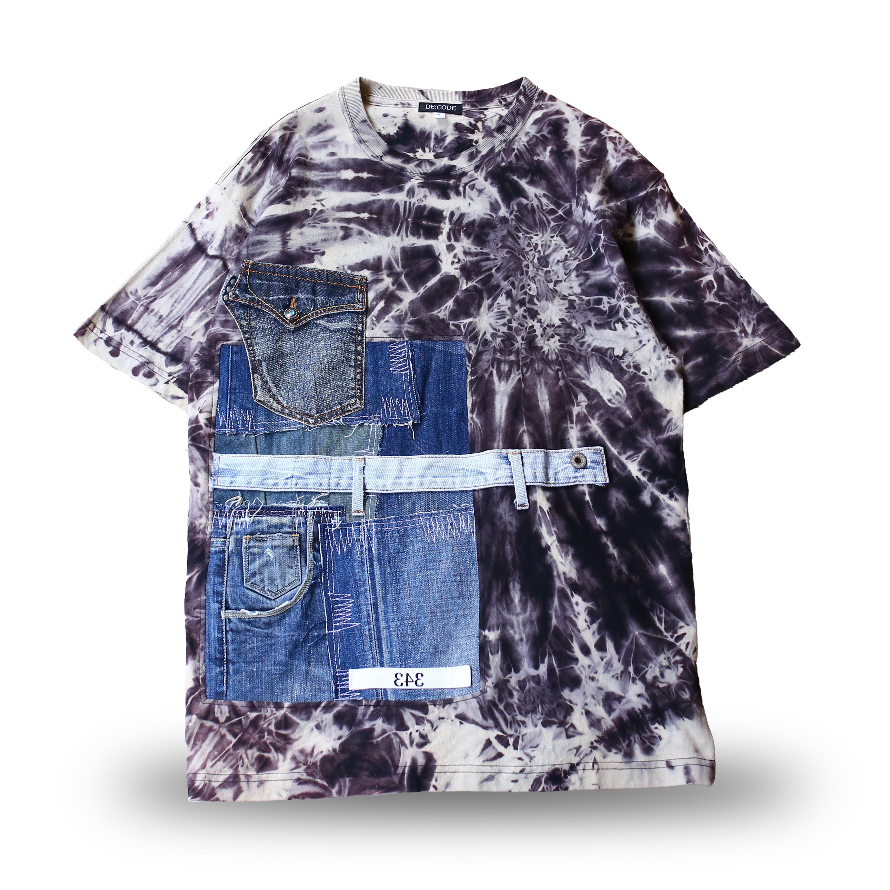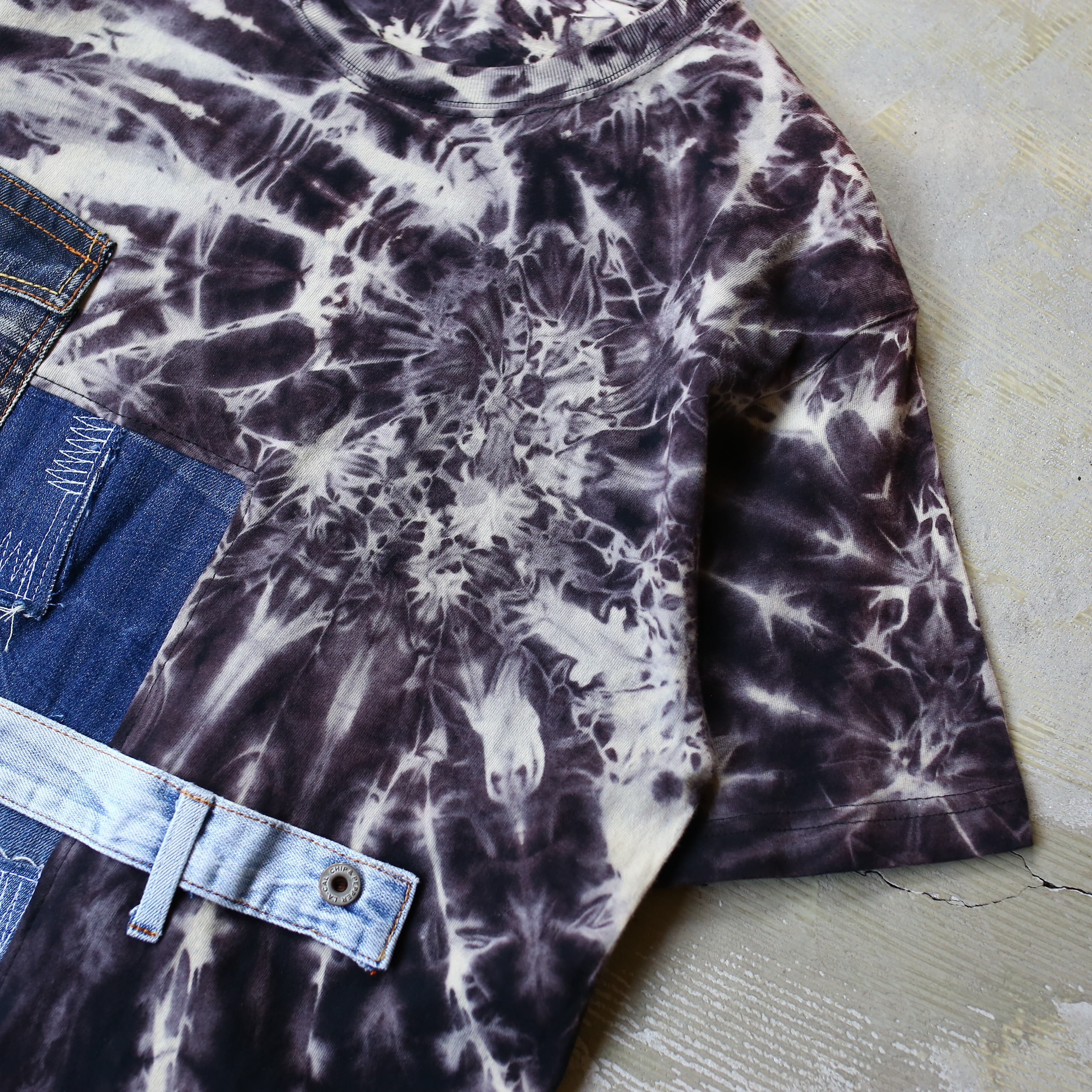 【DE:CODE】BLEACHED PATCHWORK DESIGN DENIM S/S TEE / リメイク タイダイ ブリーチ 半袖 パッチワーク T シャツ