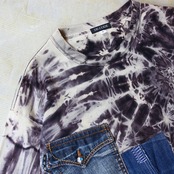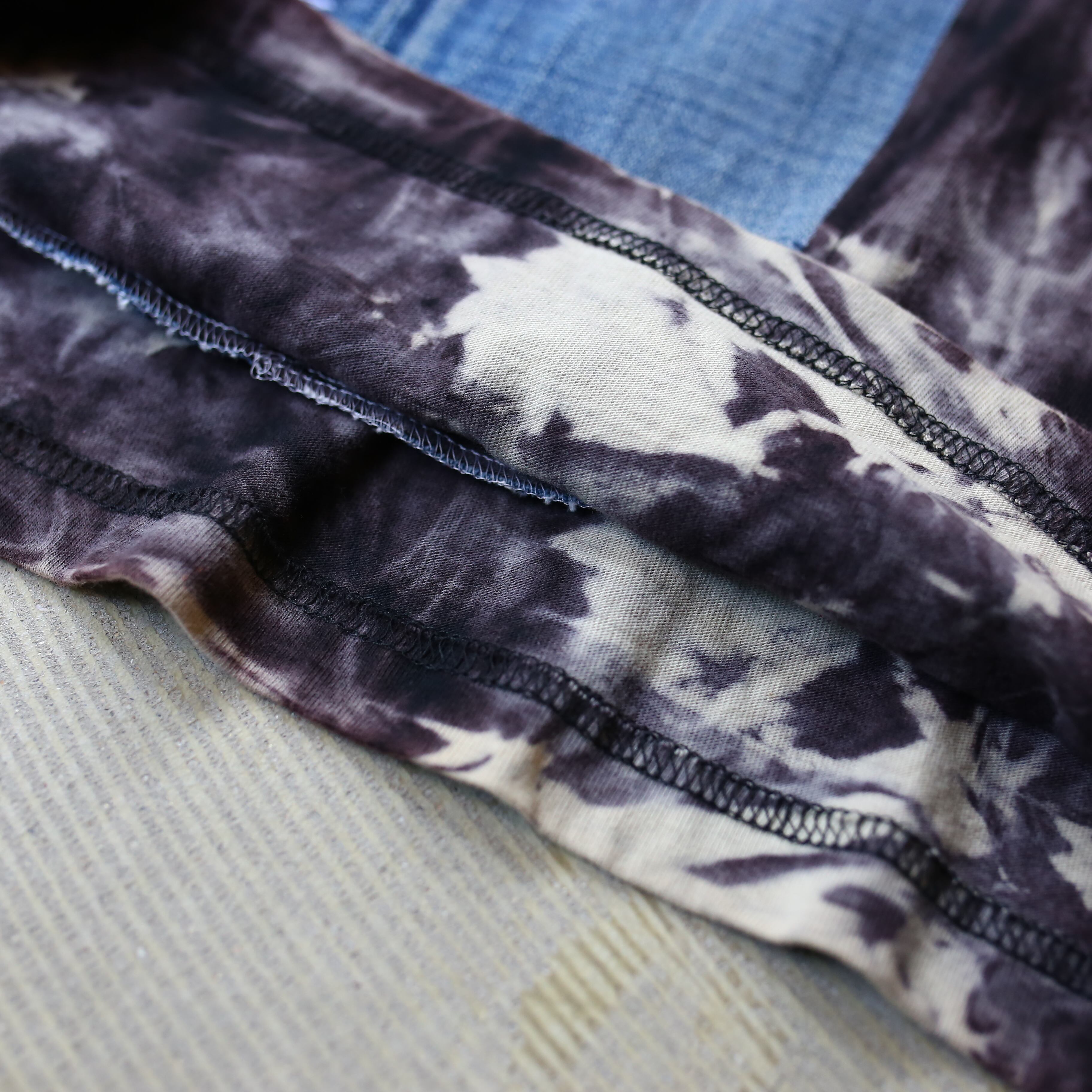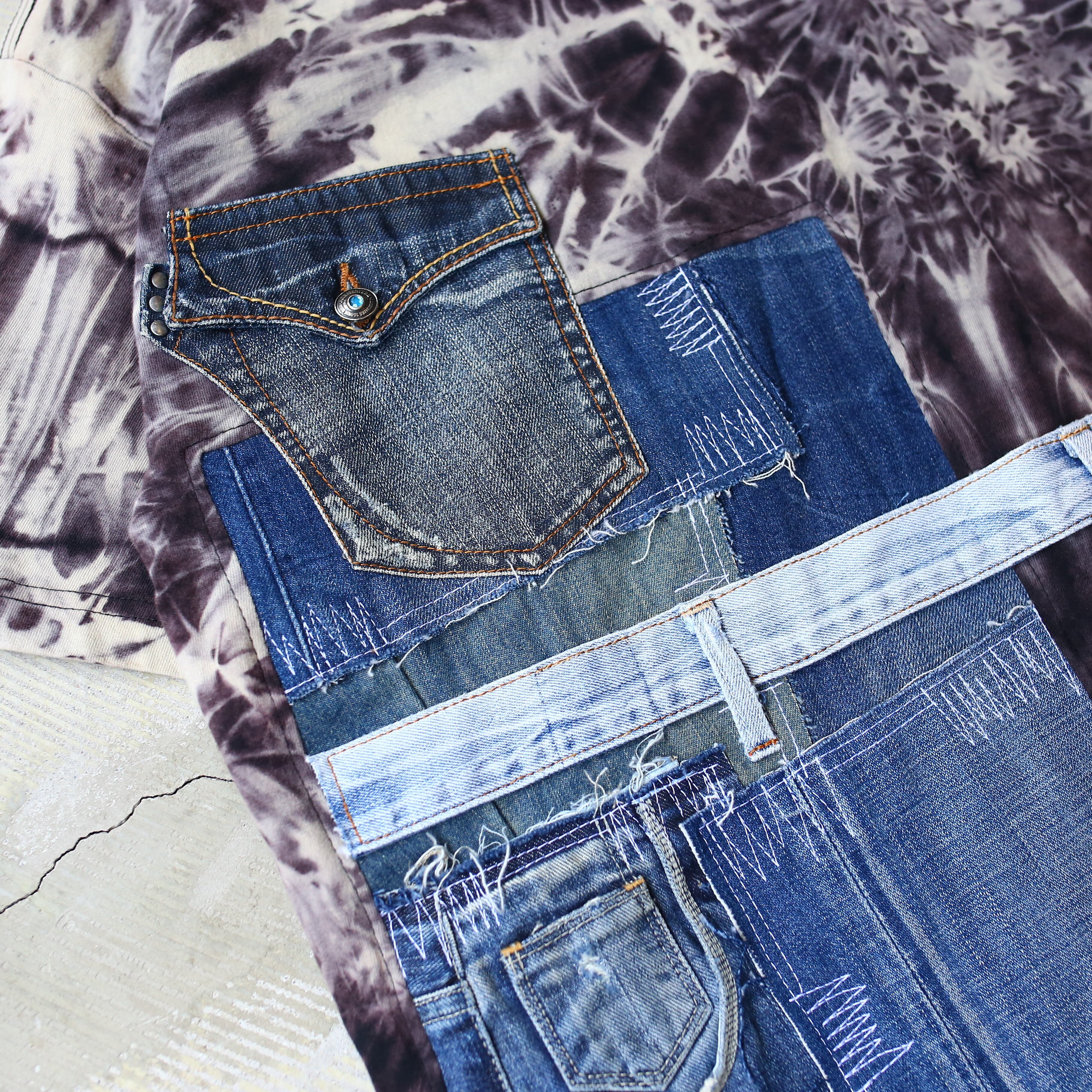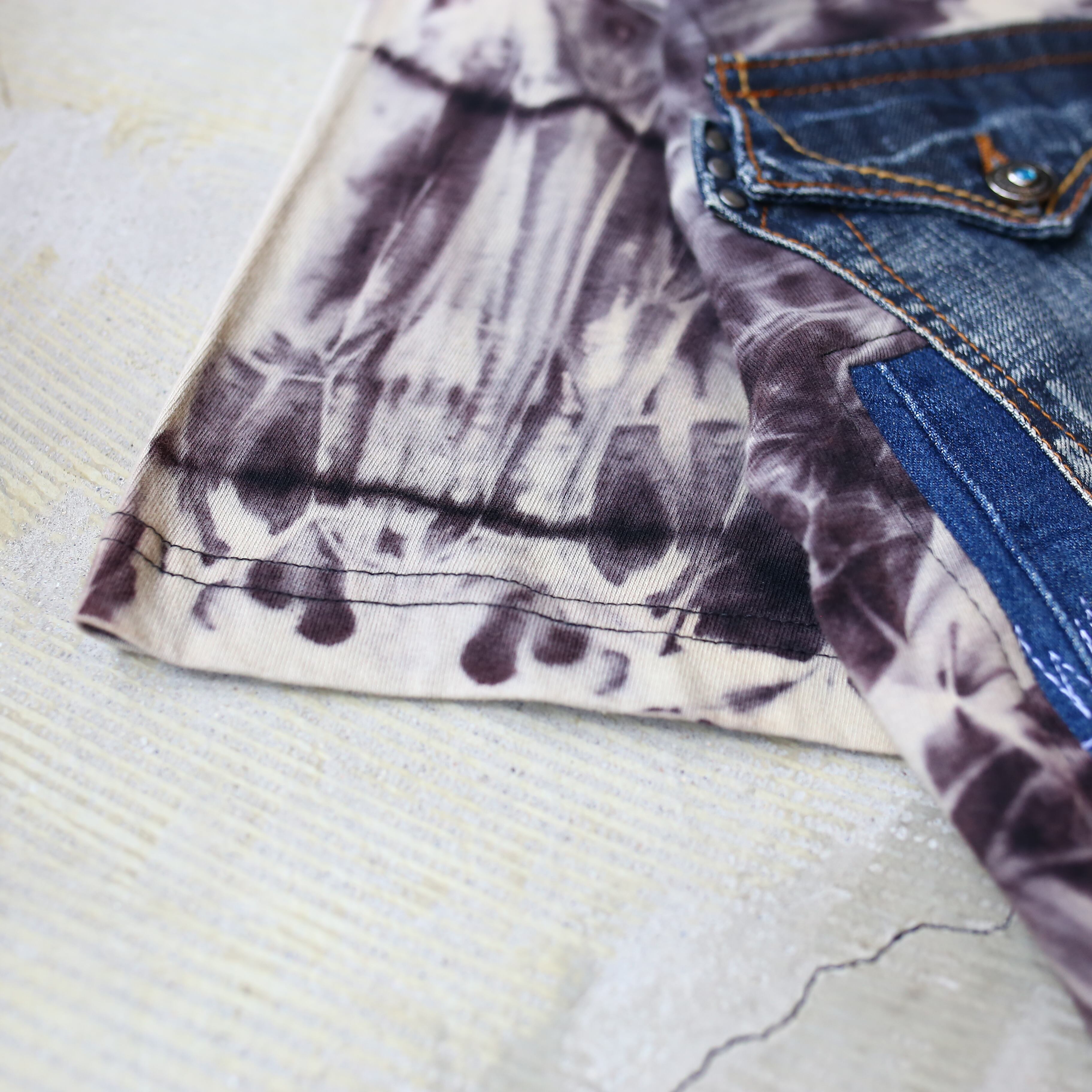 こちらは脱色した半袖Tシャツにデニム生地を繋ぎ合わせ
