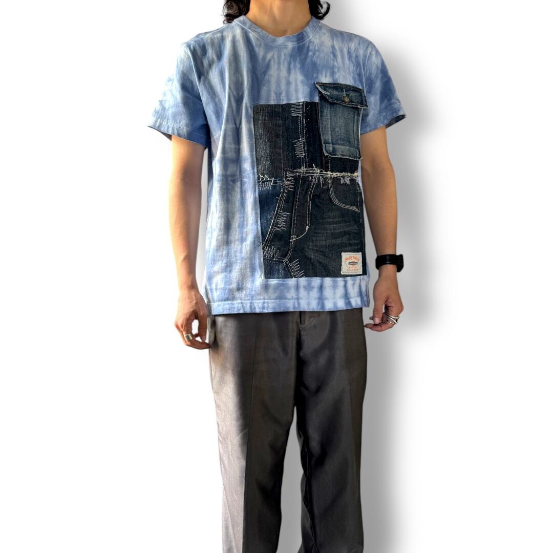 【DE:CODE】OVERDYE PATCHWORK DESIGN DENIM S/S TEE / リメイク タイダイ 半袖 パッチワーク T シャツ