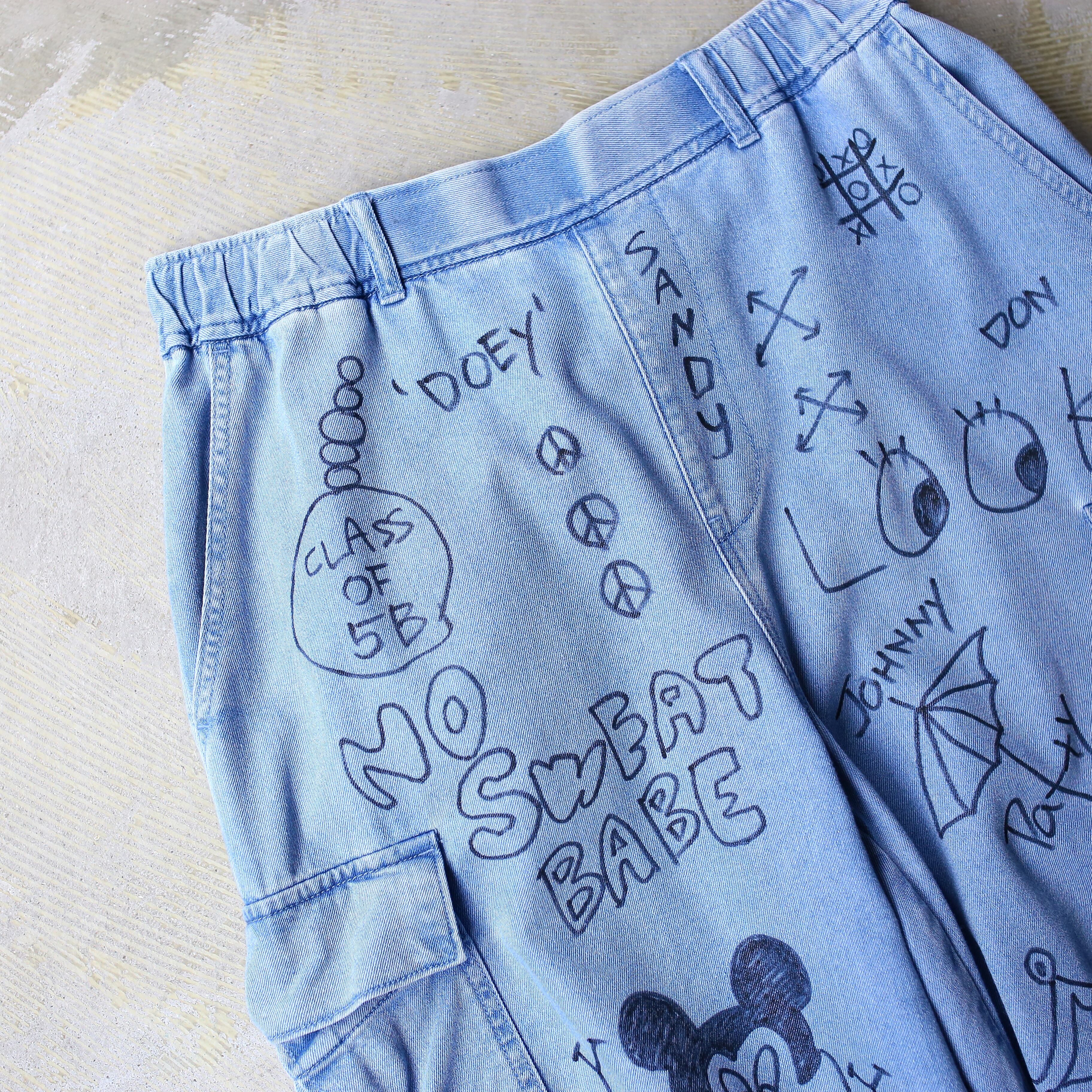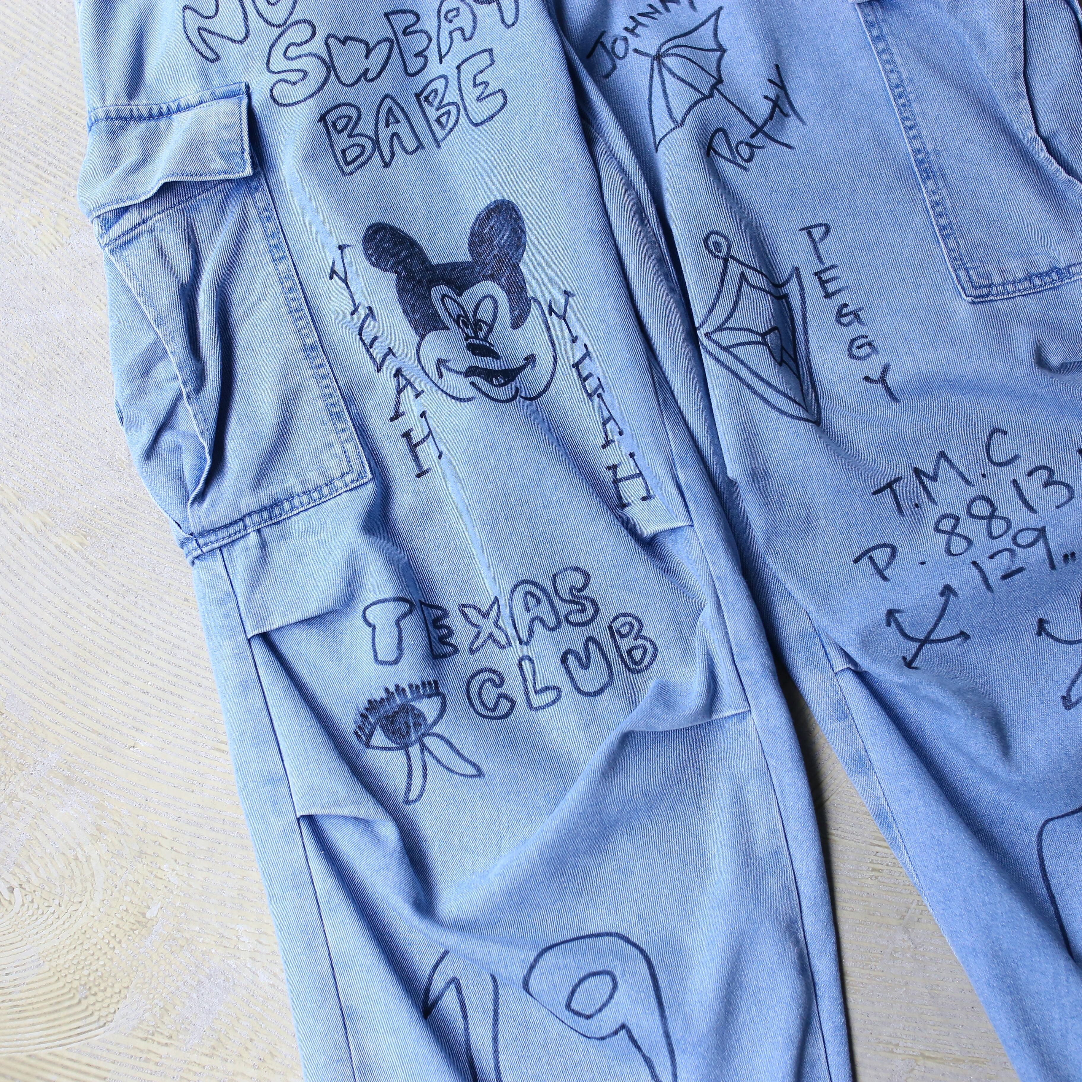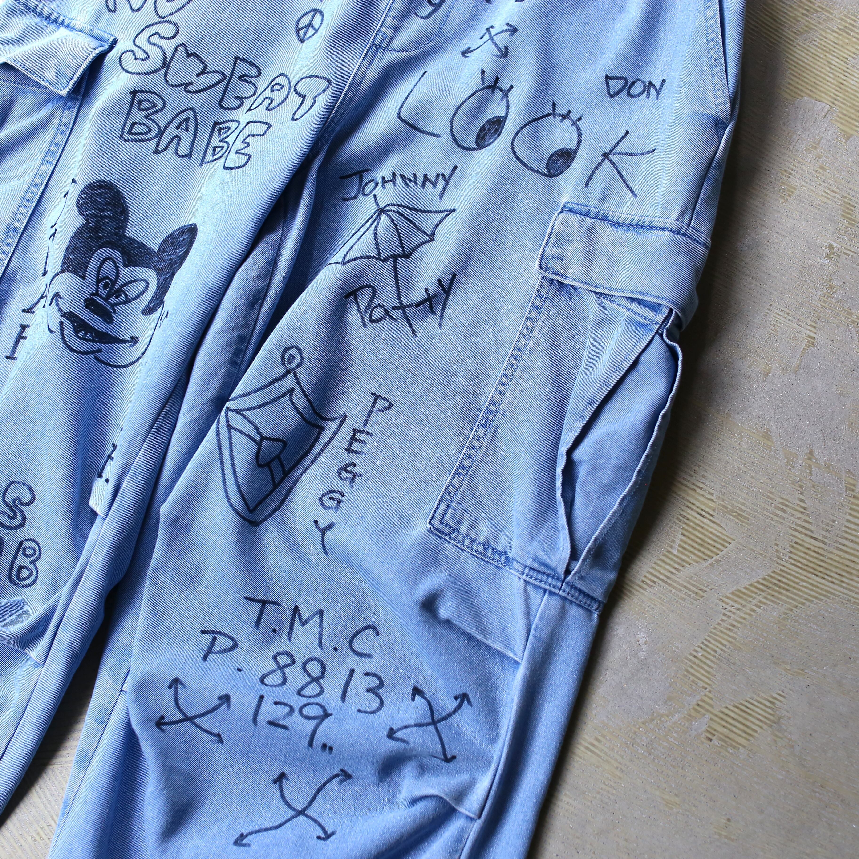 HAND PAINT CARGO STYLE WIDE SILHOUETTE DENIM PANTS / ハンド ペイント メモリアル デニム パンツ